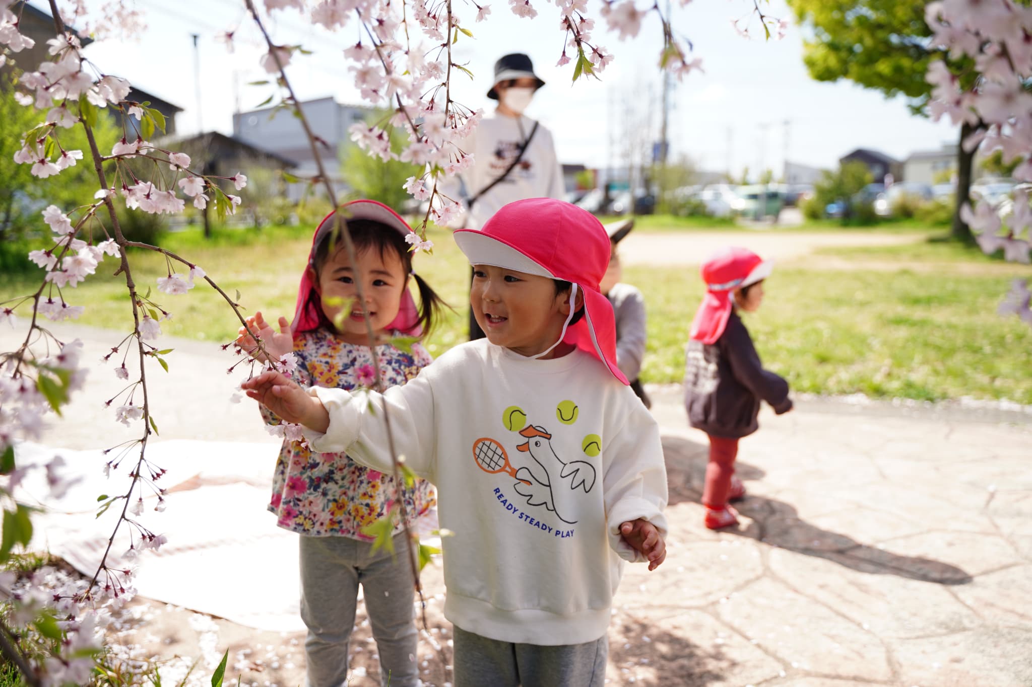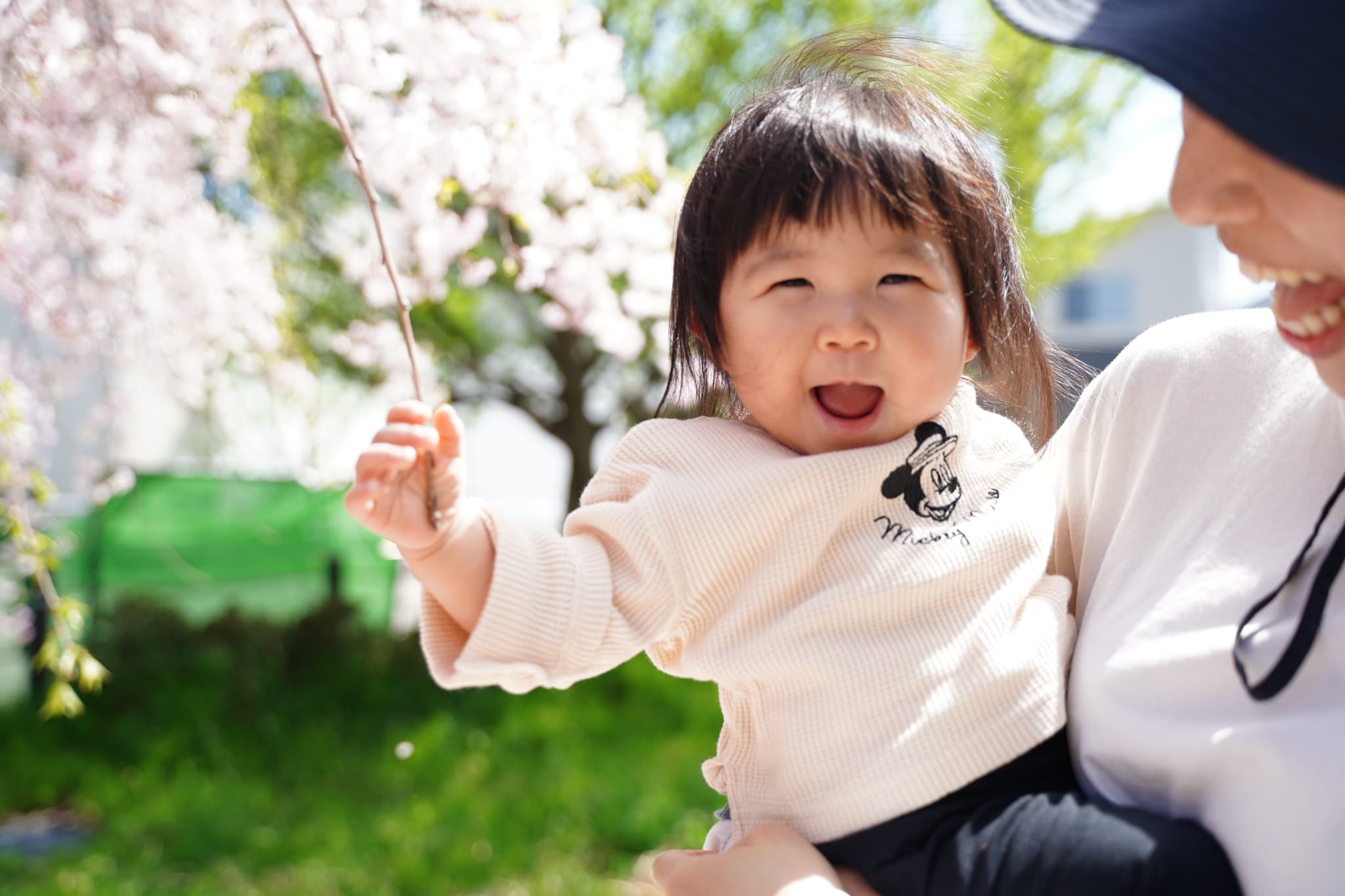 先生に抱っこしてもらって触ってみたり、自分からも見上げてみたりして、さくらんぼ組さんも綺麗な桜に興味津々の様子でした☺️🍒