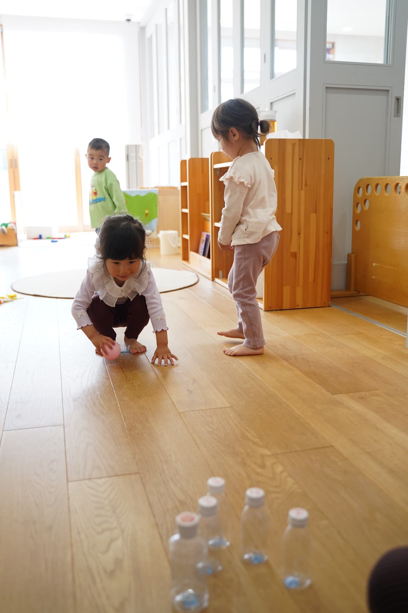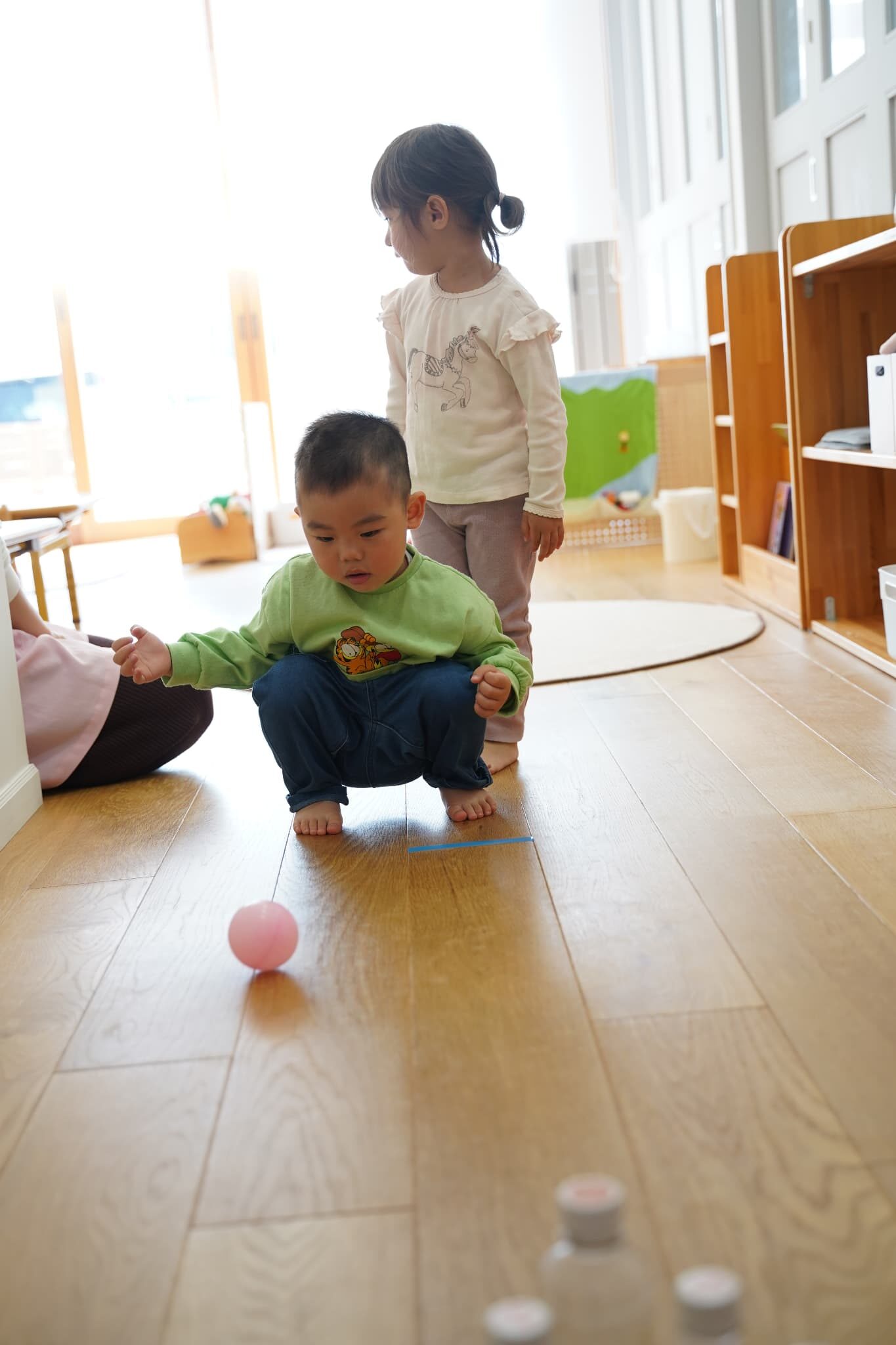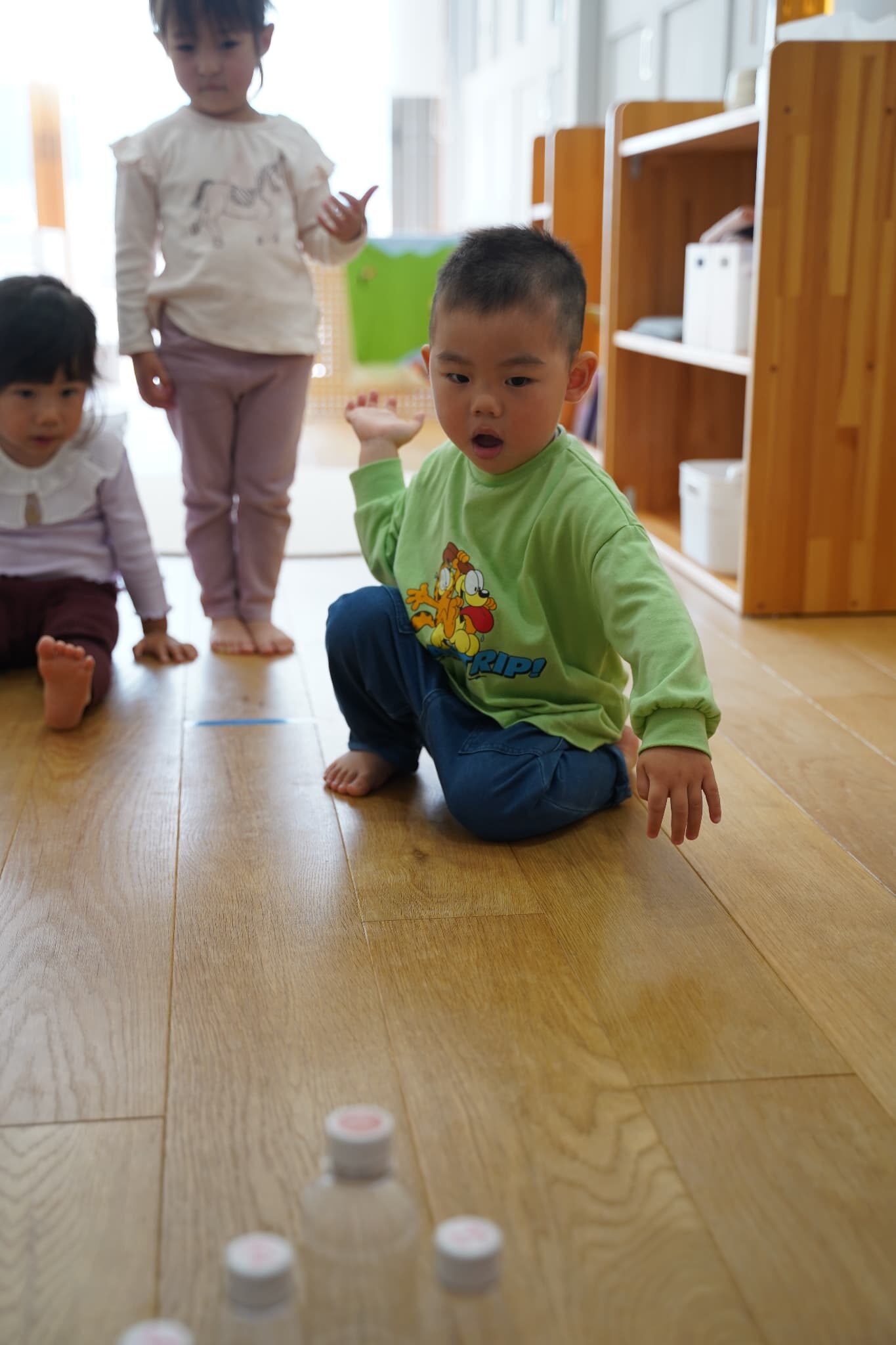 お友達がピンを倒すと、じょうず〜と拍手する姿もありましたよ👏