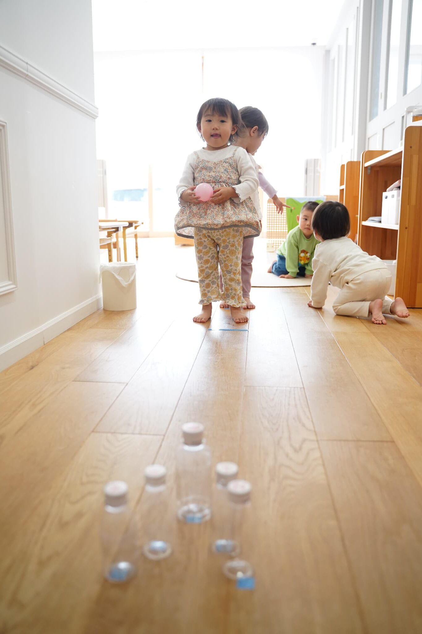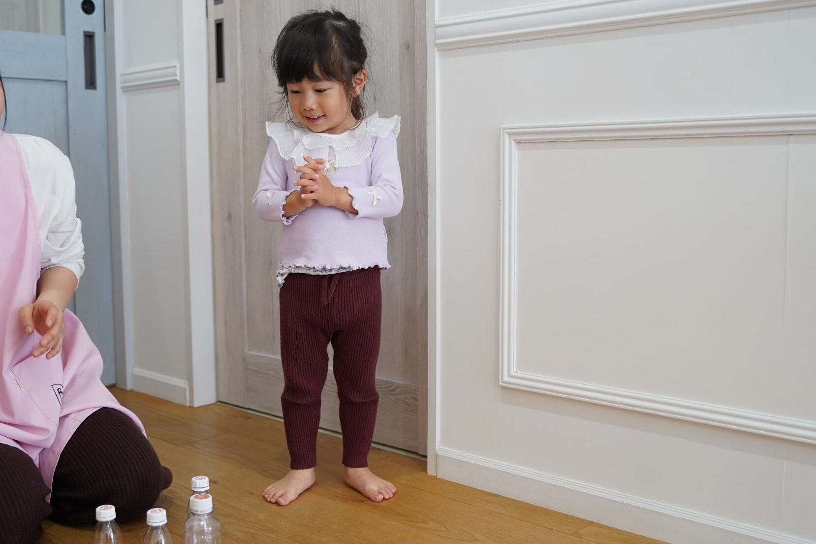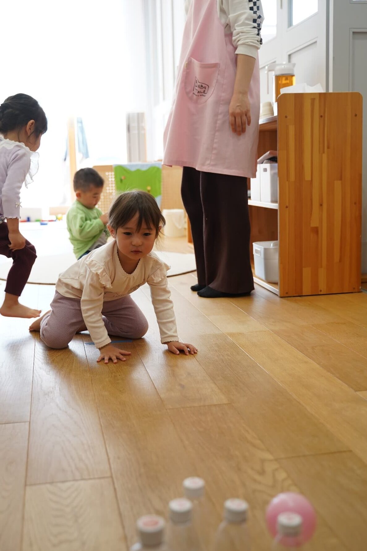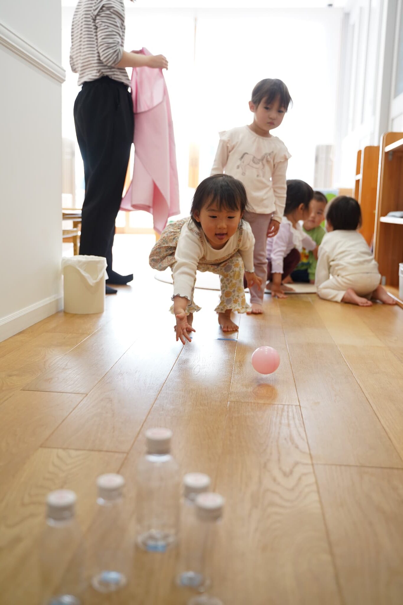 お友達がピンを倒すと、じょうず〜と拍手する姿もありましたよ👏