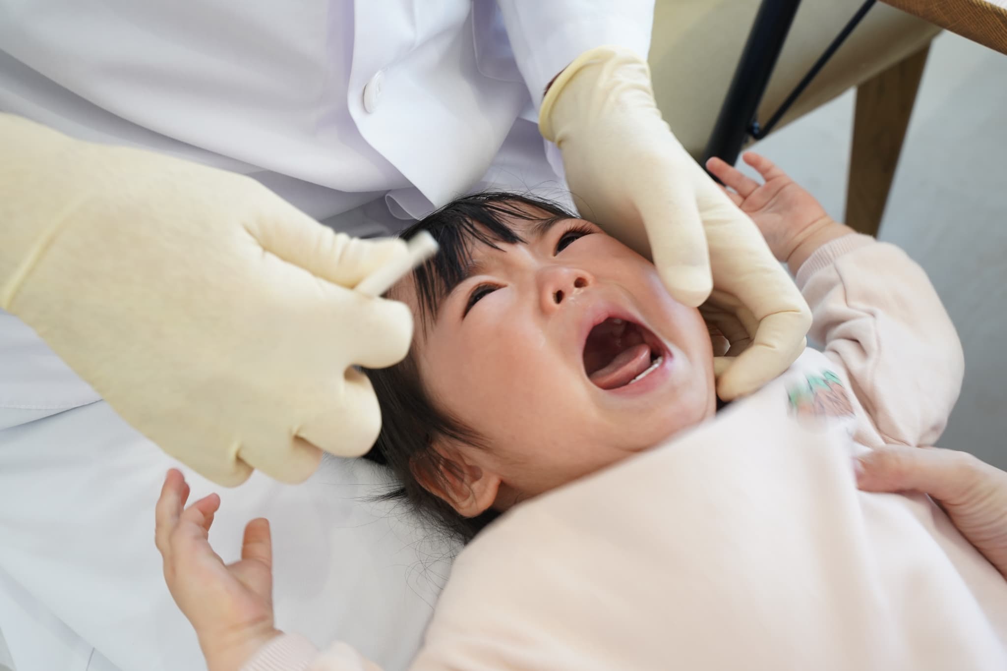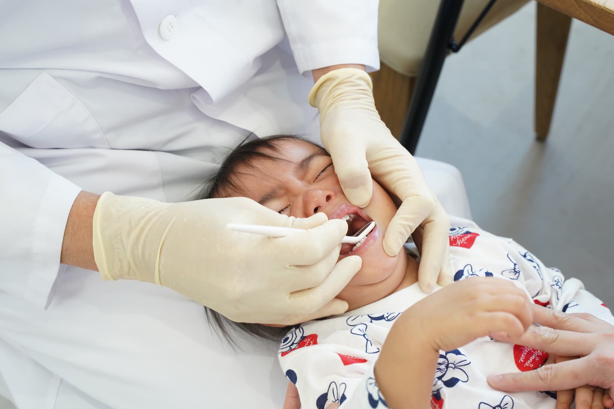ご機嫌な子どもたちでしたが、歯医者さんが来ると一気に不安な顔に…💦泣きながらも、しっかり大きな口を開けて診てもらいましたよ!