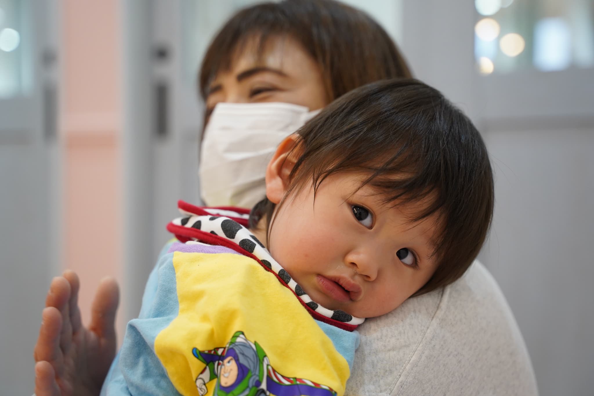 ぼくは涙が止まってちょっと遊具が気になったみたいだけど、やっぱり抱っこが安心するよね☺️