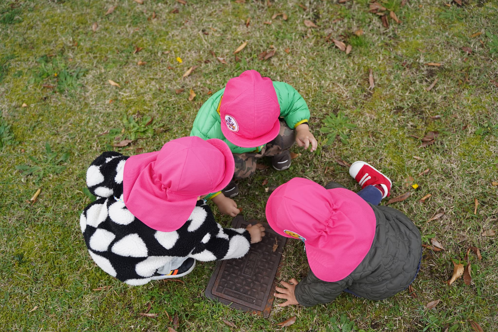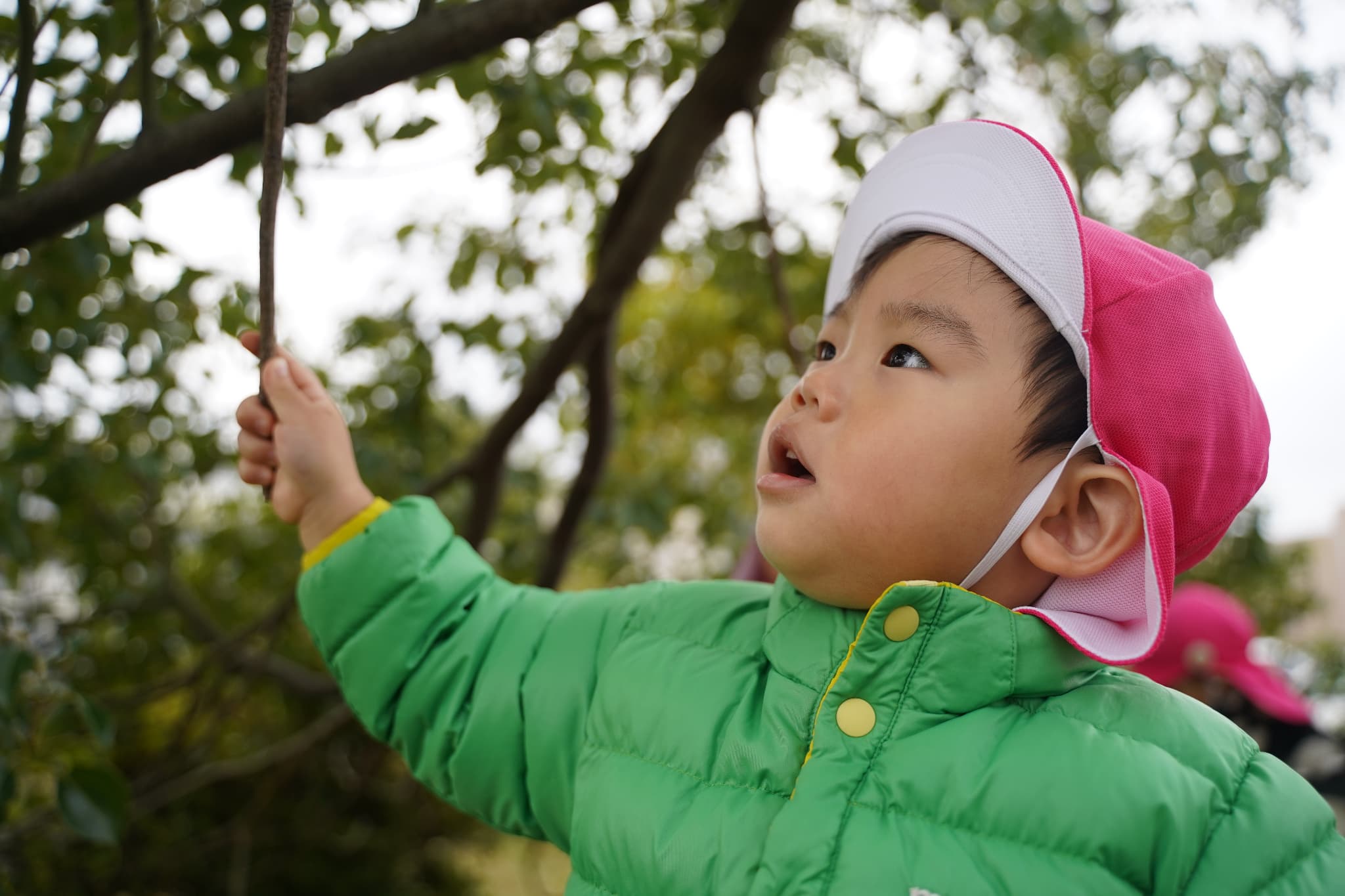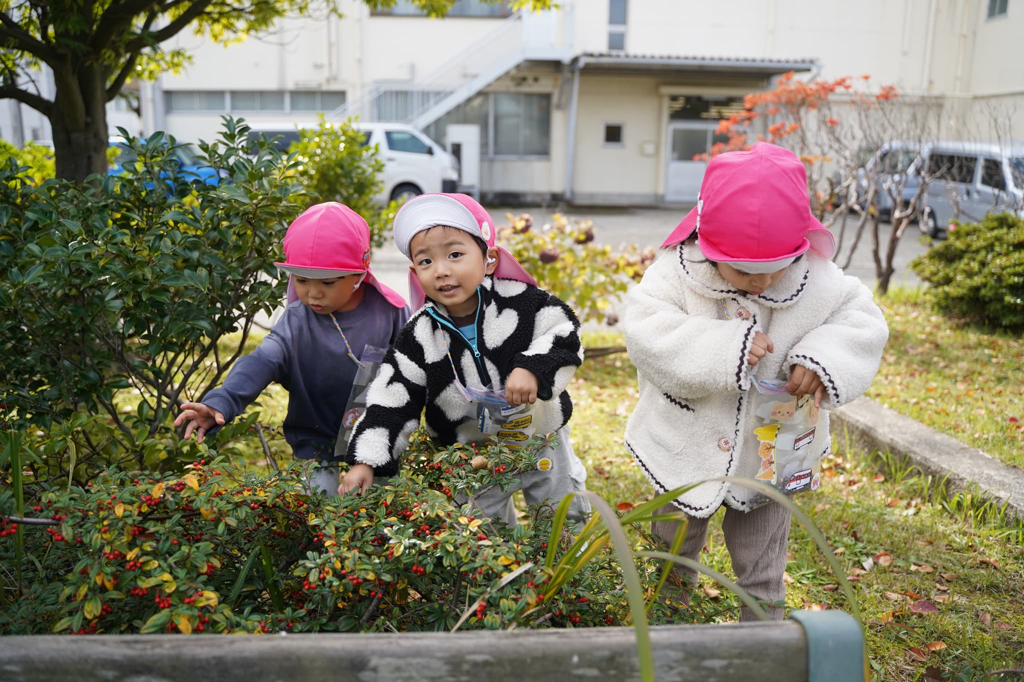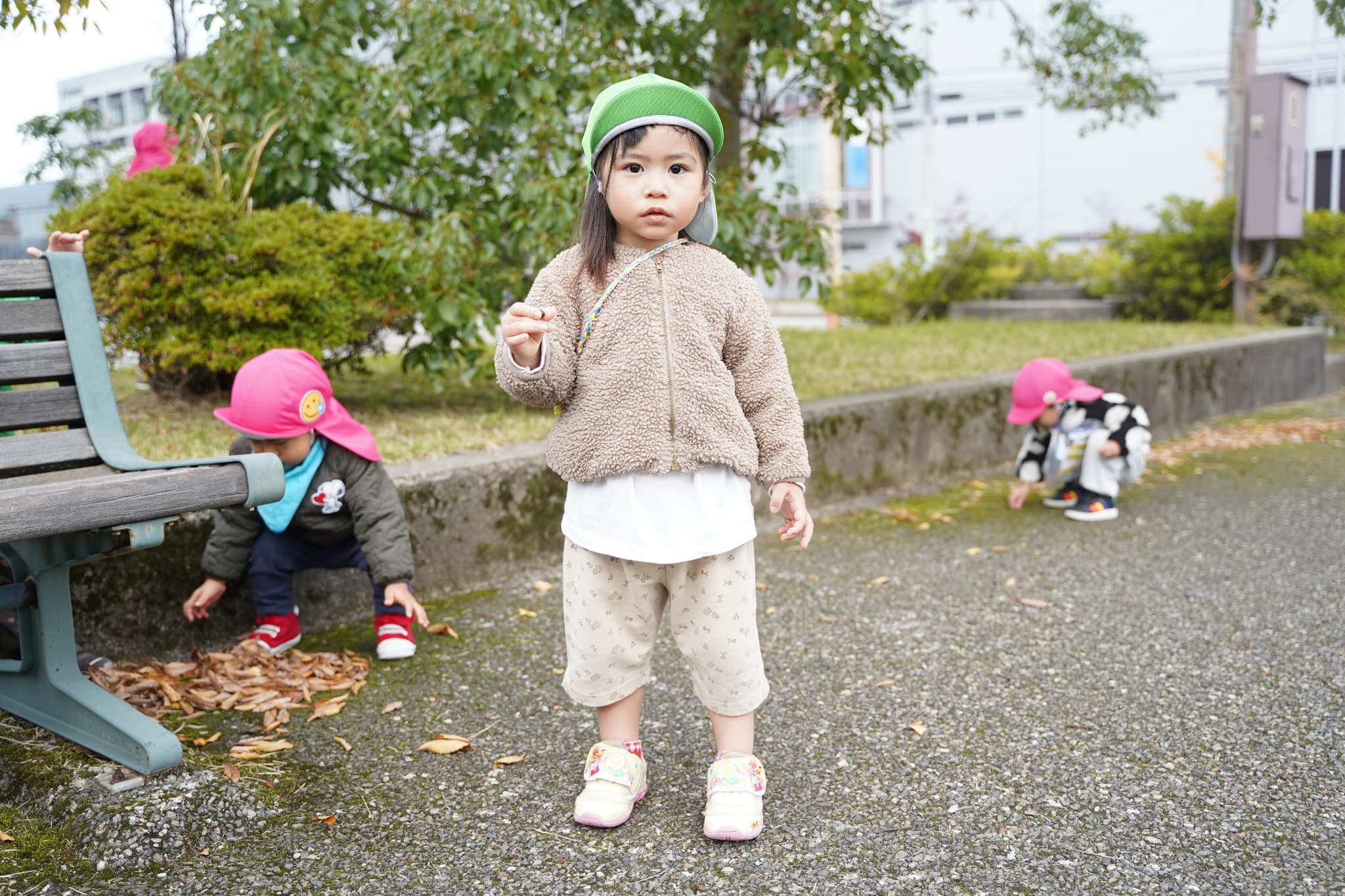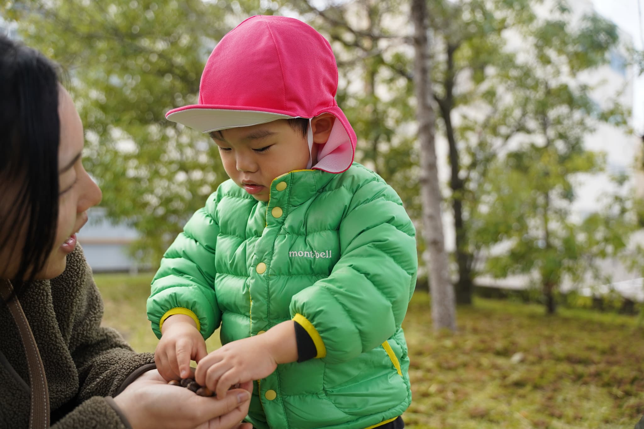 木の実を集めたり、落ち葉で遊んだり