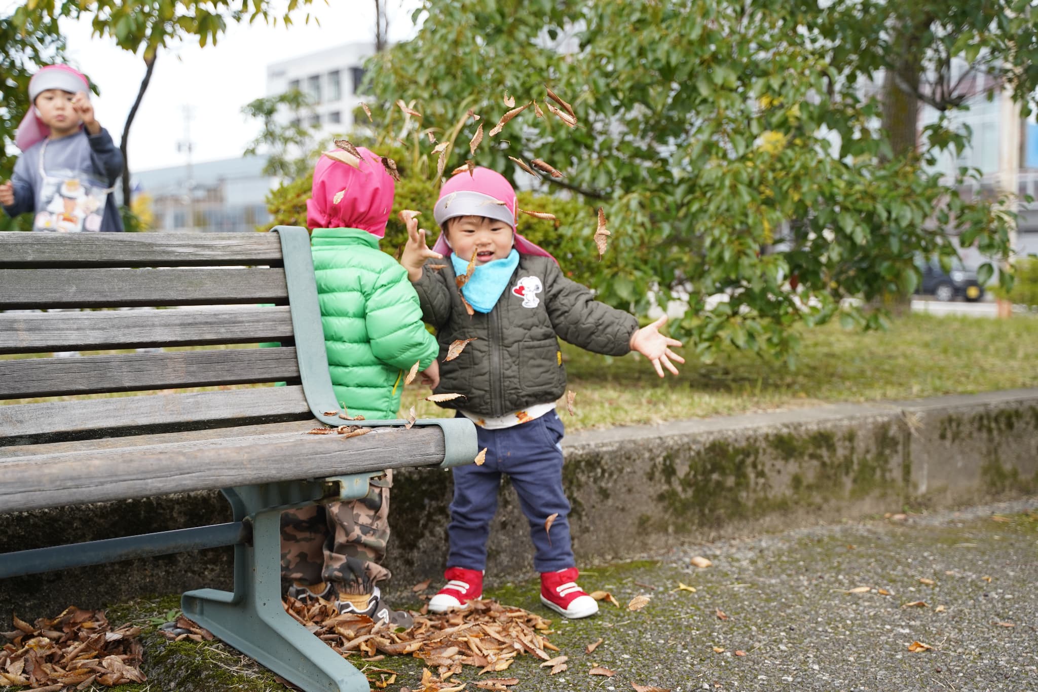 「パラパラ〜」と落ち葉を散らせて楽しんでいました!