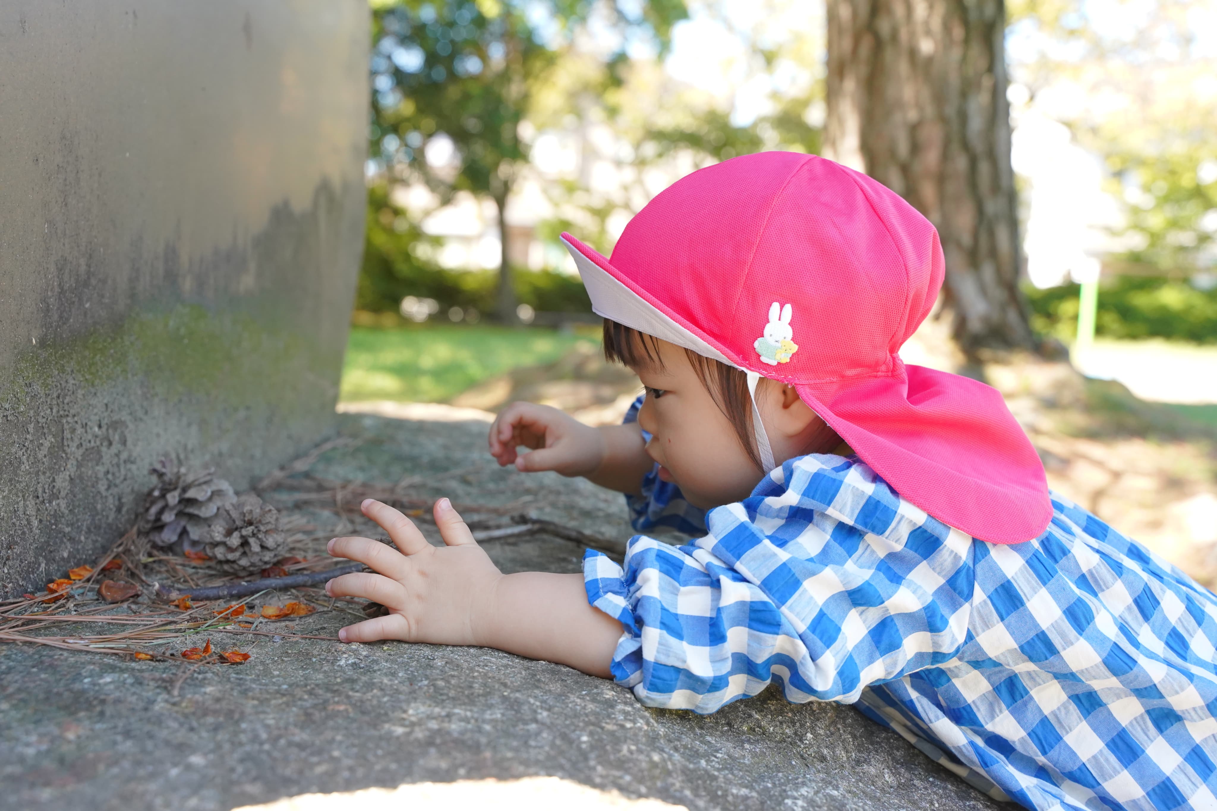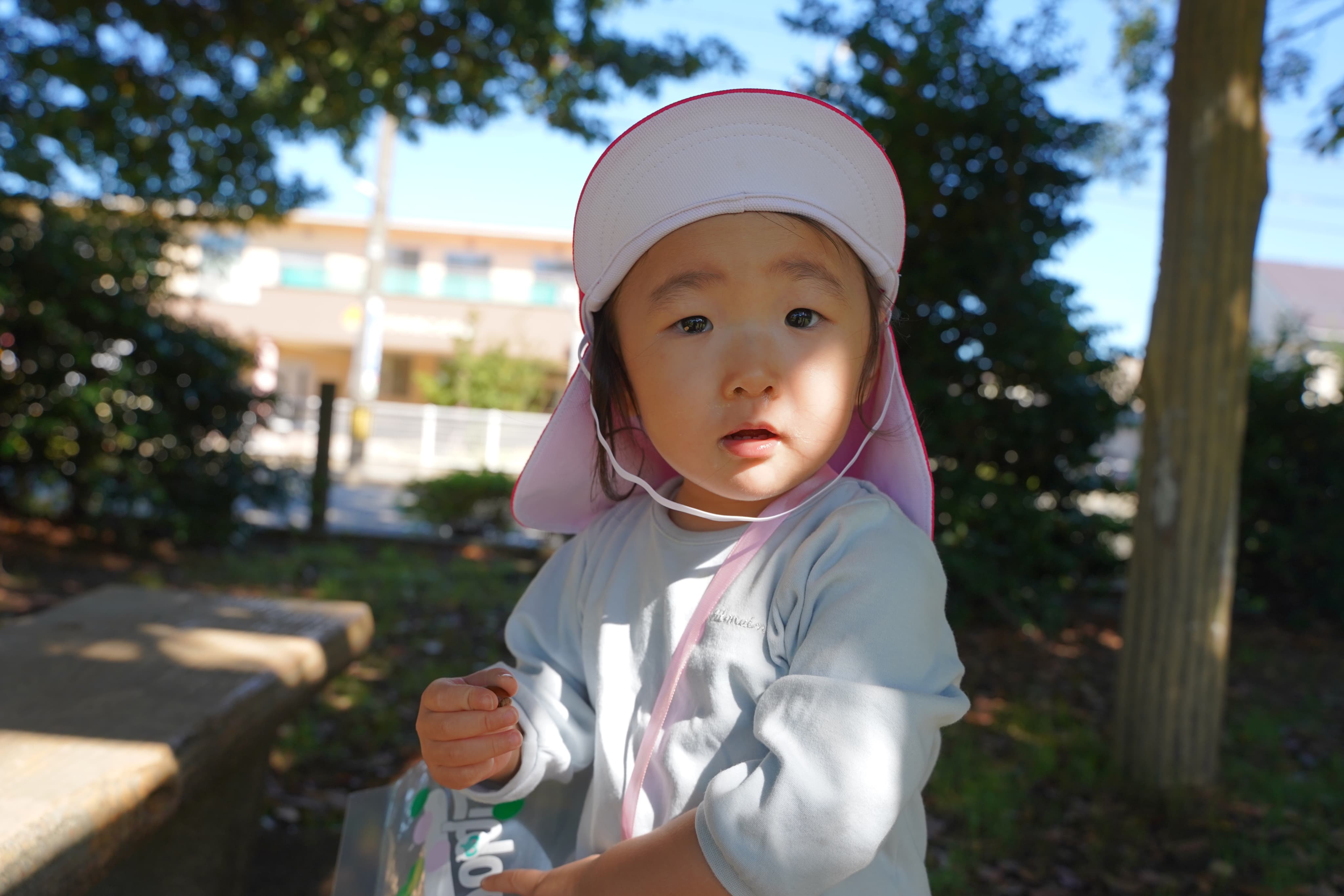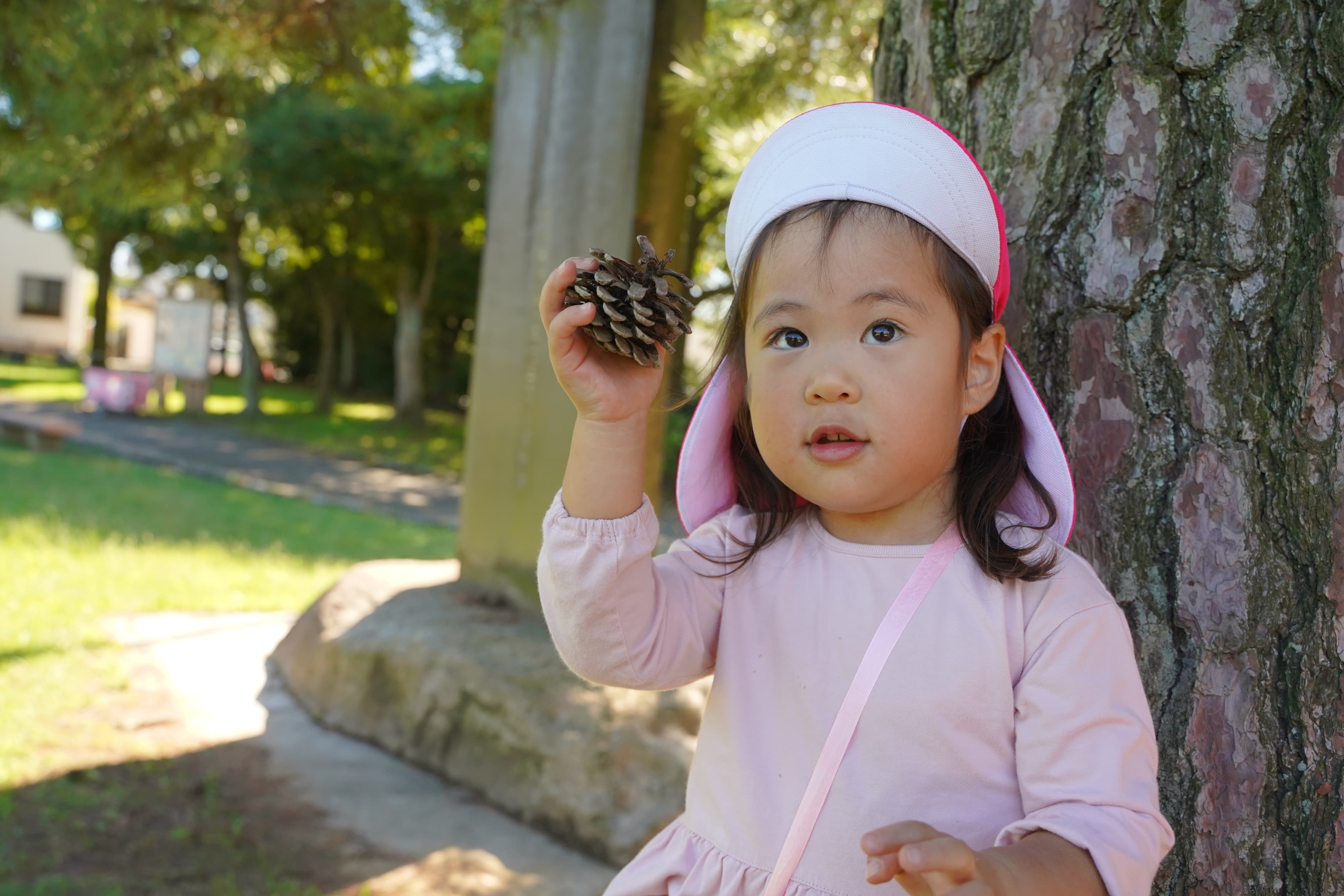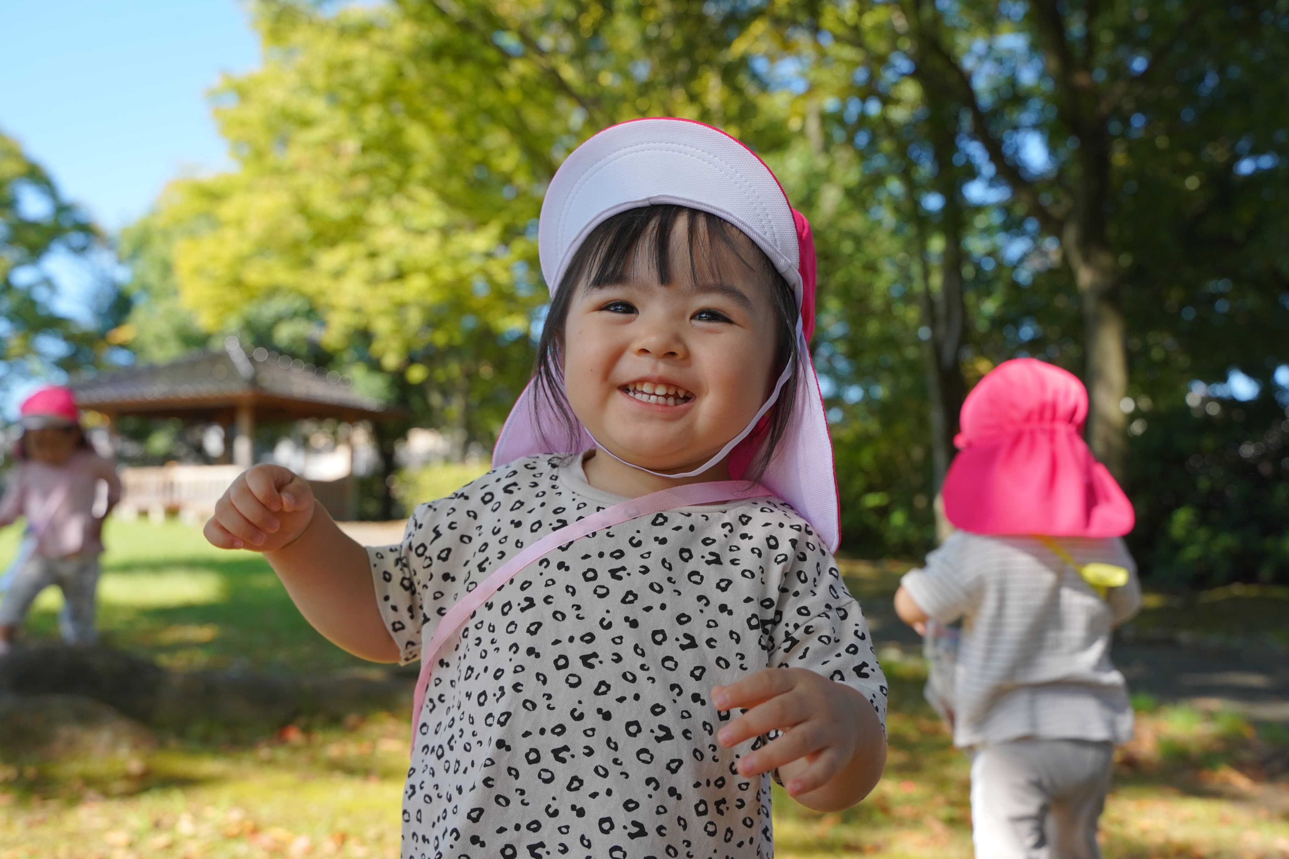秋は自然がたくさん!お散歩に行く度、子どもたちの手にはどんぐりなどでいっぱいだったので、シール貼りをした散歩バックを準備🛍️早速、身につけてチカモリ公園で遊びました💚