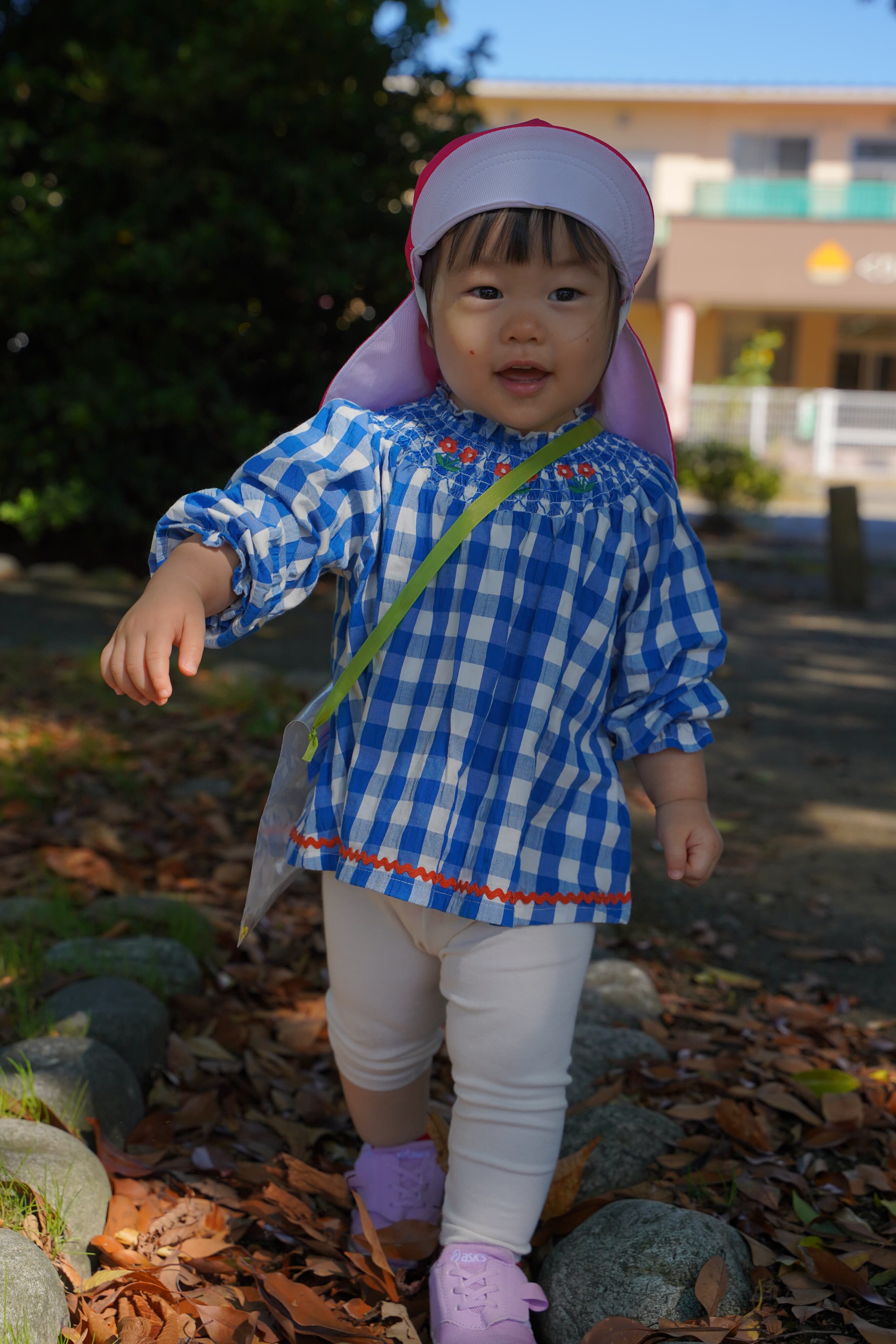 落ち葉のパリパリでな感覚が楽しい様子♪
