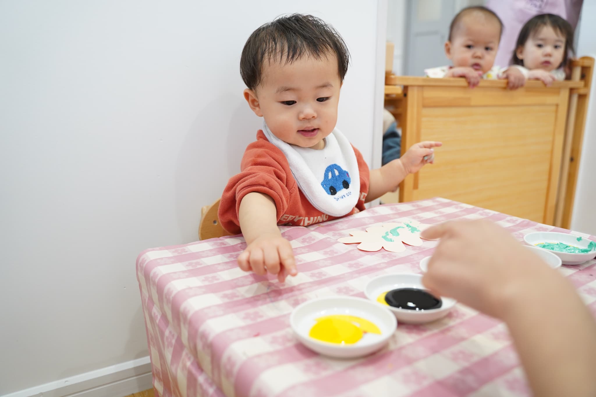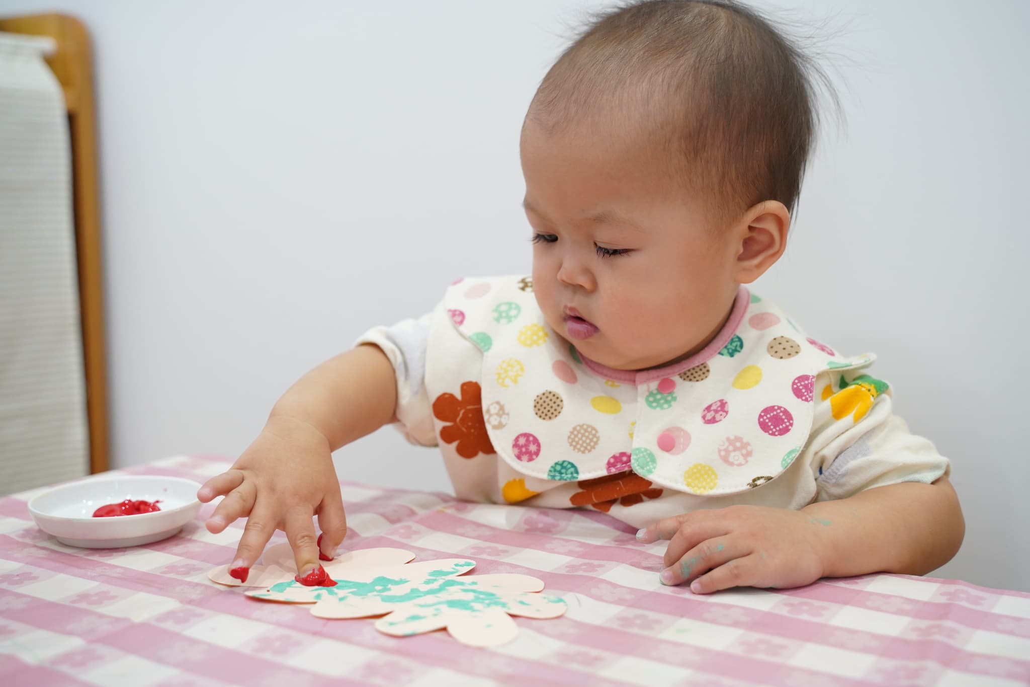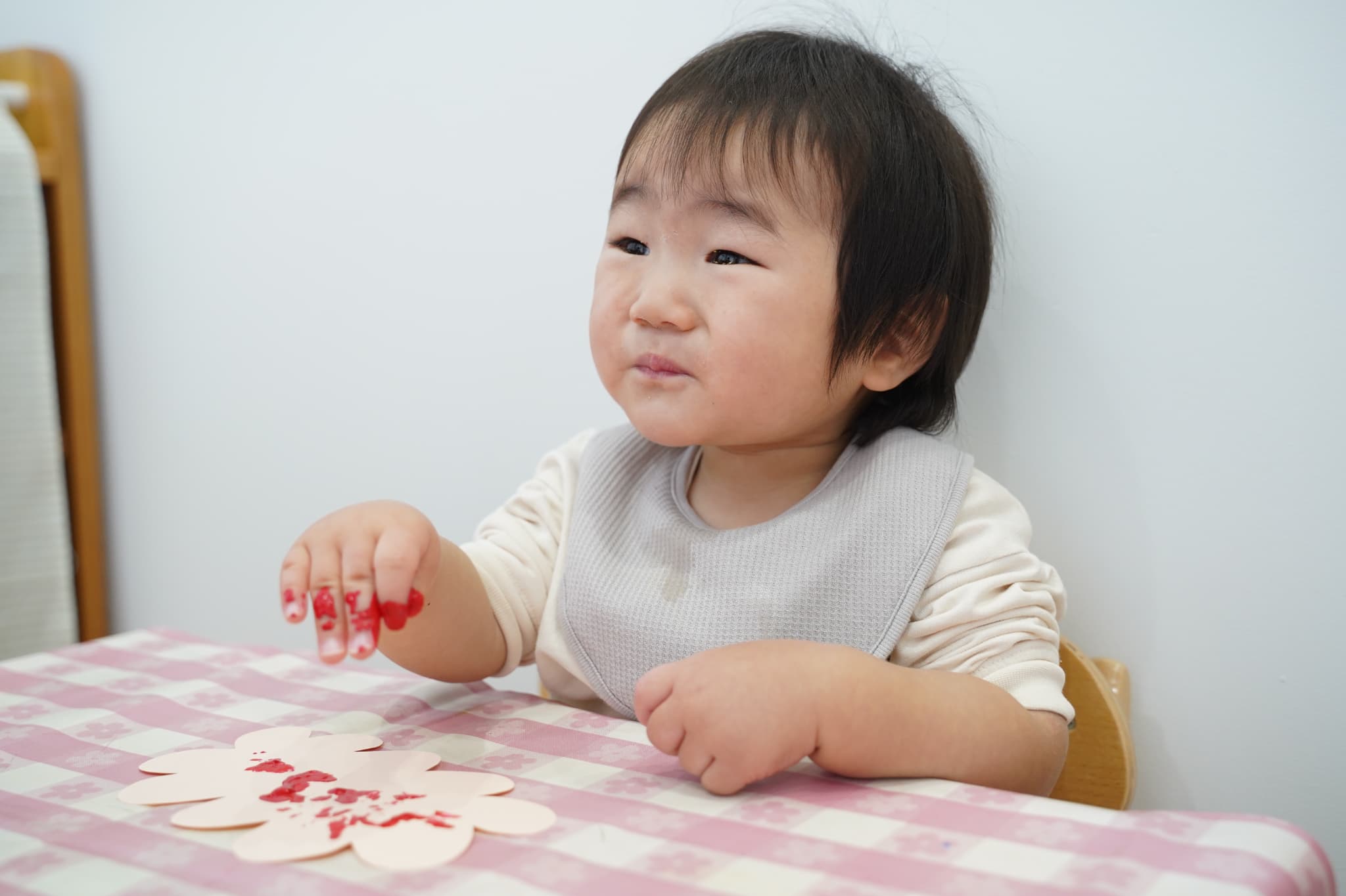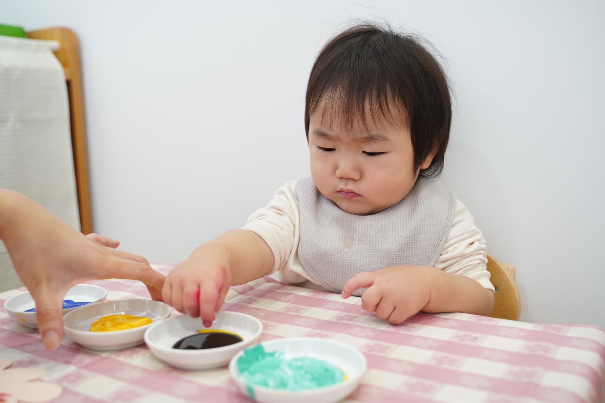 指の腹で絵の具の感触を楽しんでいる可愛らしい姿をお届けします♡