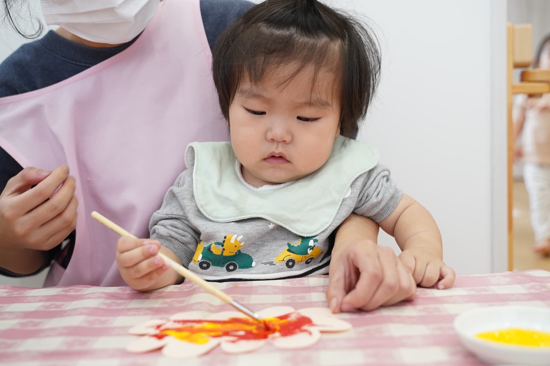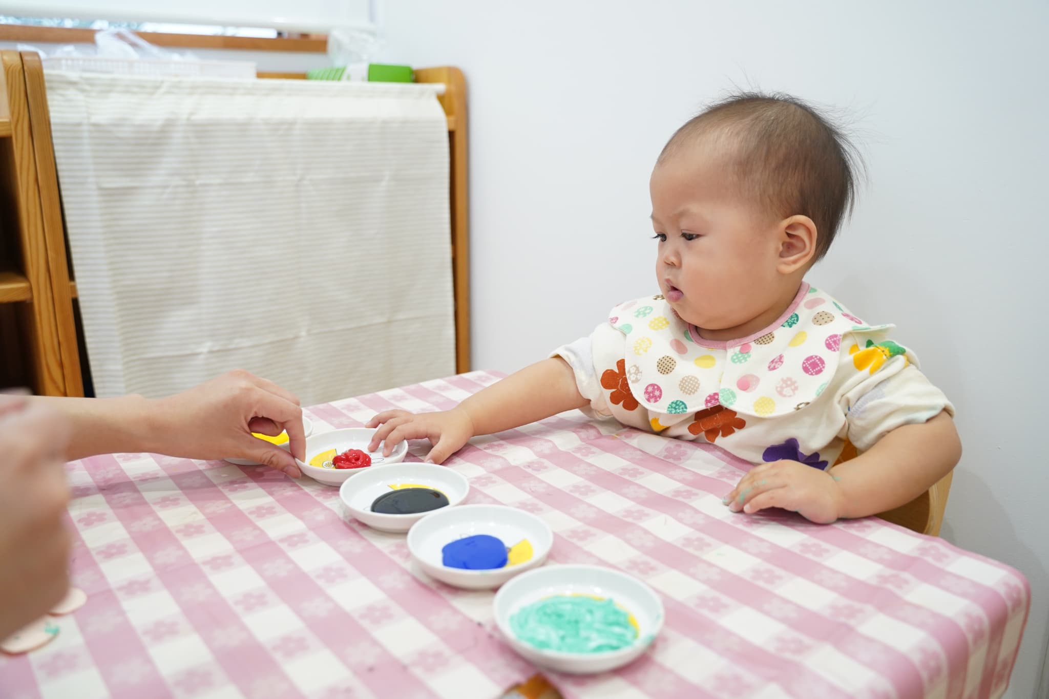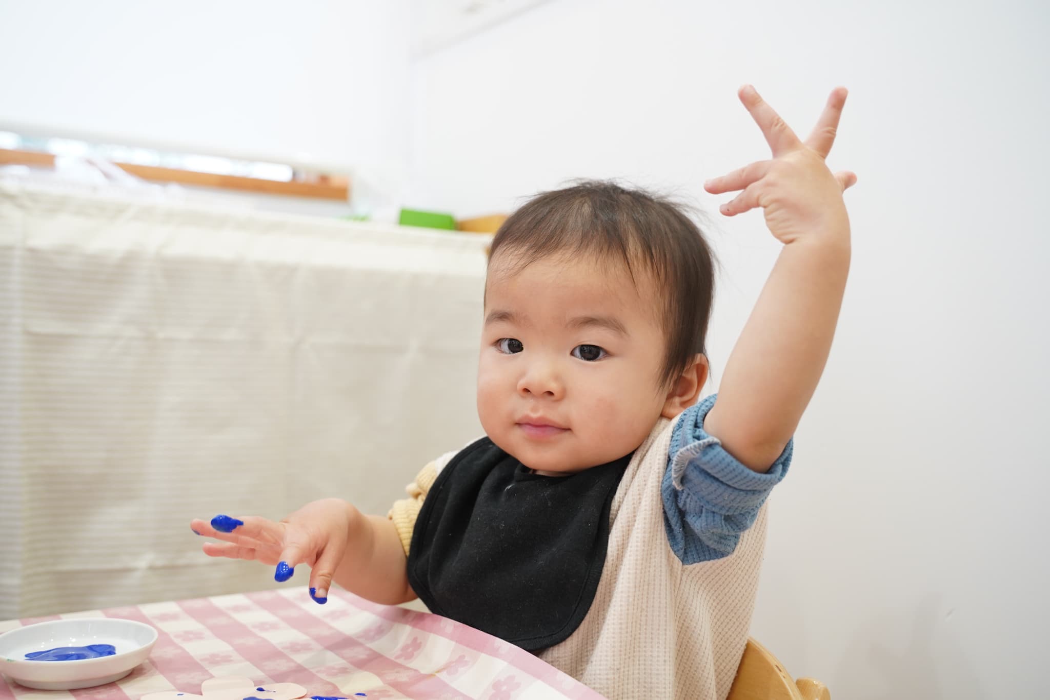指の腹で絵の具の感触を楽しんでいる可愛らしい姿をお届けします♡