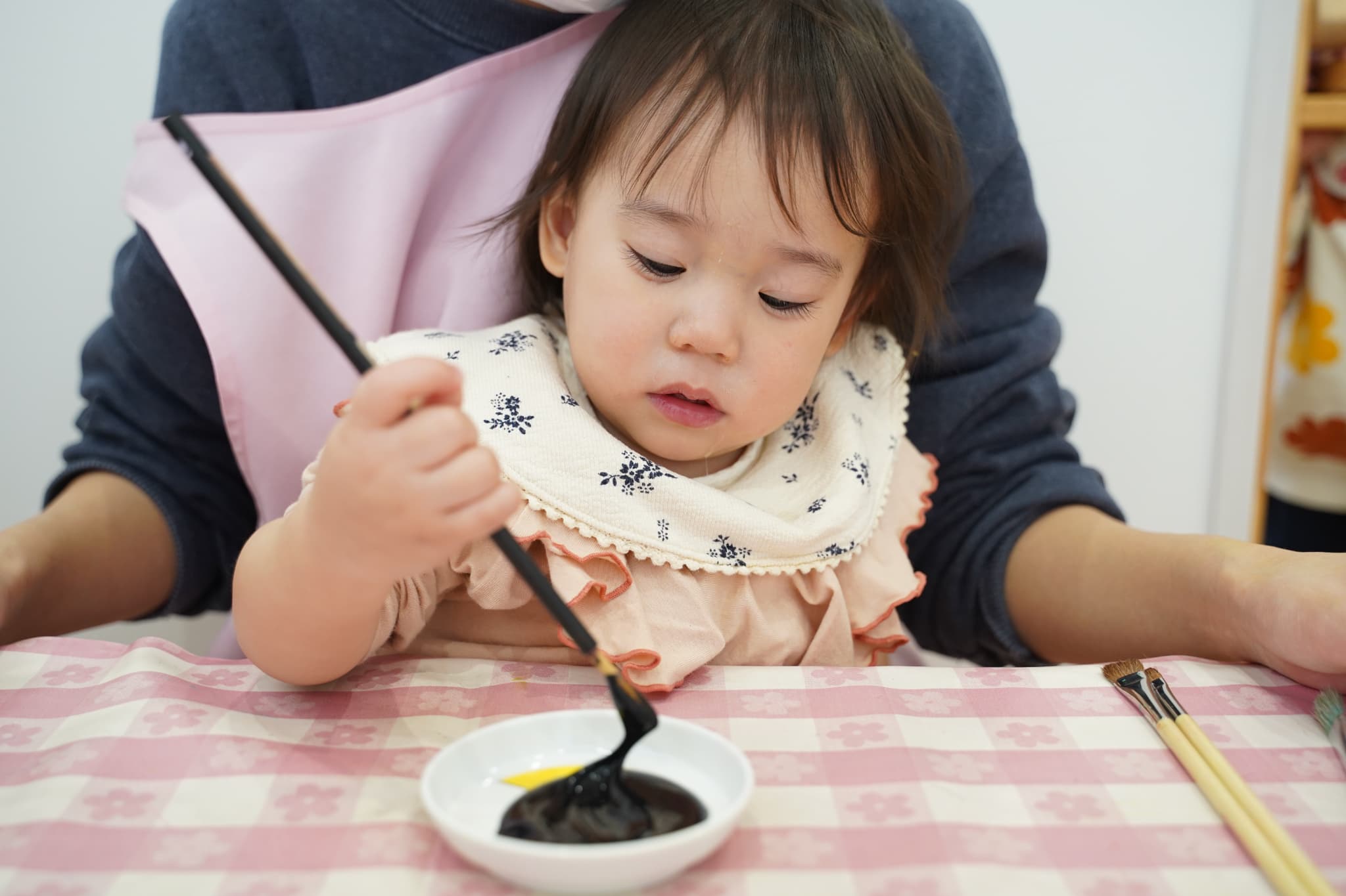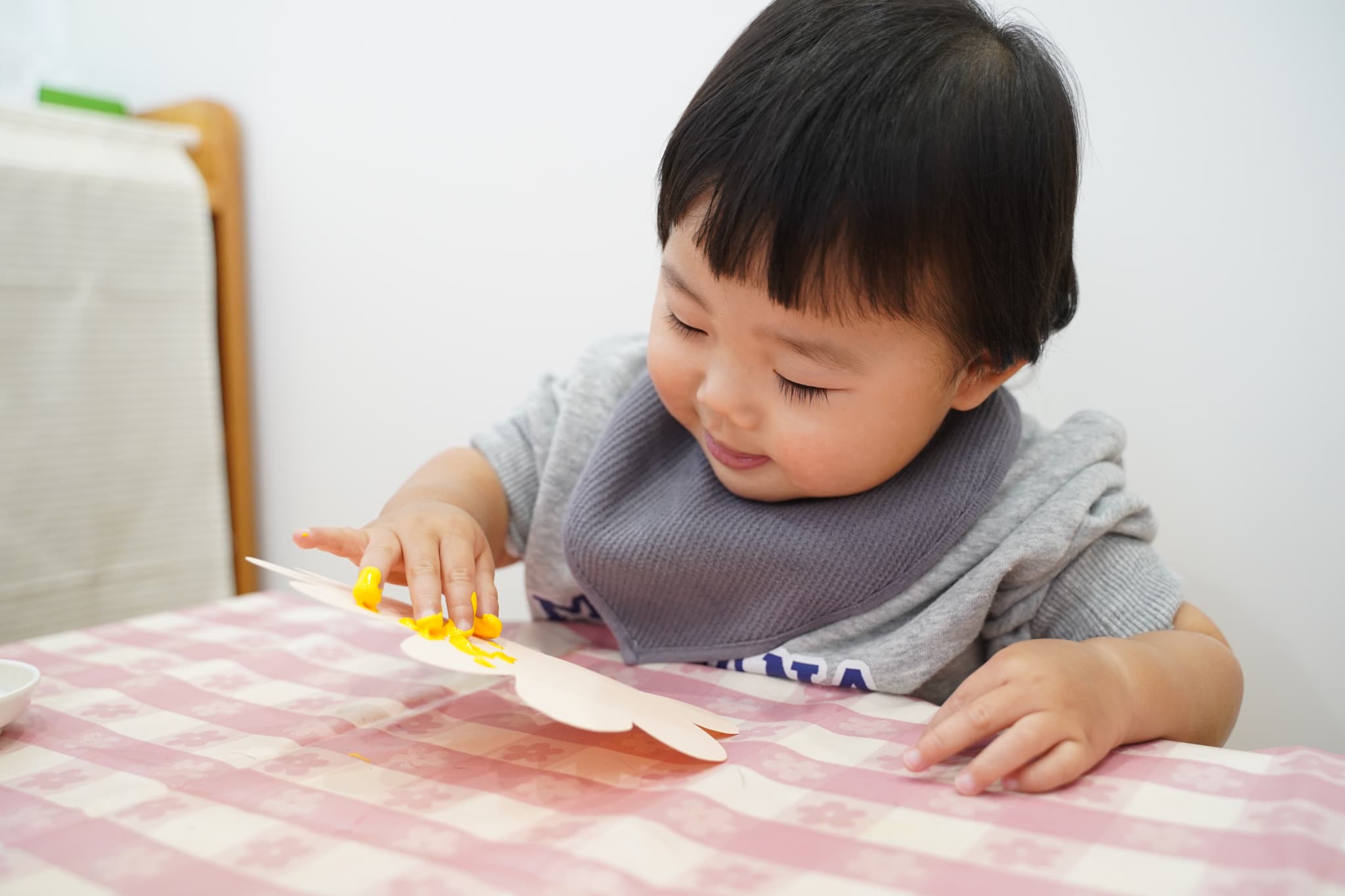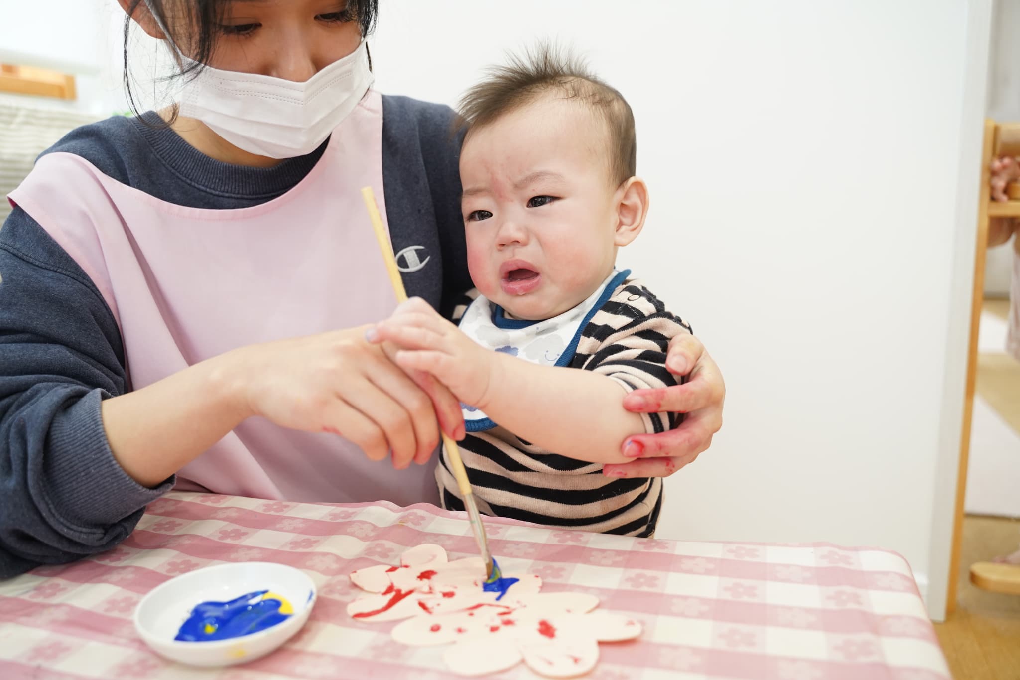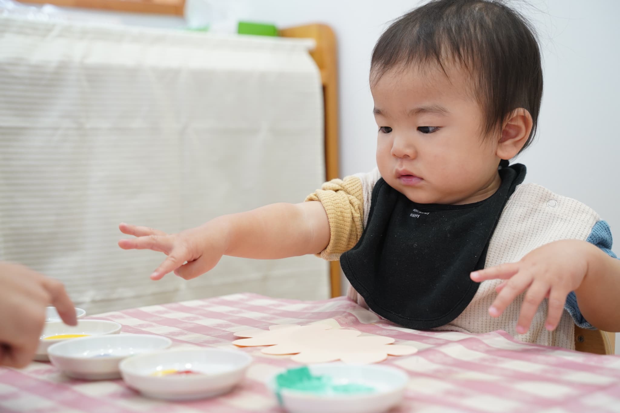 指の腹で絵の具の感触を楽しんでいる可愛らしい姿をお届けします♡