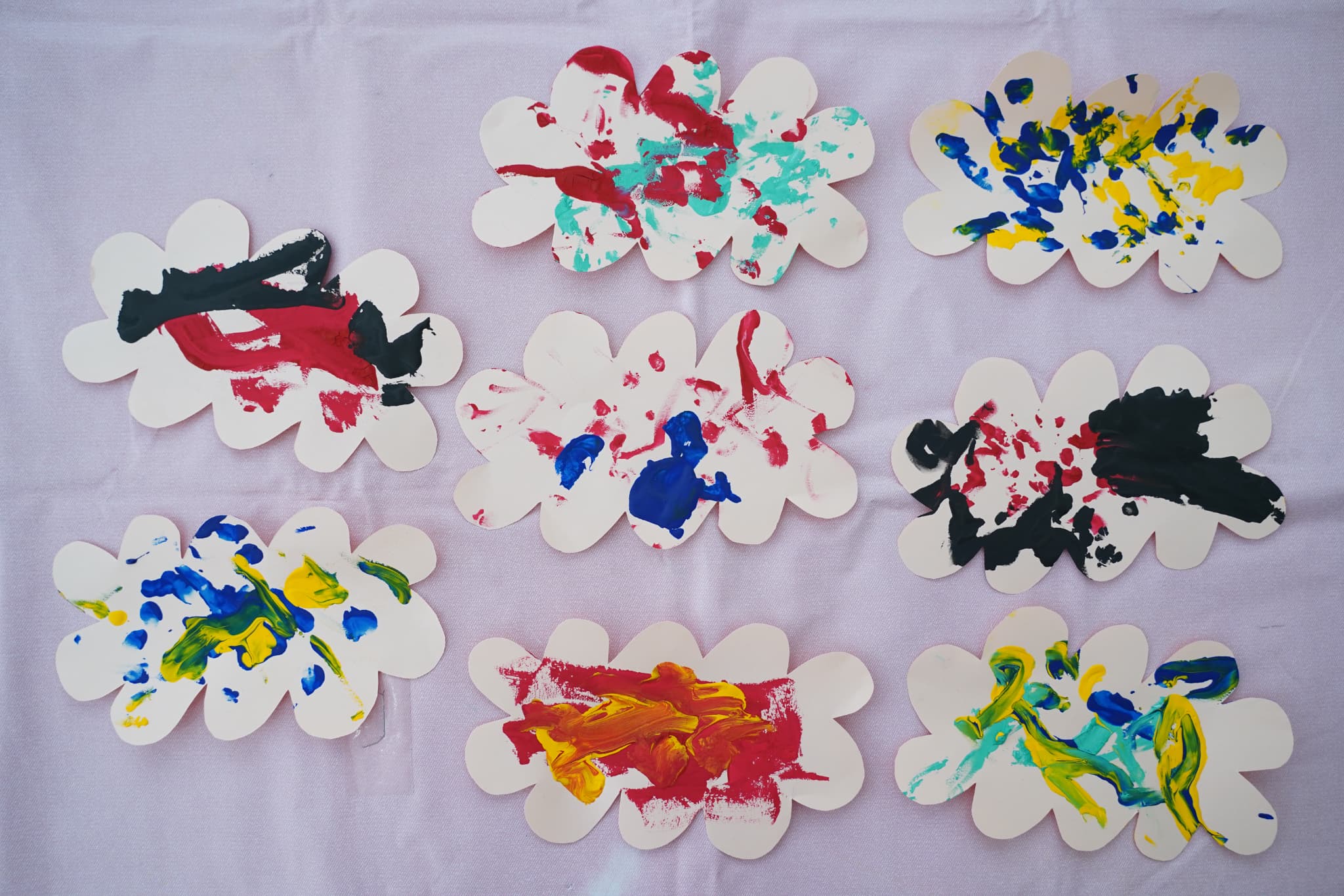 5色の絵の具を見て自分で指さしをして色を選んでくれました🥺☝️