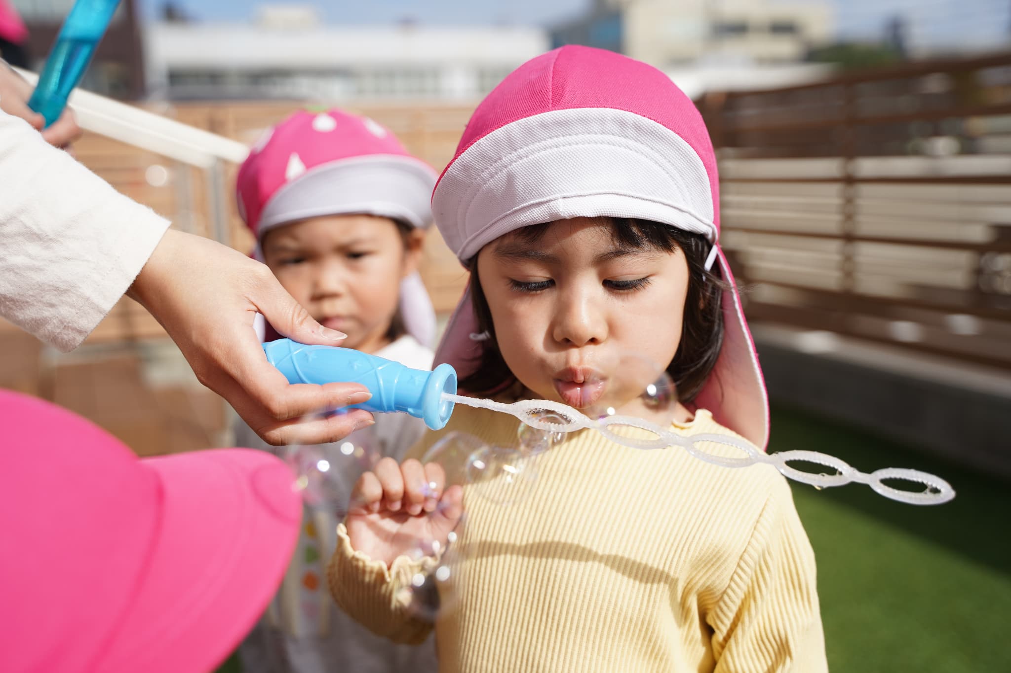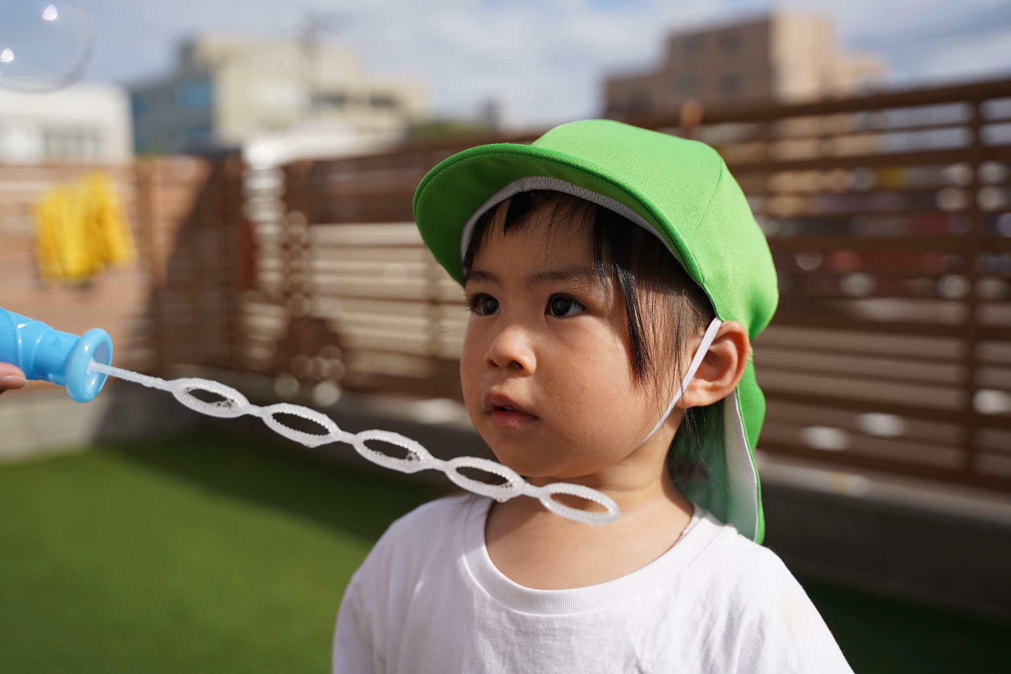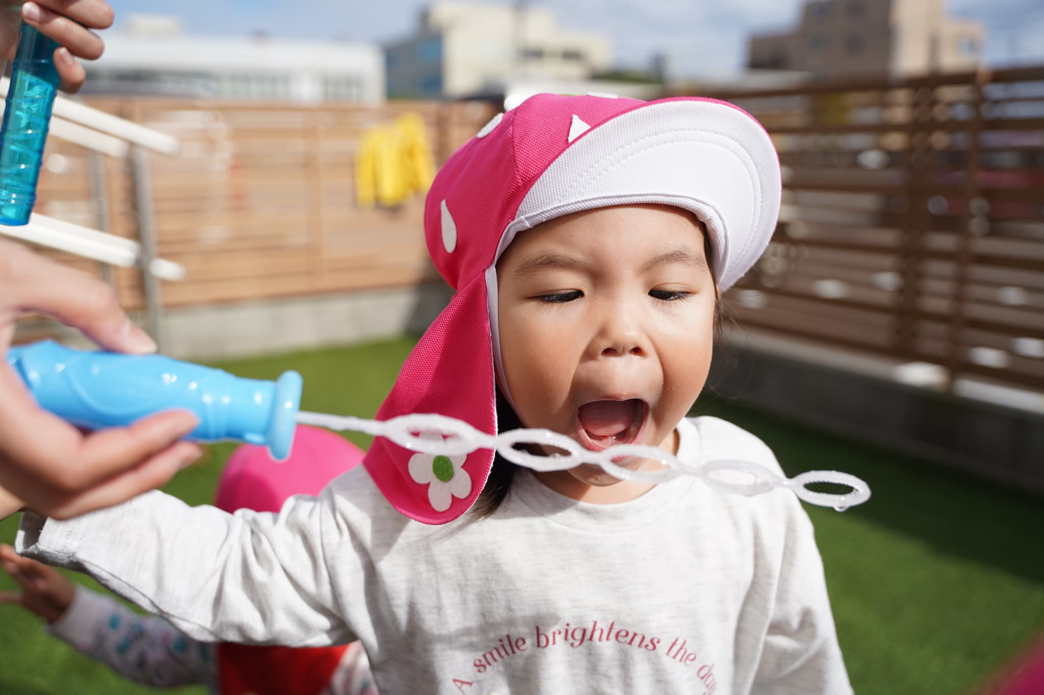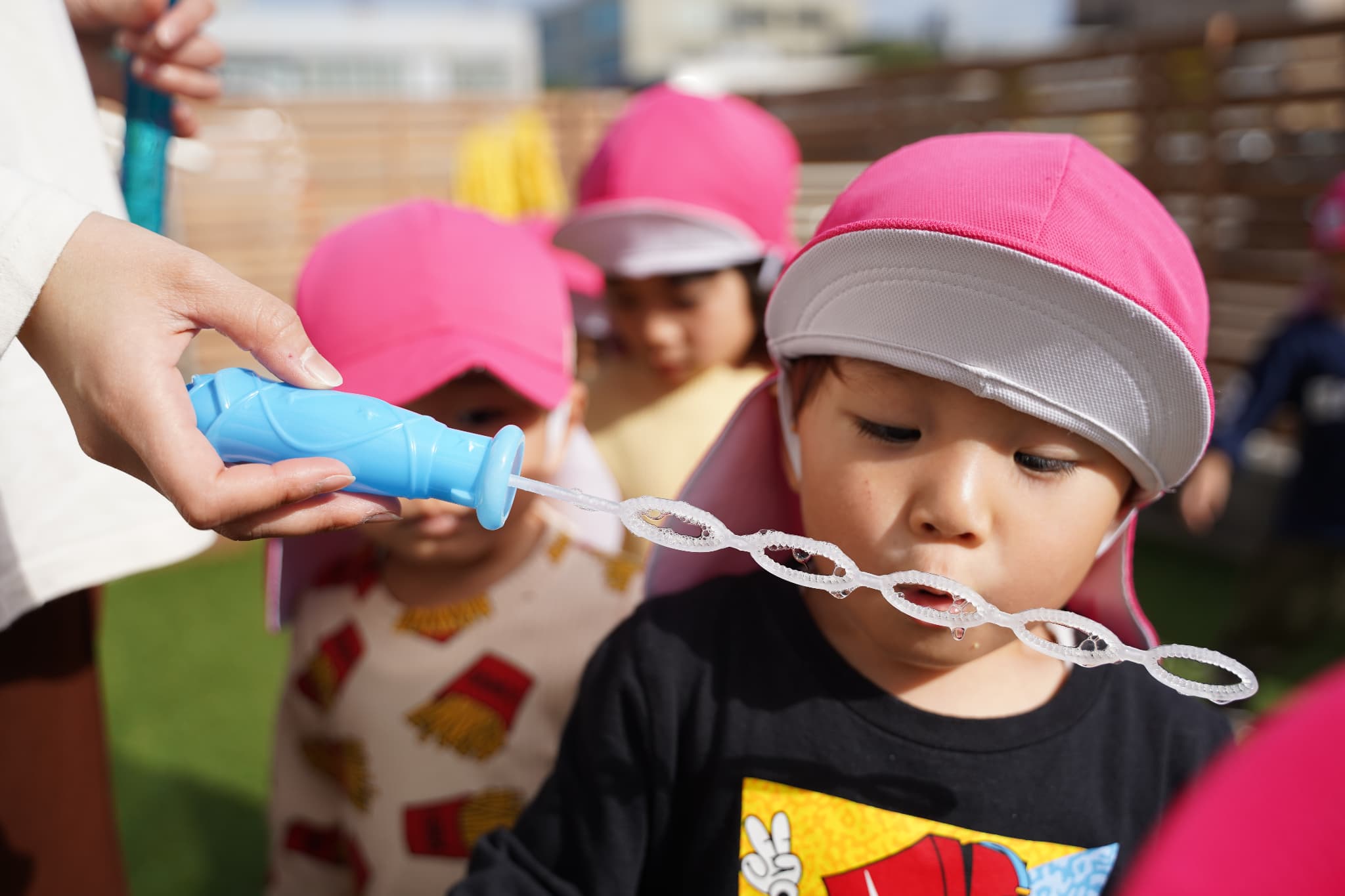 「ふぅ〜したい!」と言うのでシャボン玉の棒を目の前に出すと、