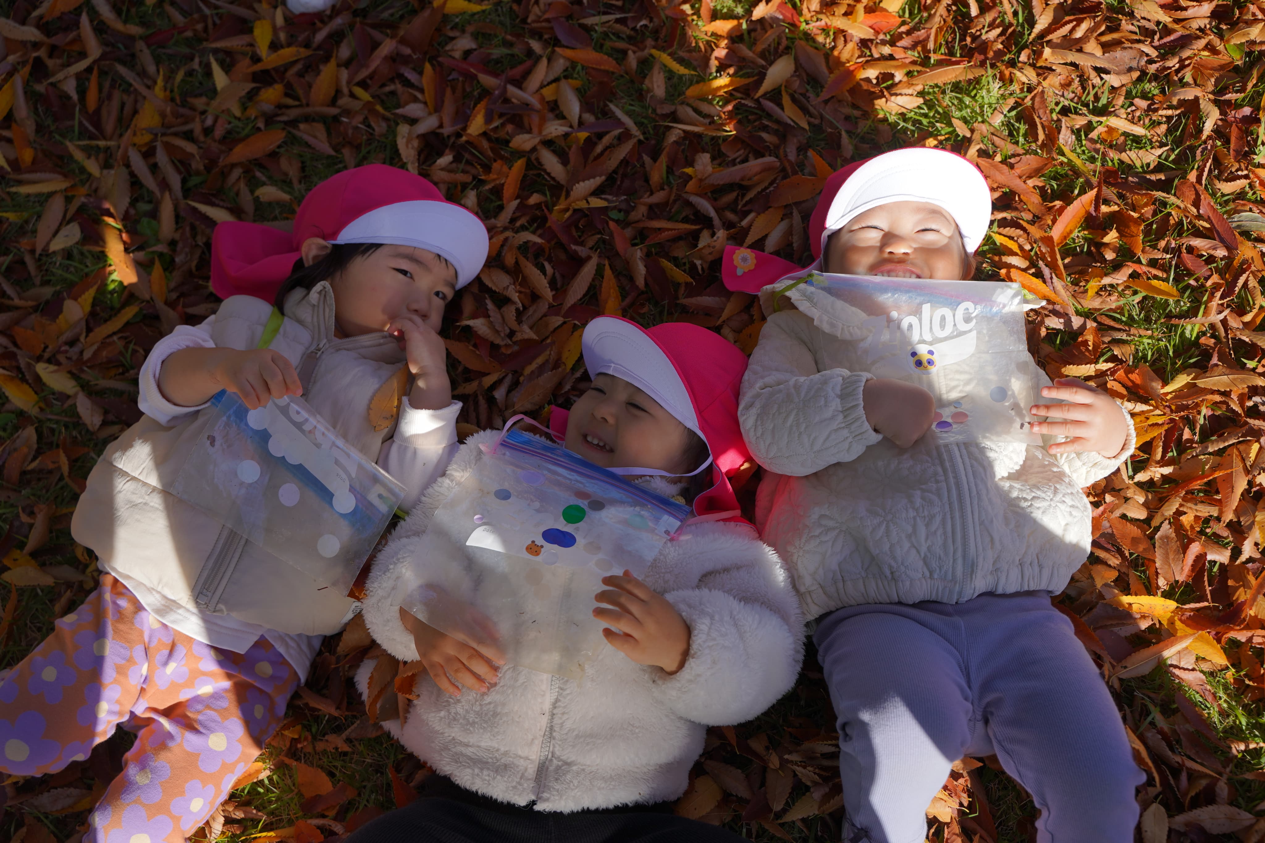 公園一面が落ち葉のカーペットに〜🍂始めは「いいの?」という感じで寝転がり始めた子どもたちも、感触がおもしろくって、何度も寝転がって笑い合っていましたよ🤭💭