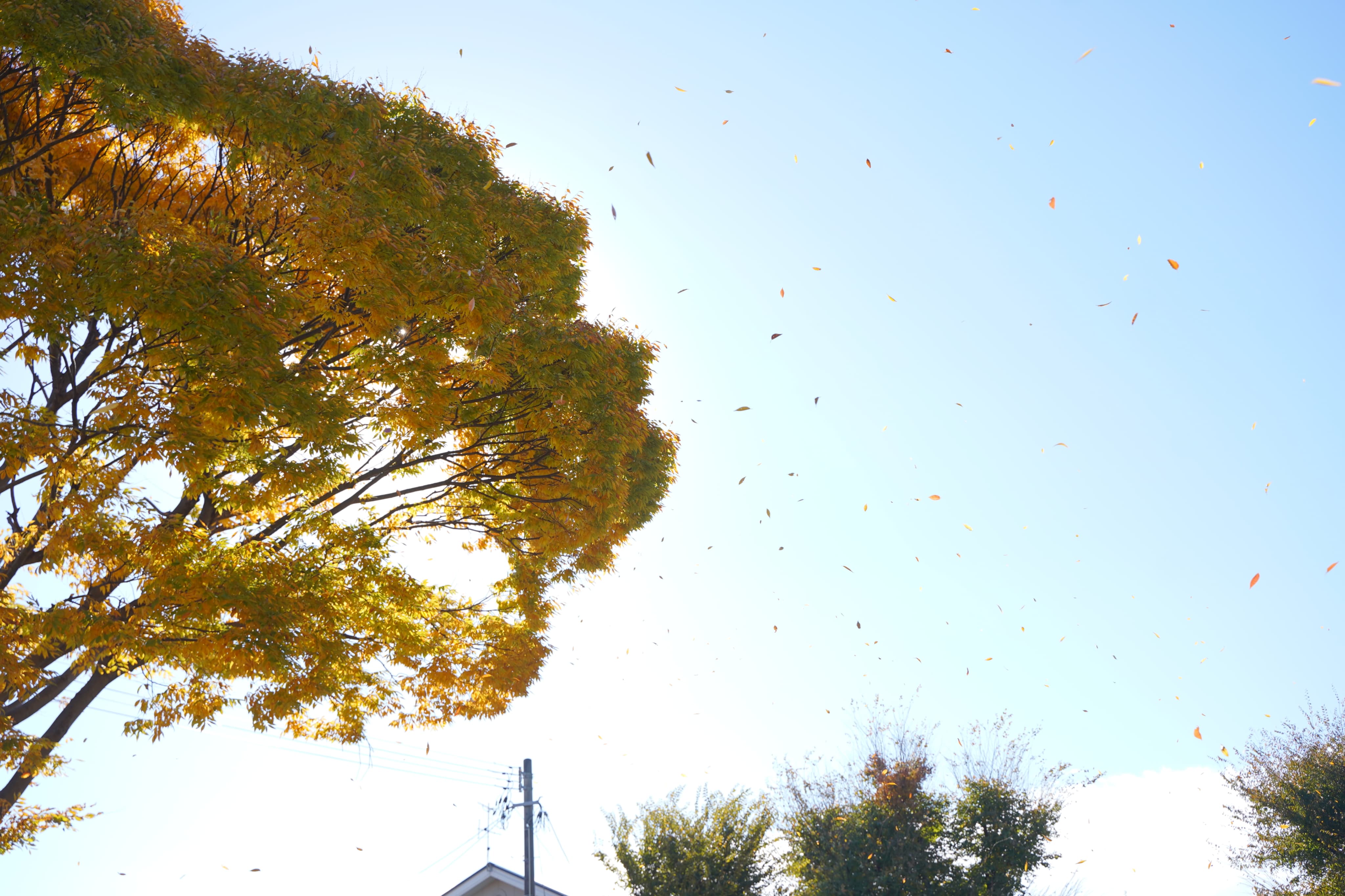 風が吹いて、大量の落ち葉のシャワーが〜🍂🚿