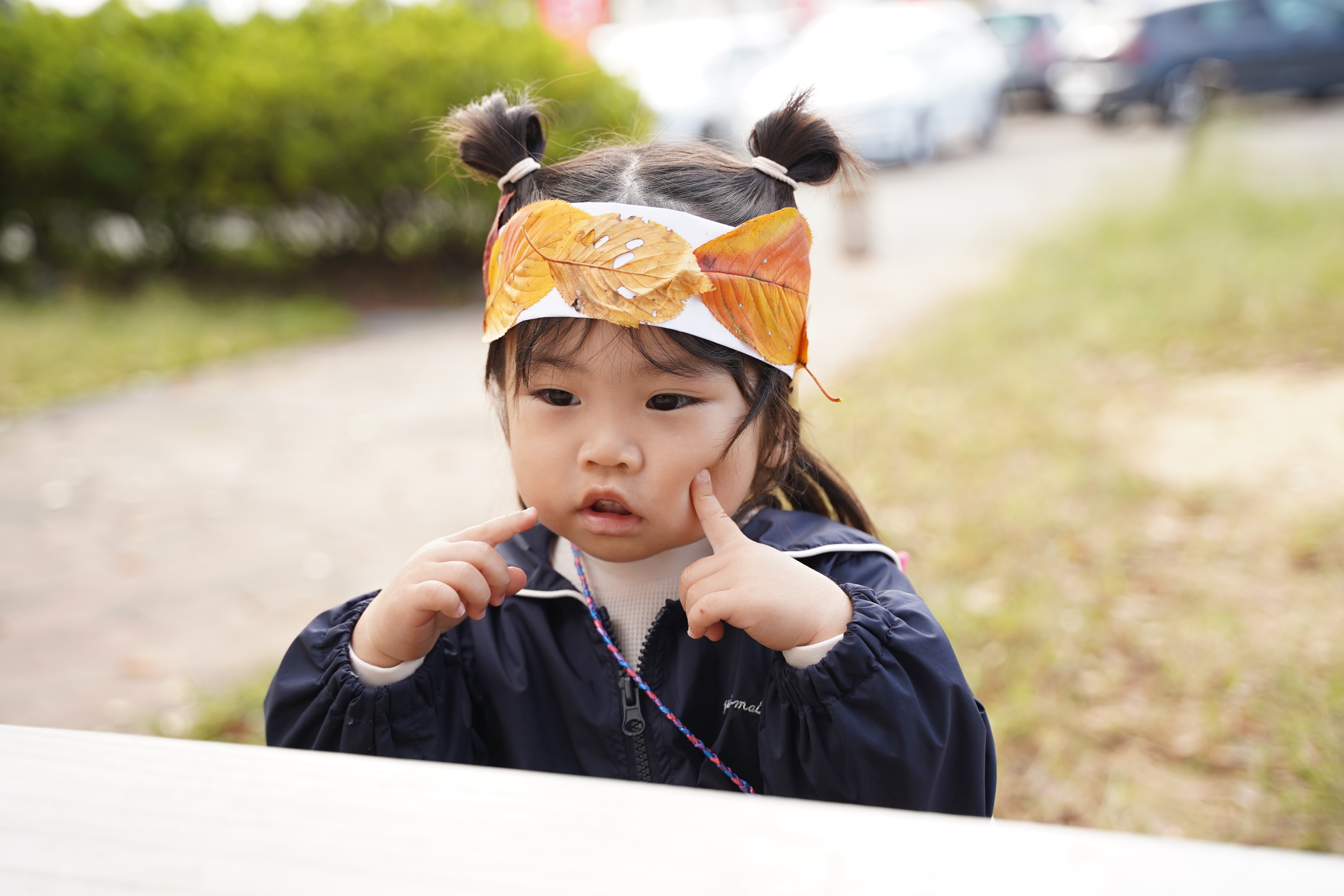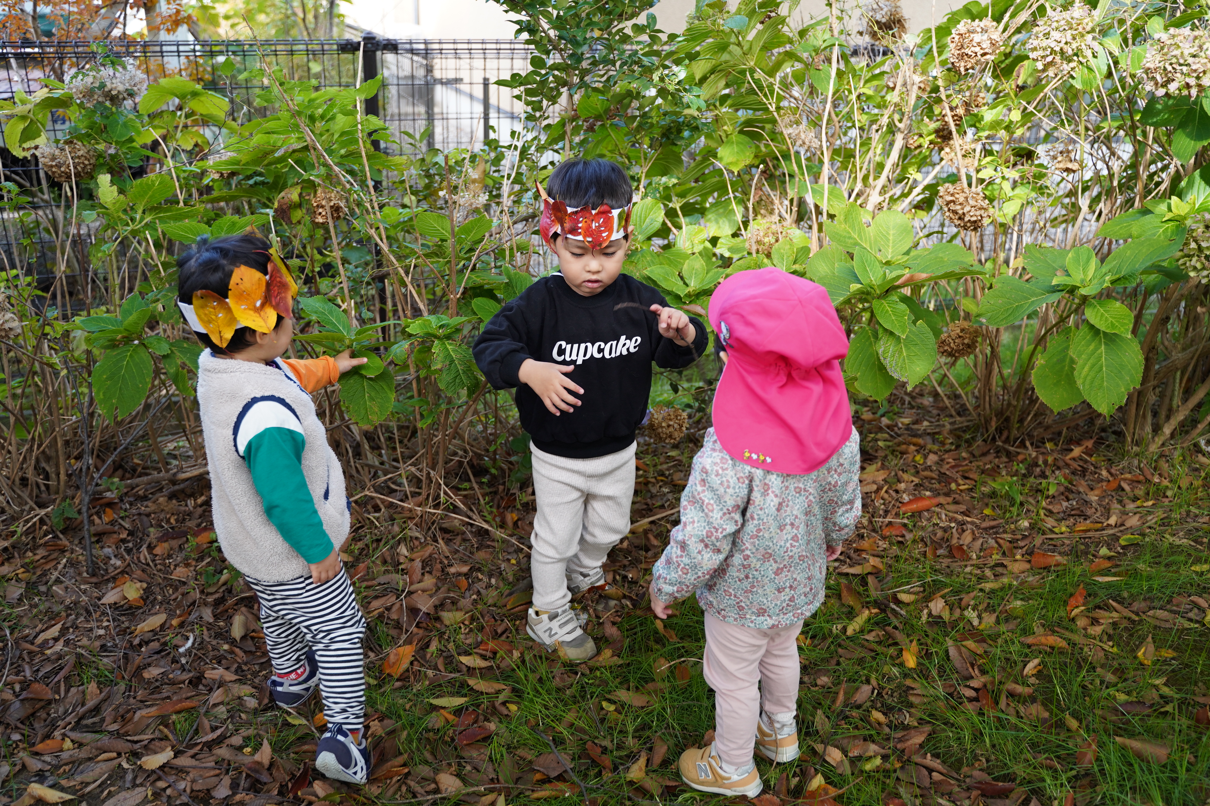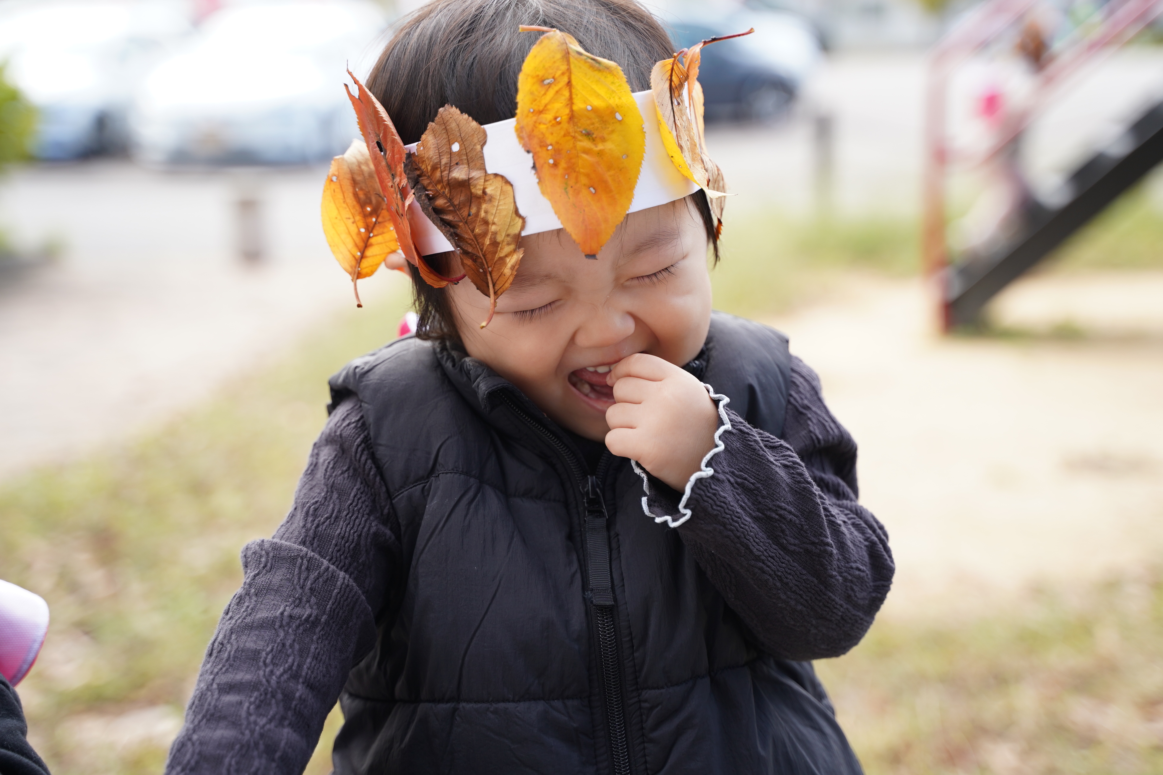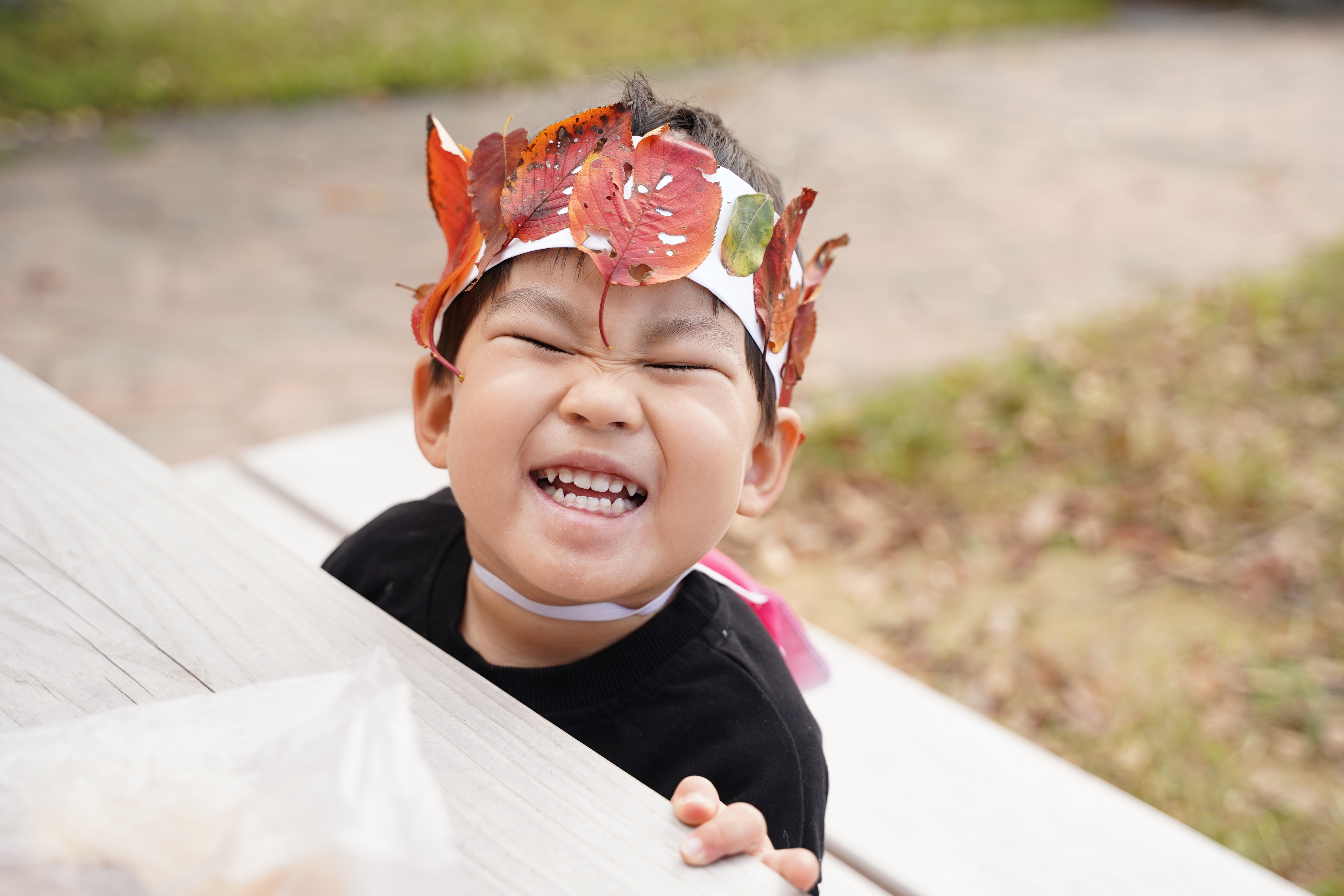 今日は公園に行き、葉っぱの冠を作りました〜🍁