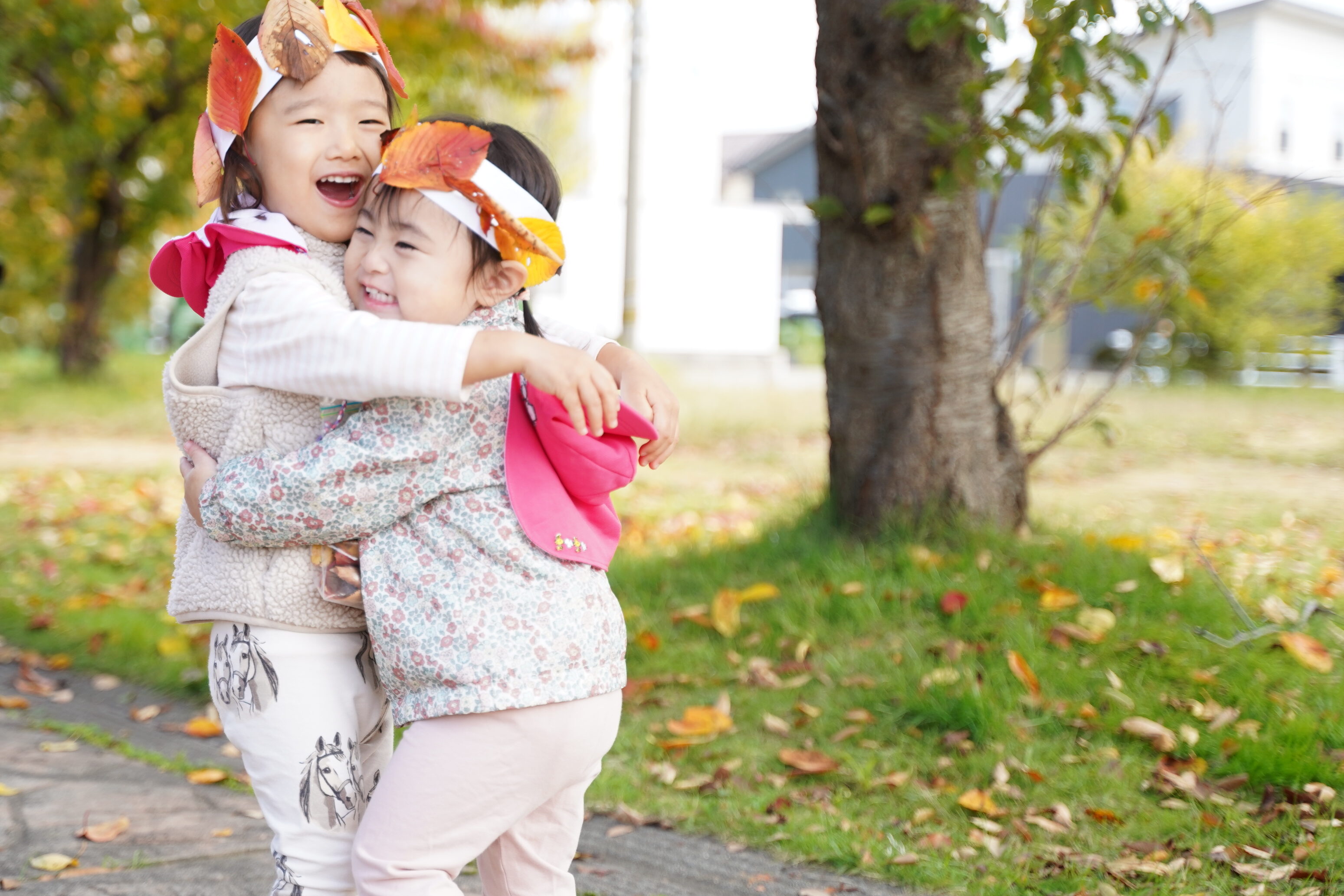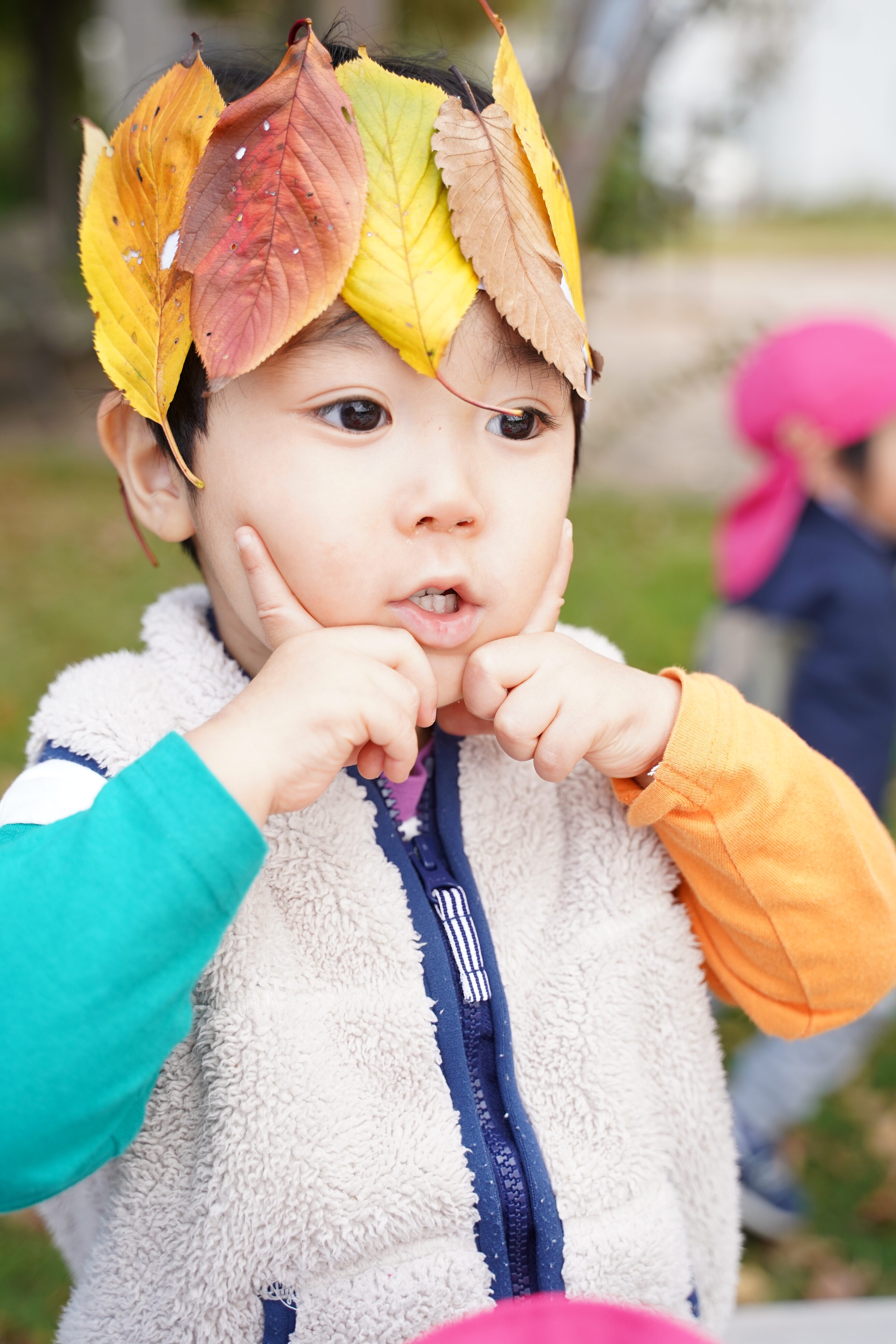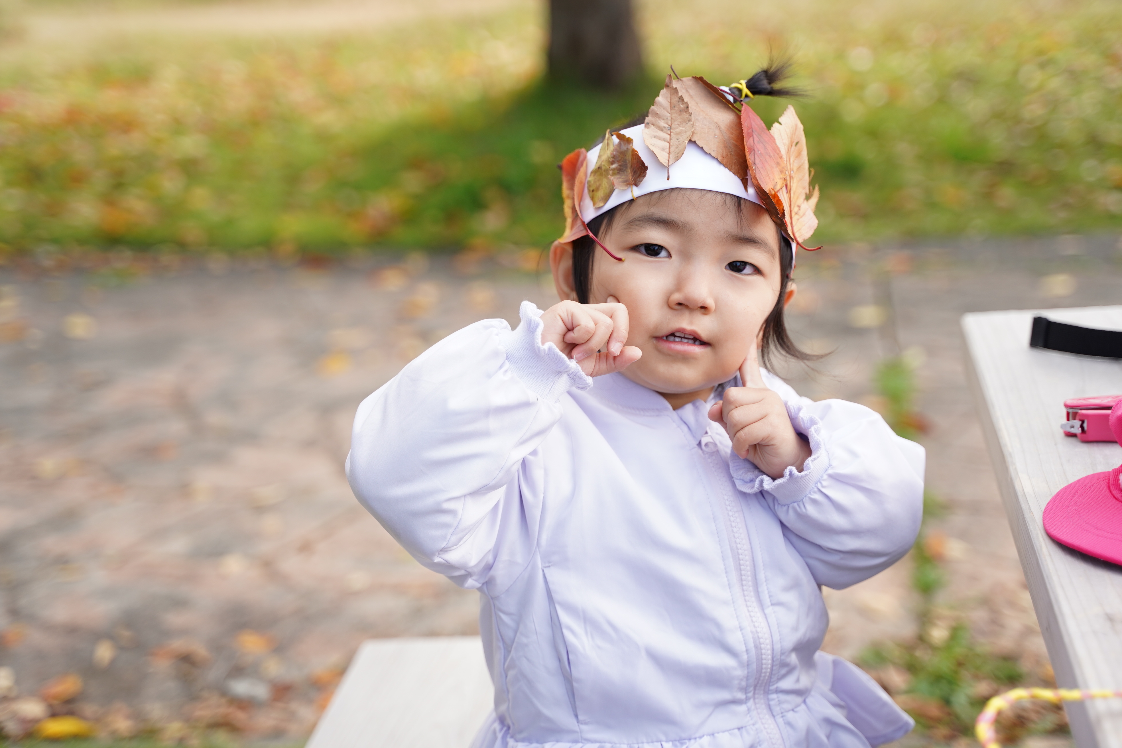 今日は公園に行き、葉っぱの冠を作りました〜🍁
