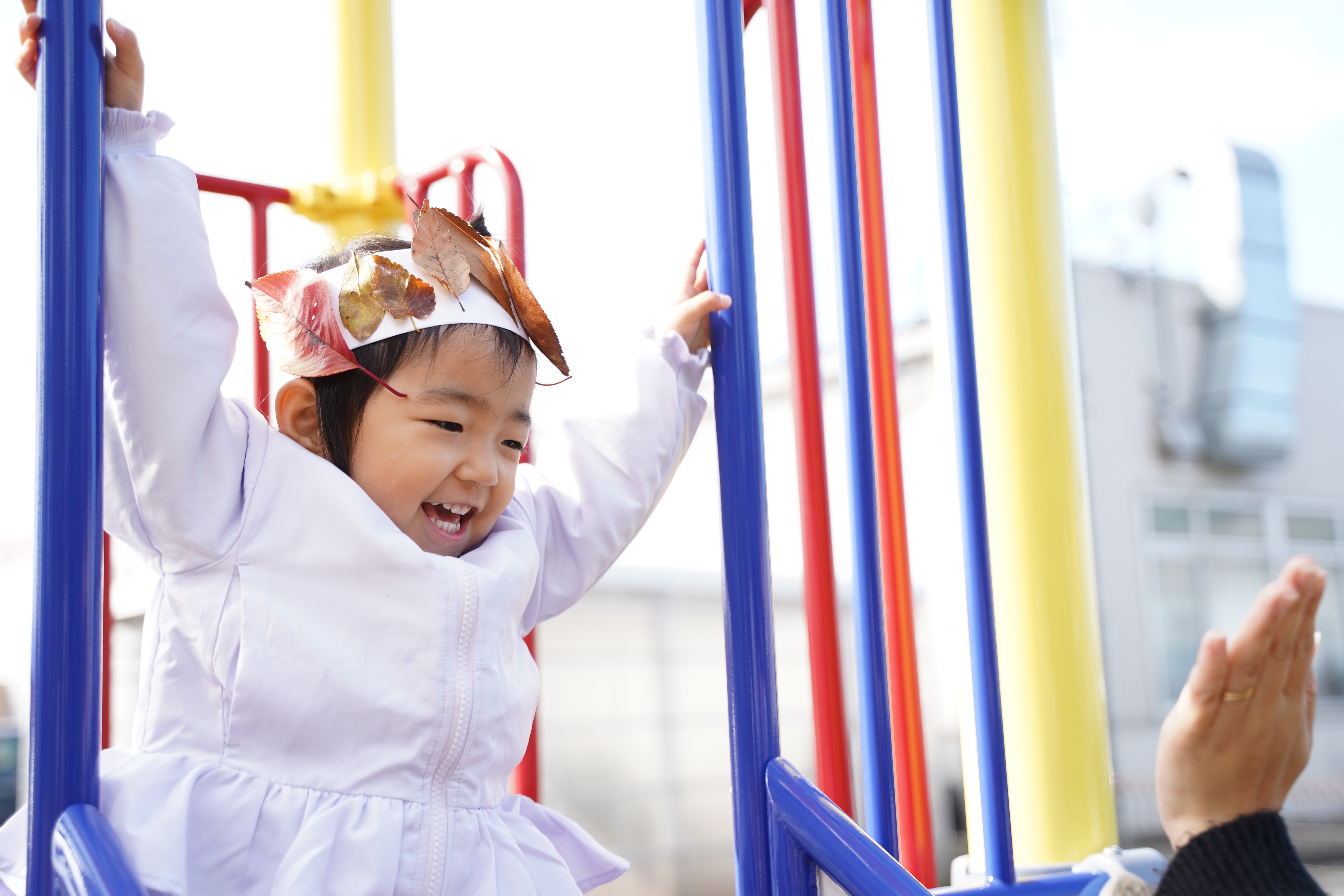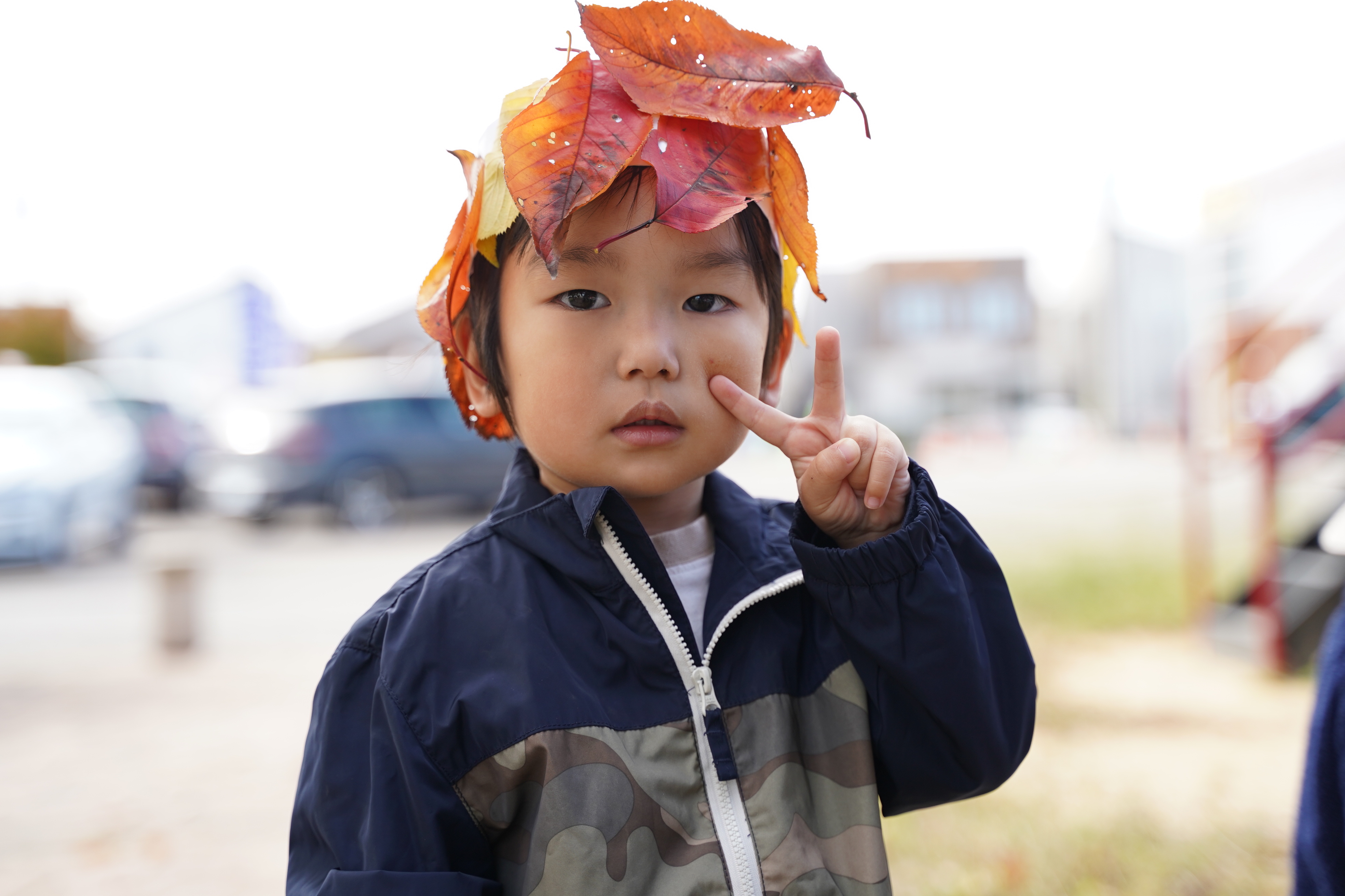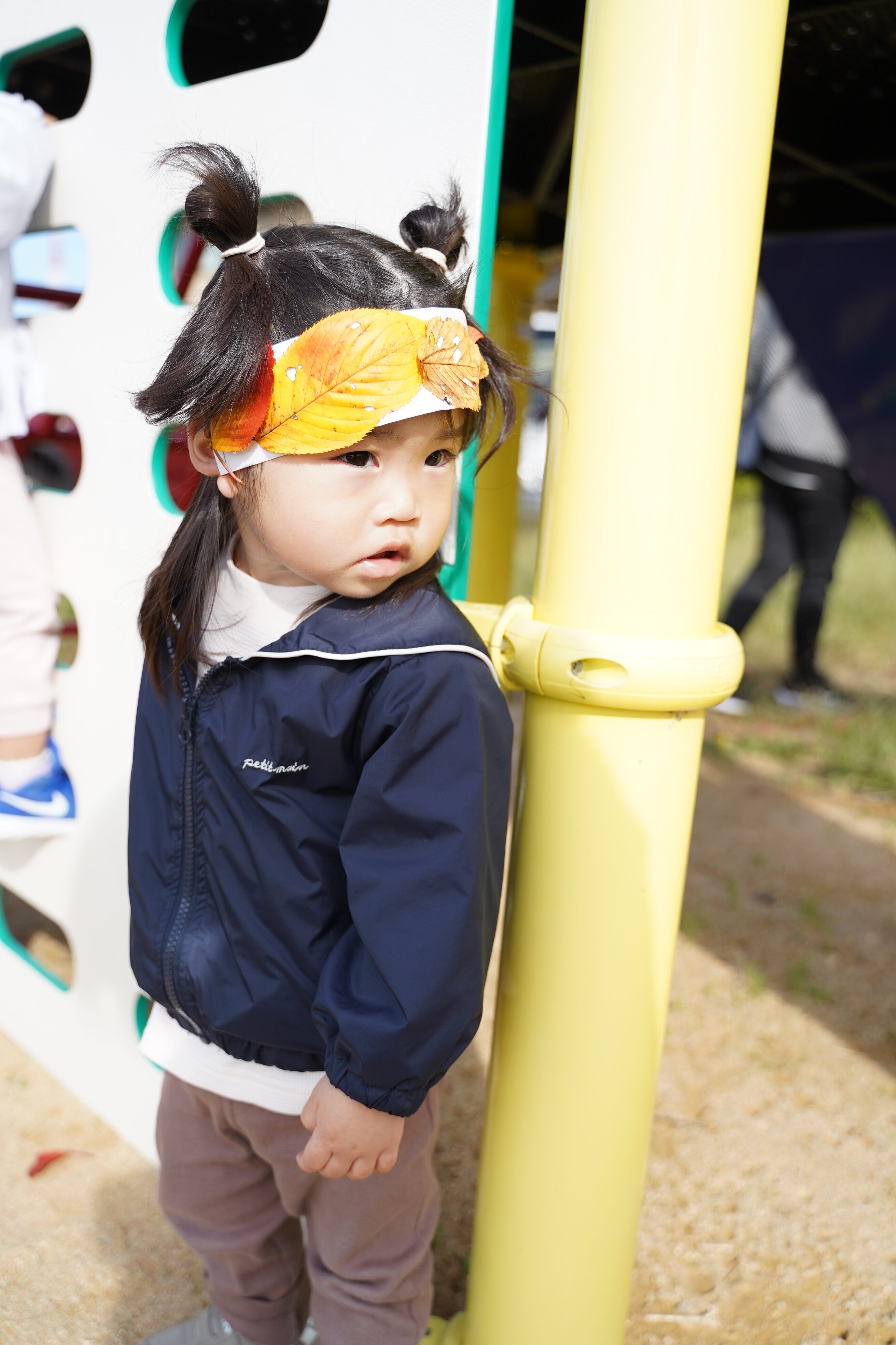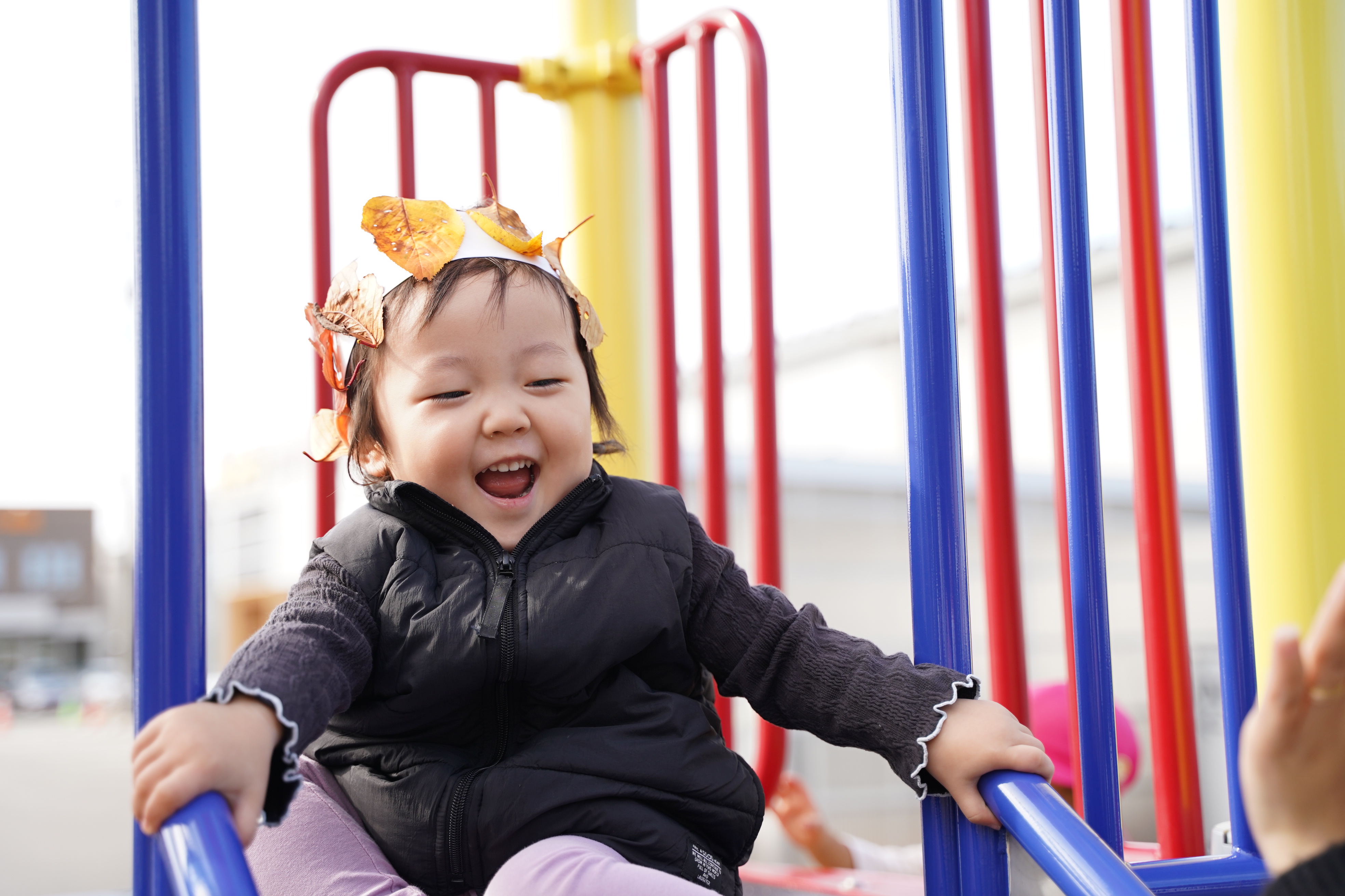 今日は公園に行き、葉っぱの冠を作りました〜🍁