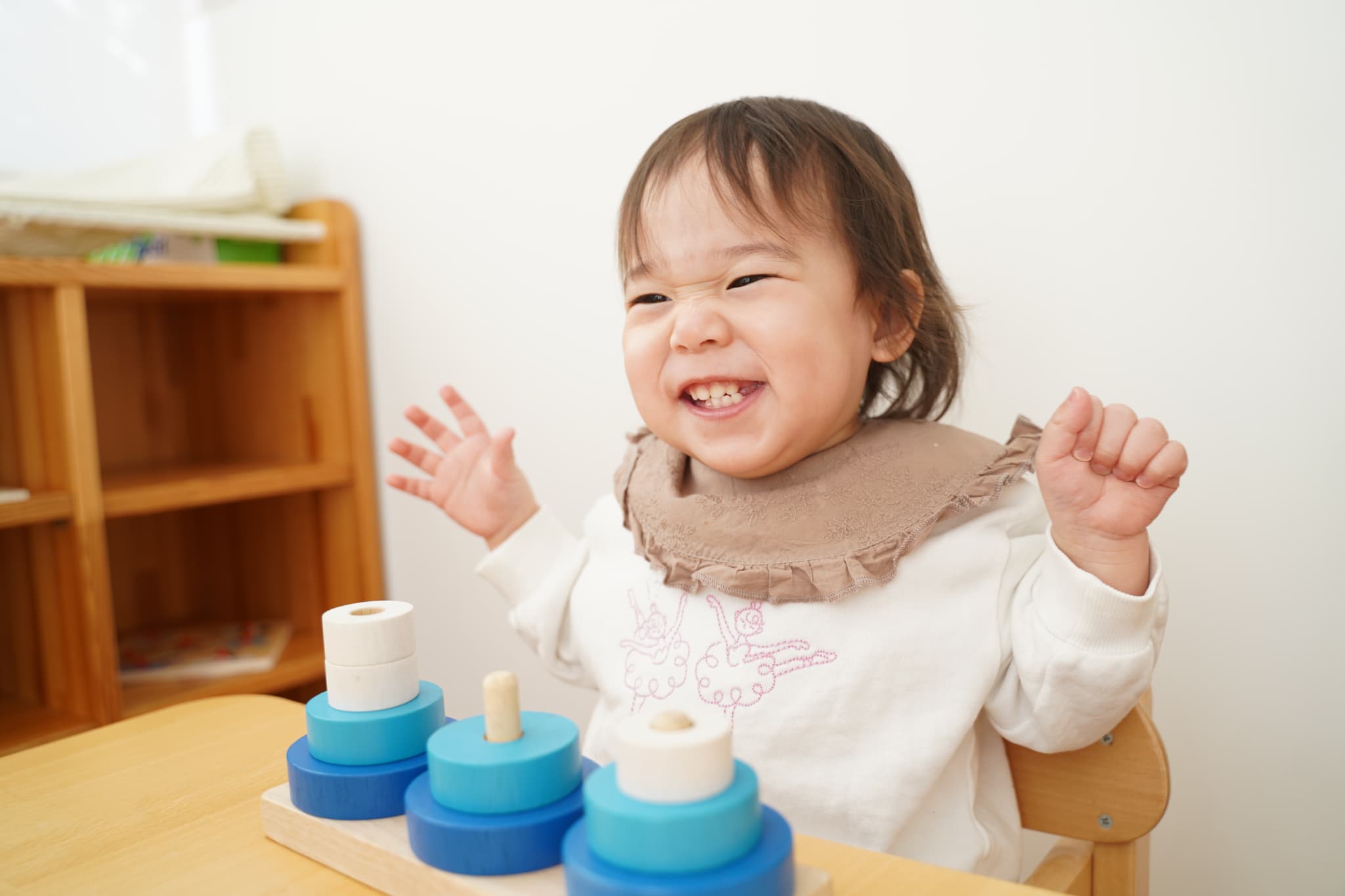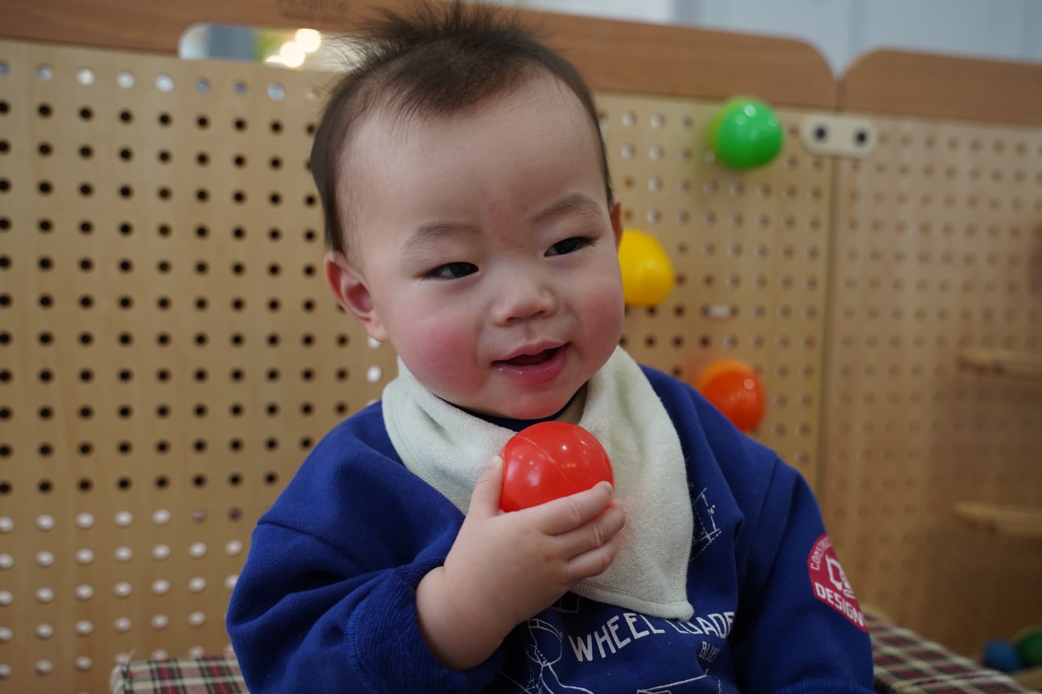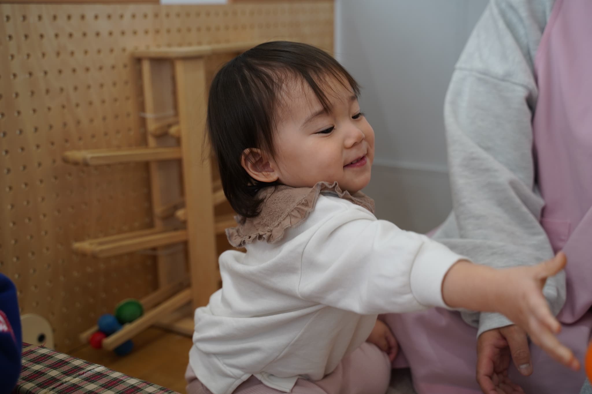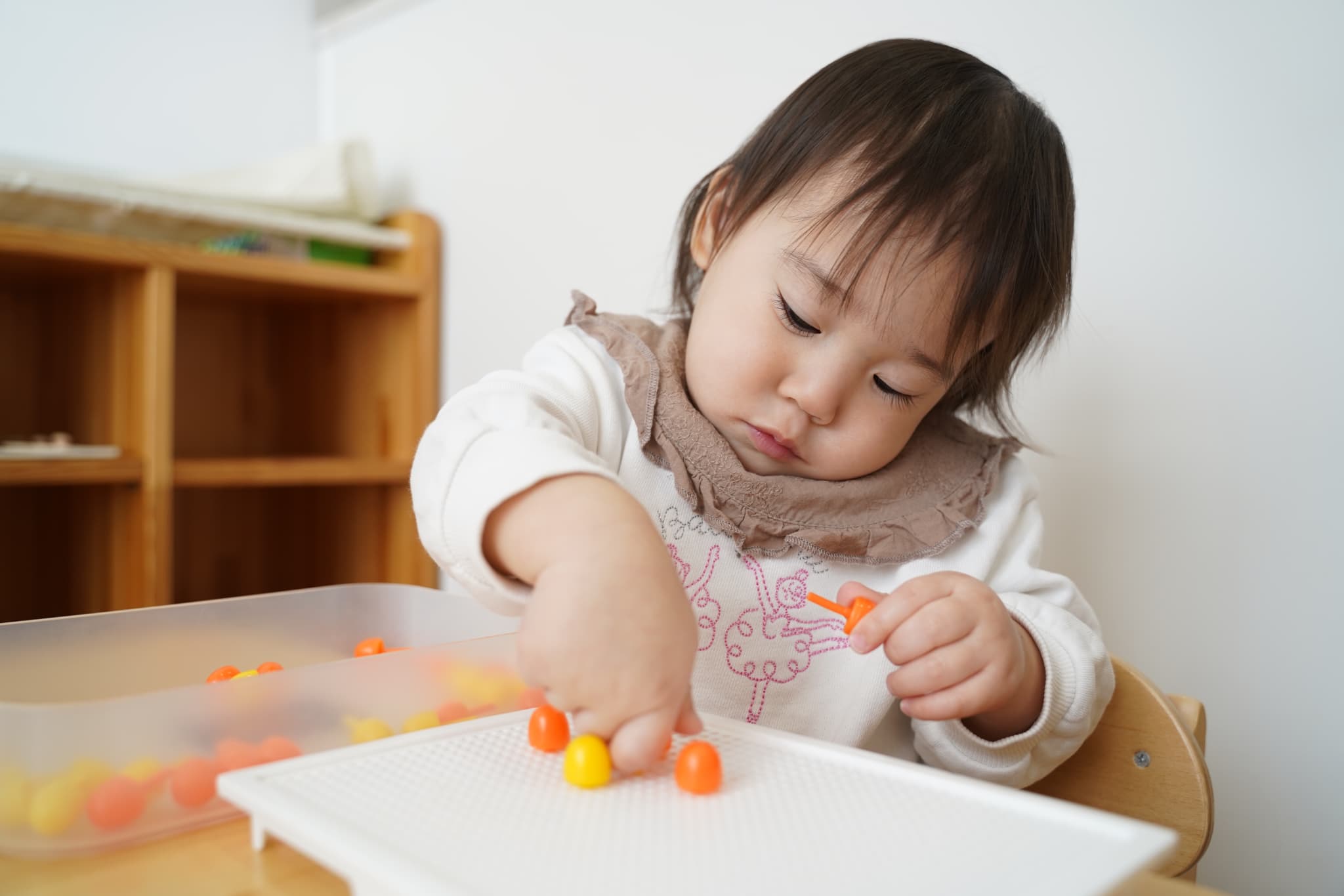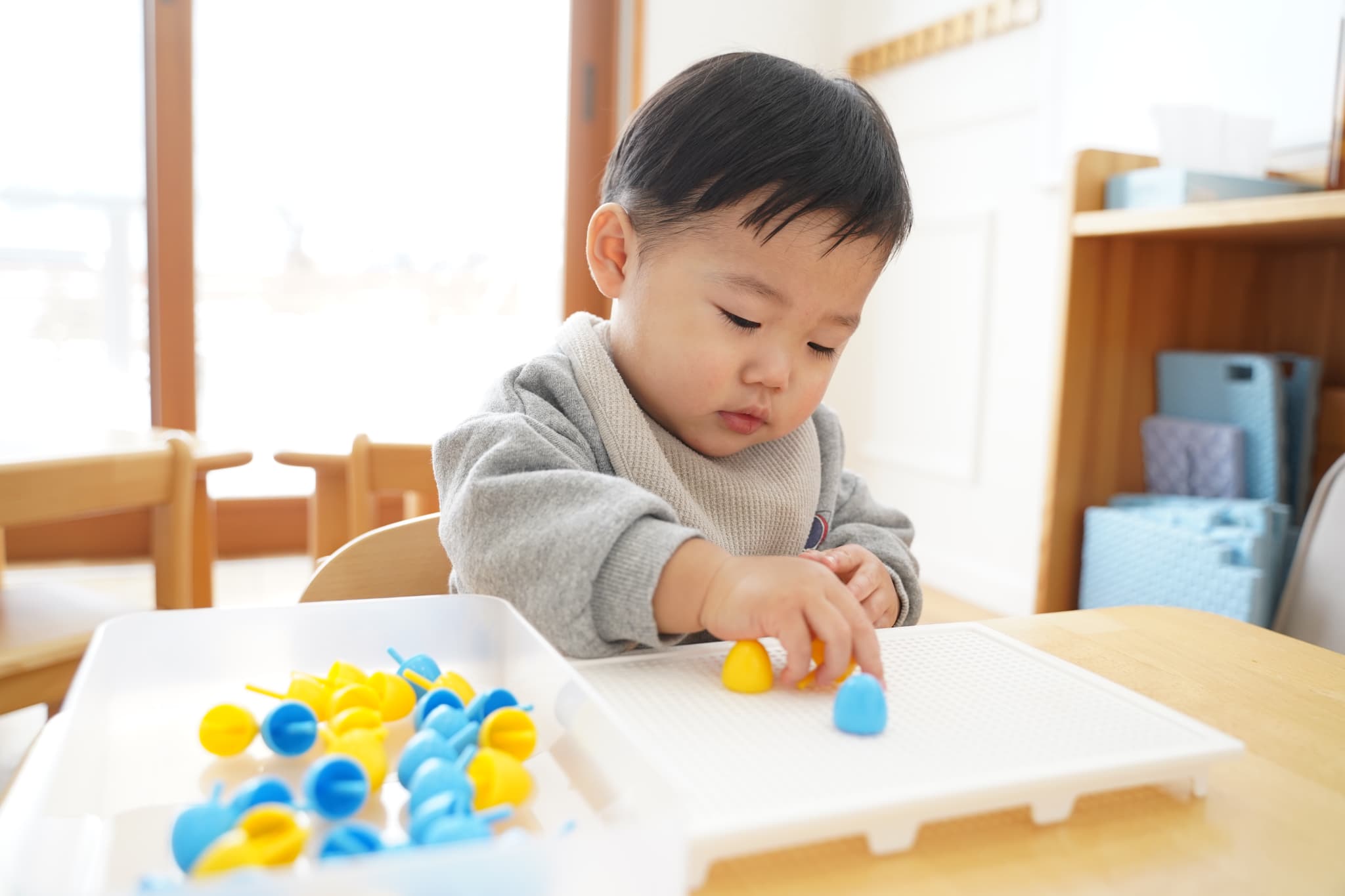 つまんだり穴に差し込んだりと指先が器用になってきたなと成長も感じる場面でした🌱