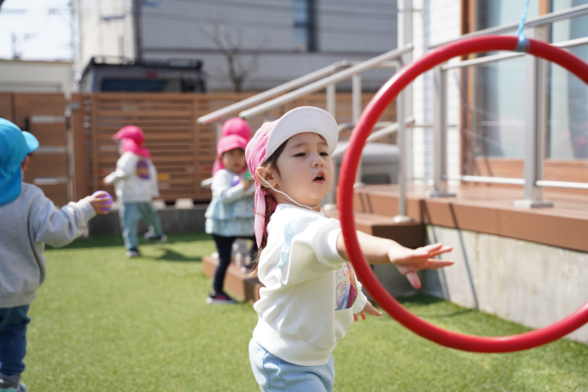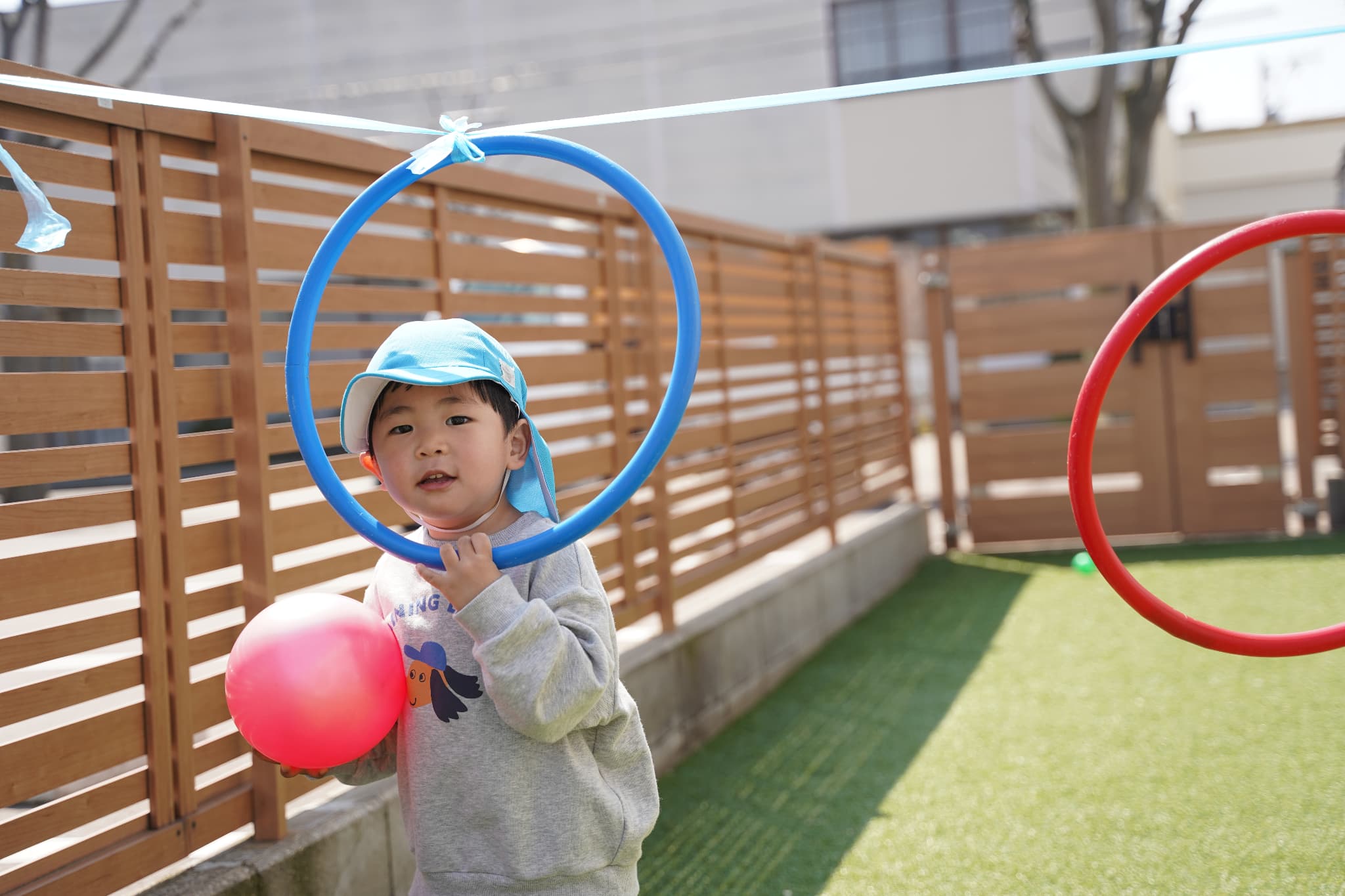 暑いくらいのいいお天気で、ボールやフープで汗だくになりながらたっぷり遊びました!