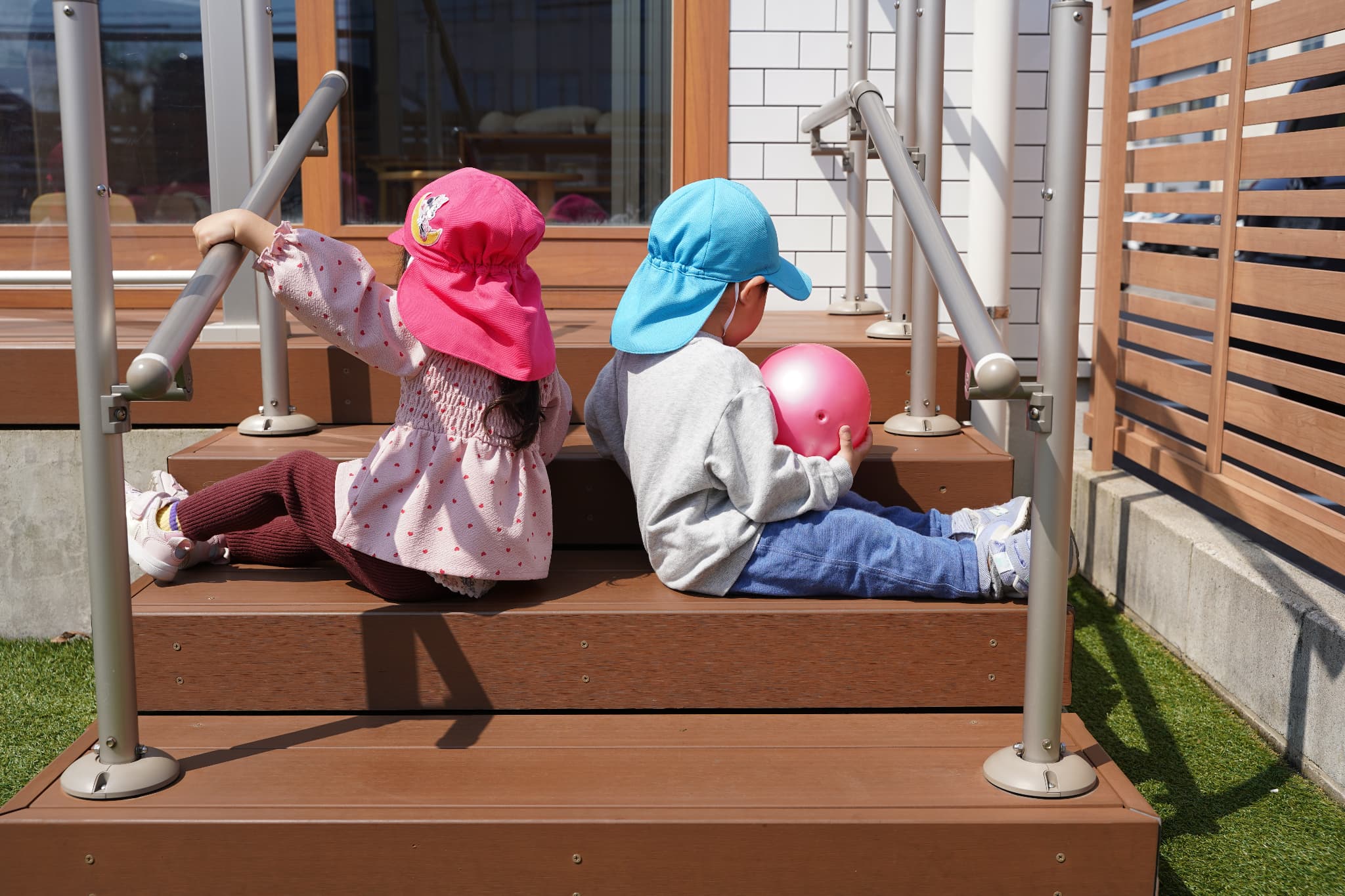 みんなで楽しく遊んでいたら、突然テラスにキリギリスが!キリギリスさんも混ぜて欲しかったかな!?