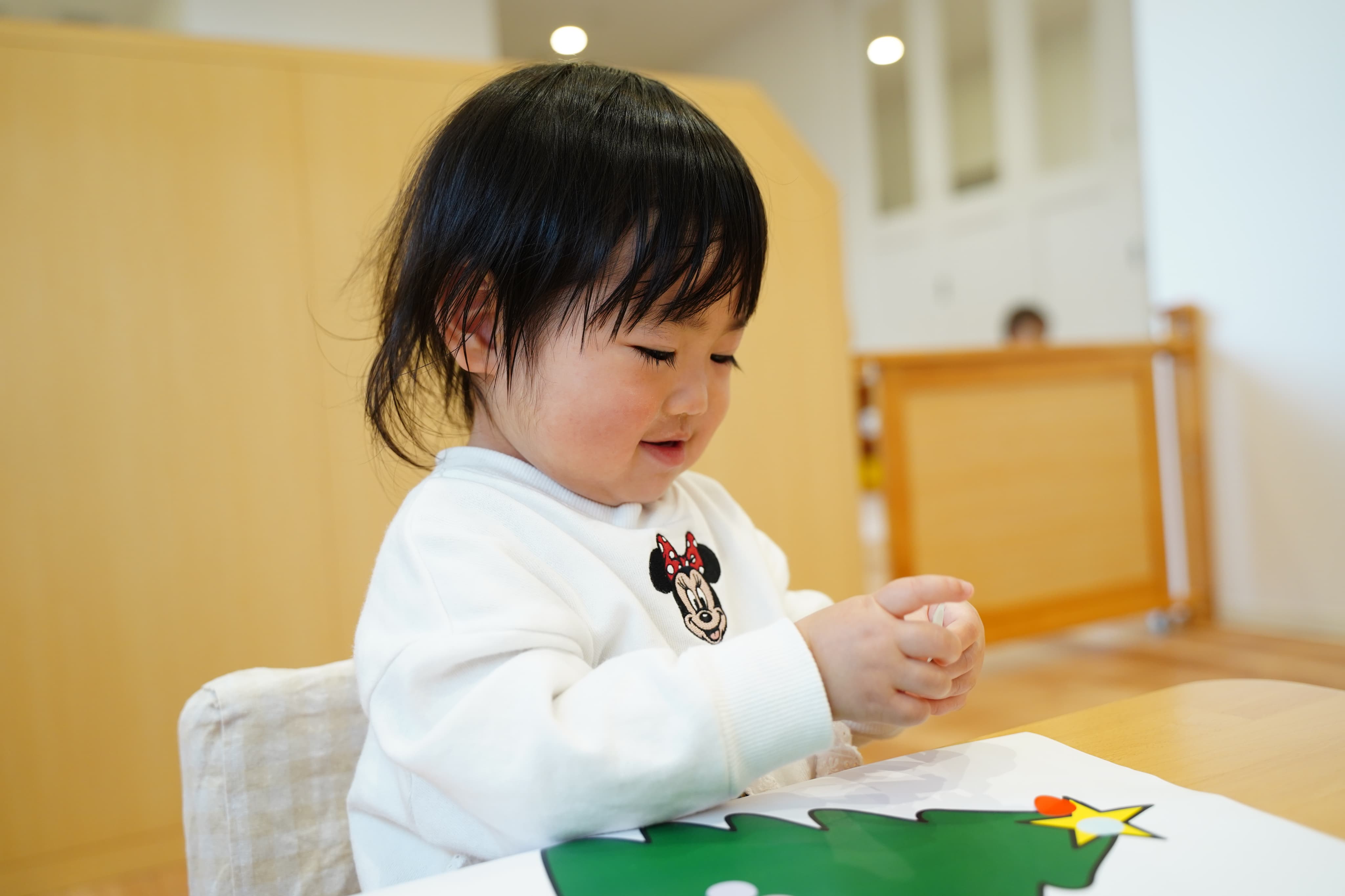 クリスマスツリーが玄関に登場したり、お部屋にサンタやトナカイの飾りを貼ってみたり、クリスマスツリーの絵にシール貼りをしてみたりと、少しずつクリスマスの準備が始まりました〜🎄