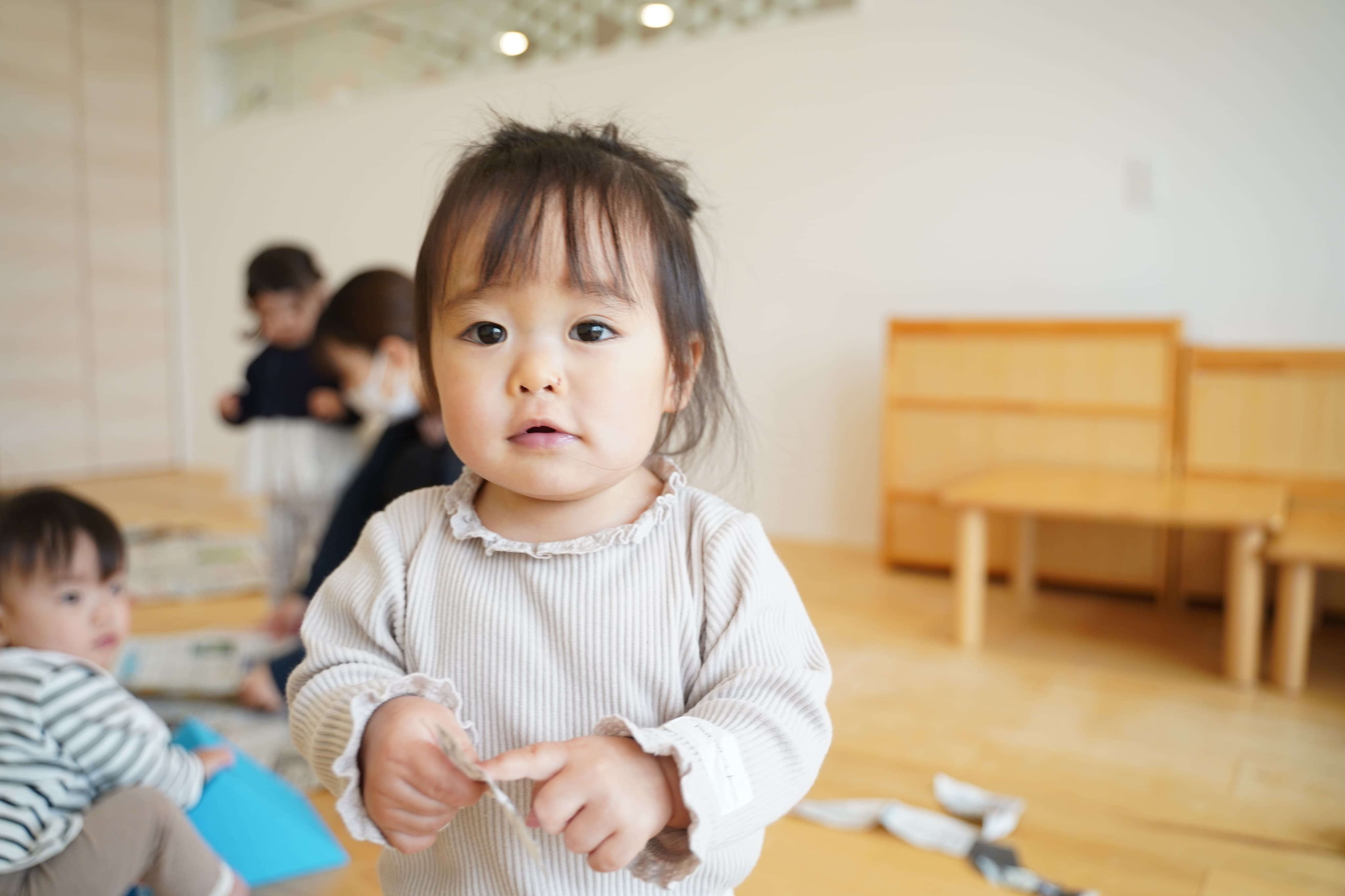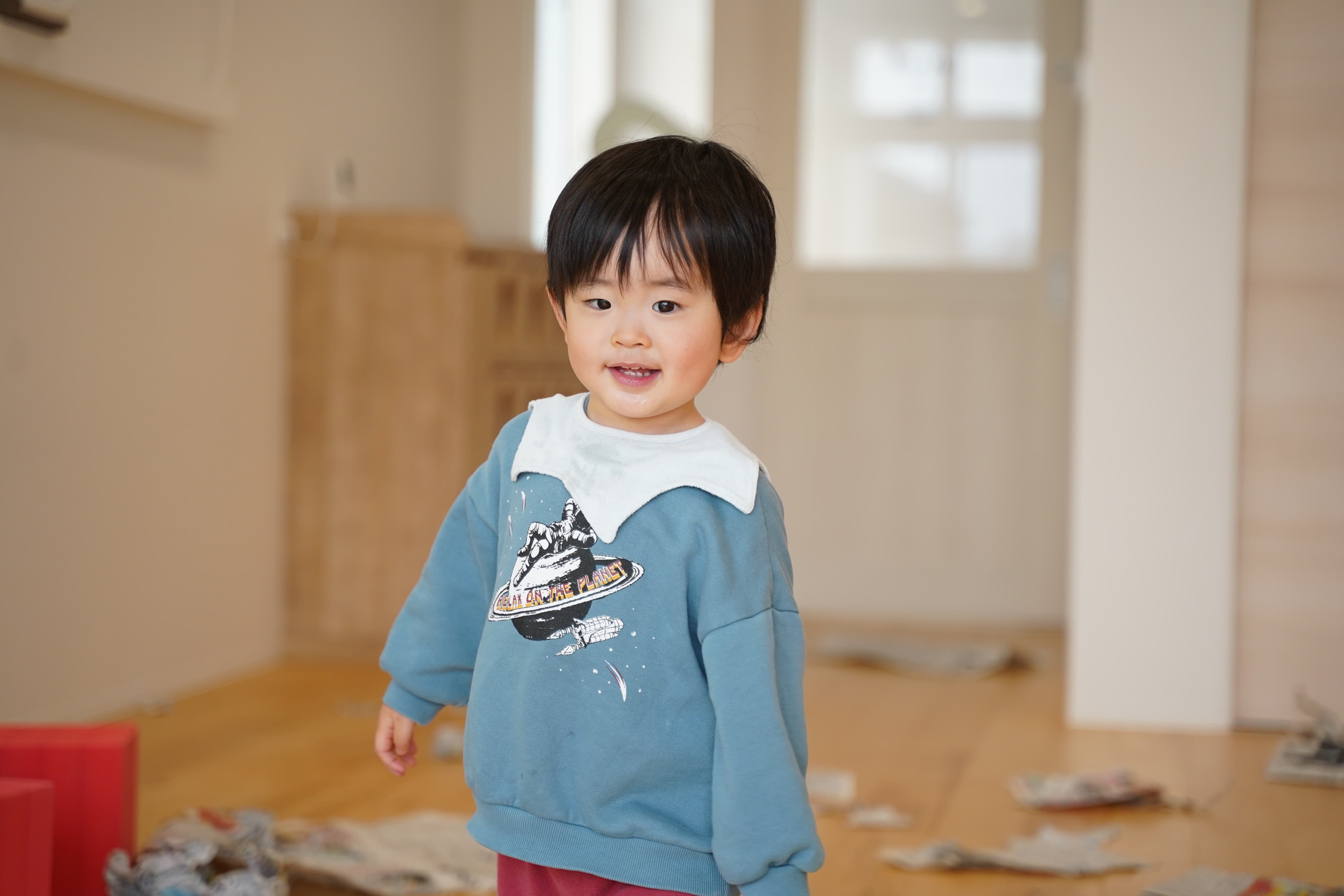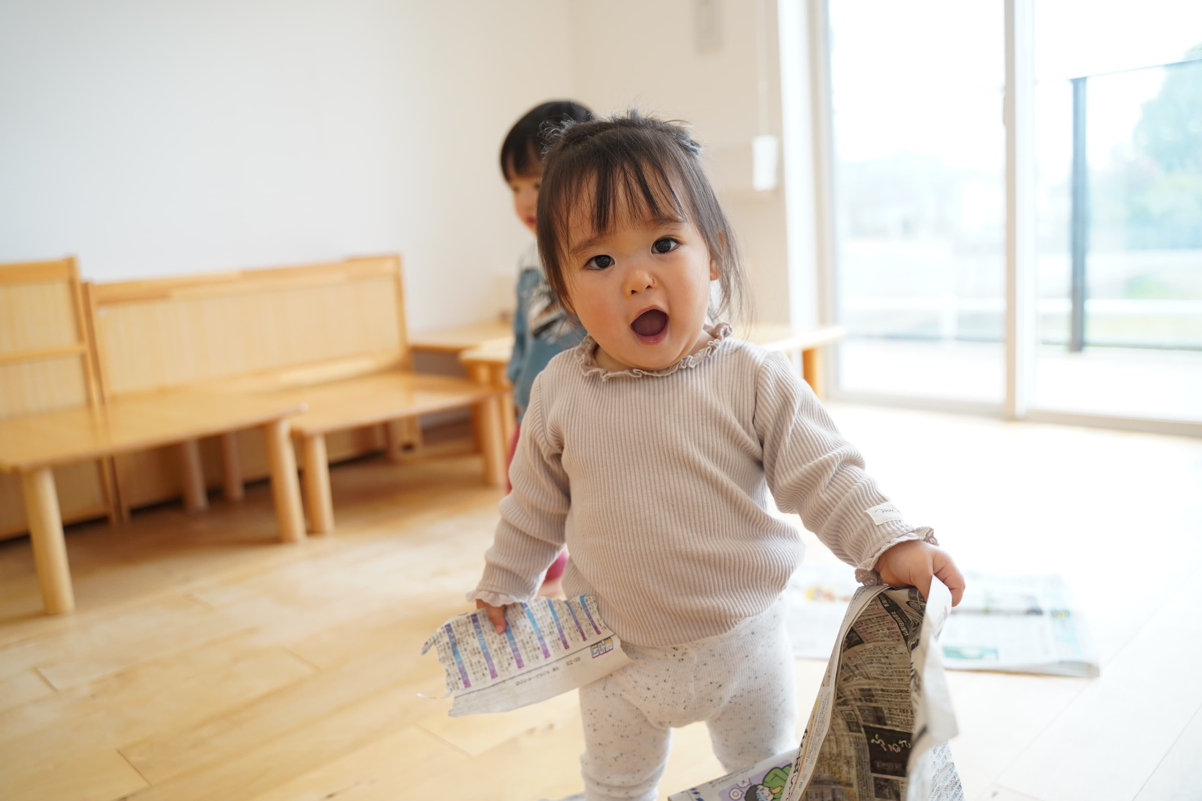 細かくちぎるよりも大胆に大きな新聞紙をちぎる方が楽しいいちご組さんです🙌🏻