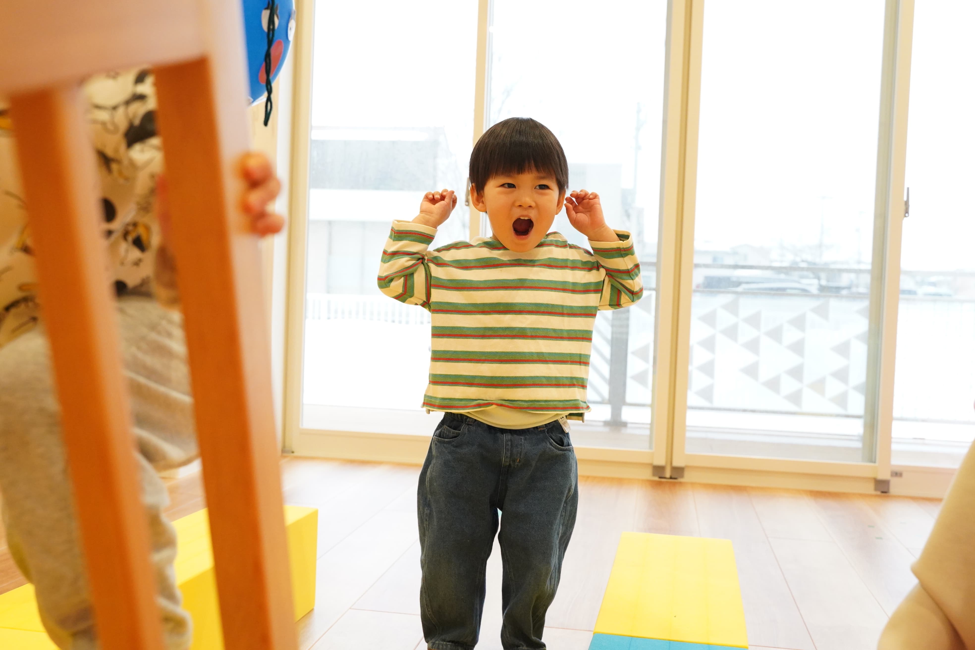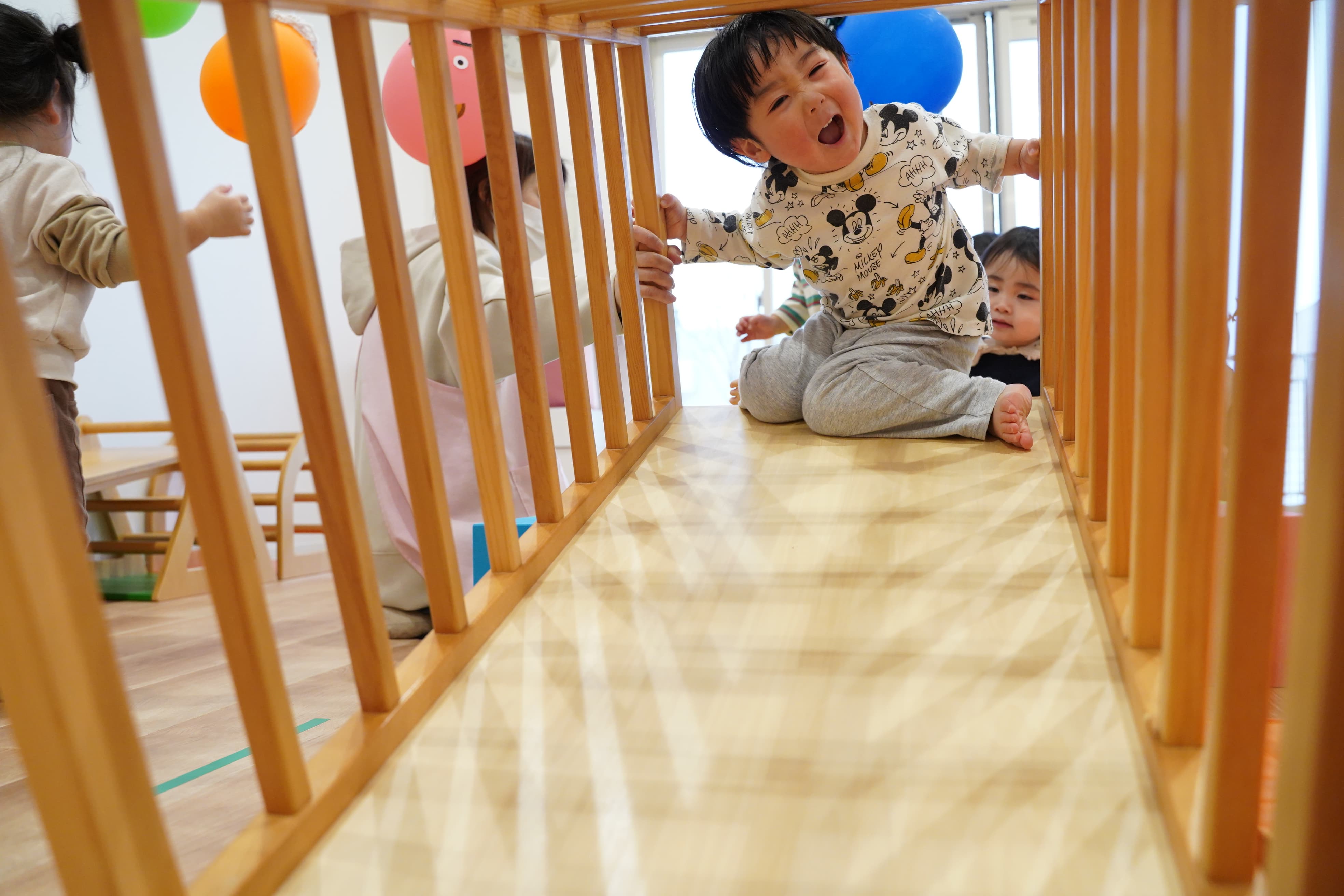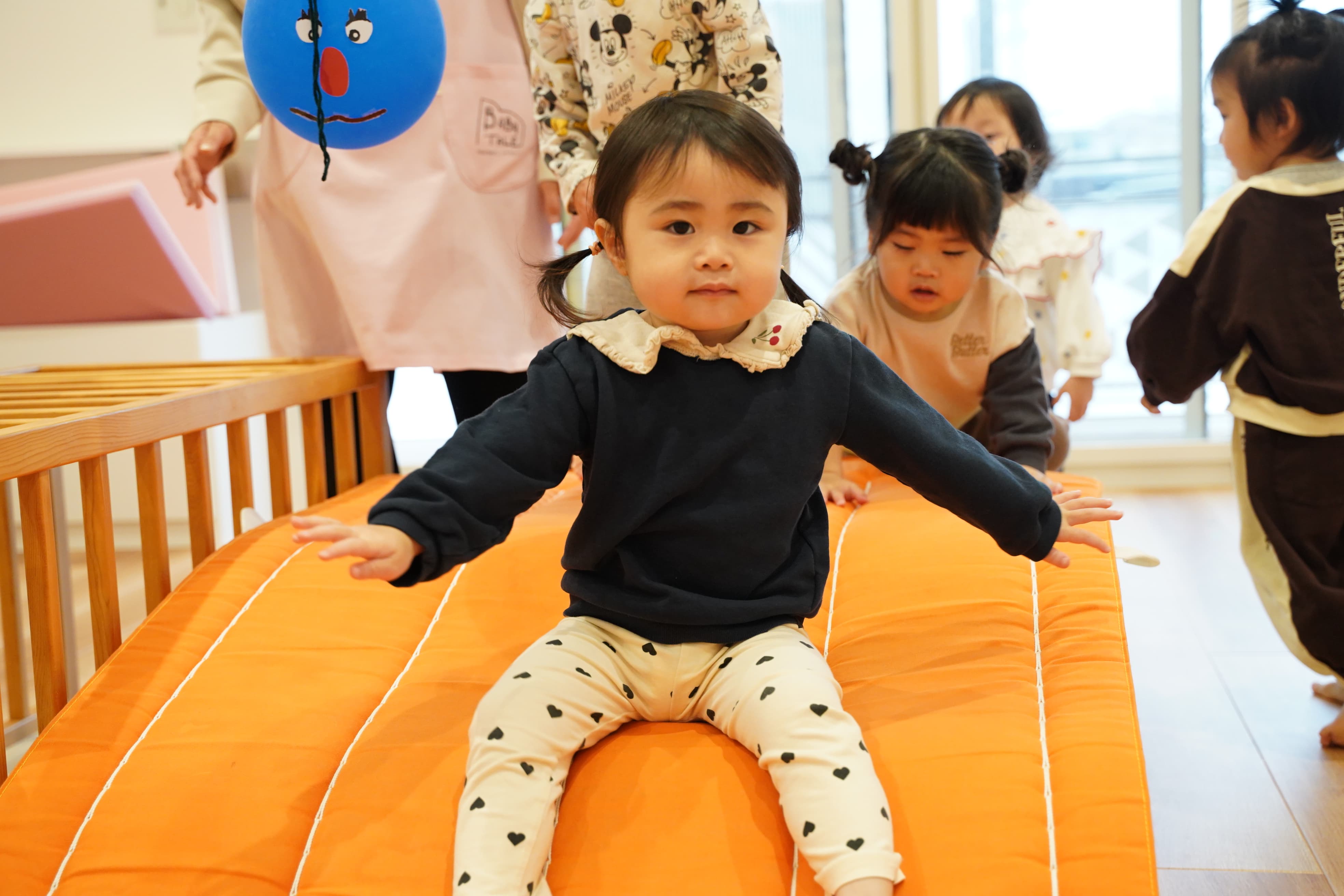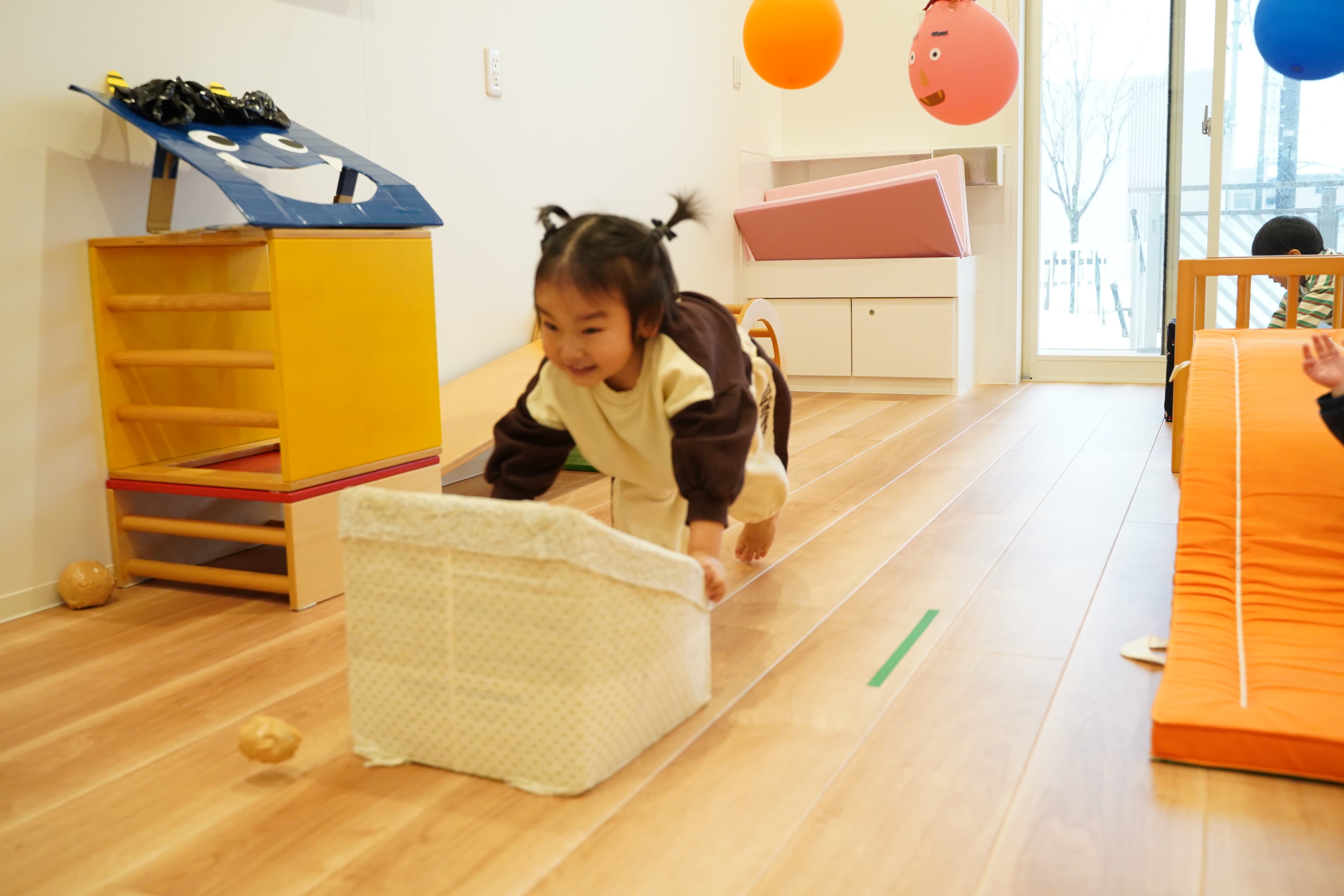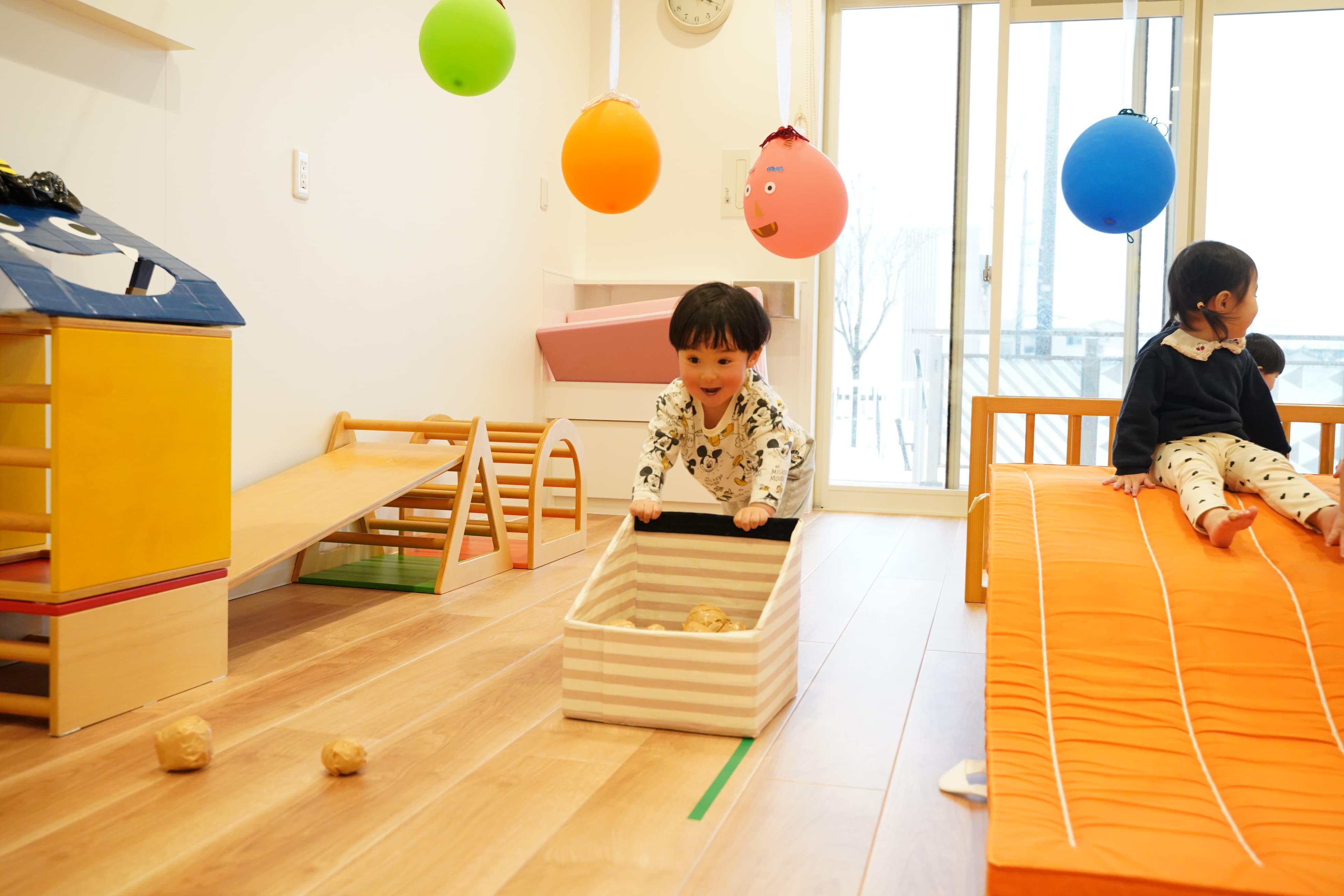 お部屋で遊んでいても体を動かしてウズウズしている様子もあったので今日はみんなでたっぷりとプレイルームで遊びました〜✊‼️