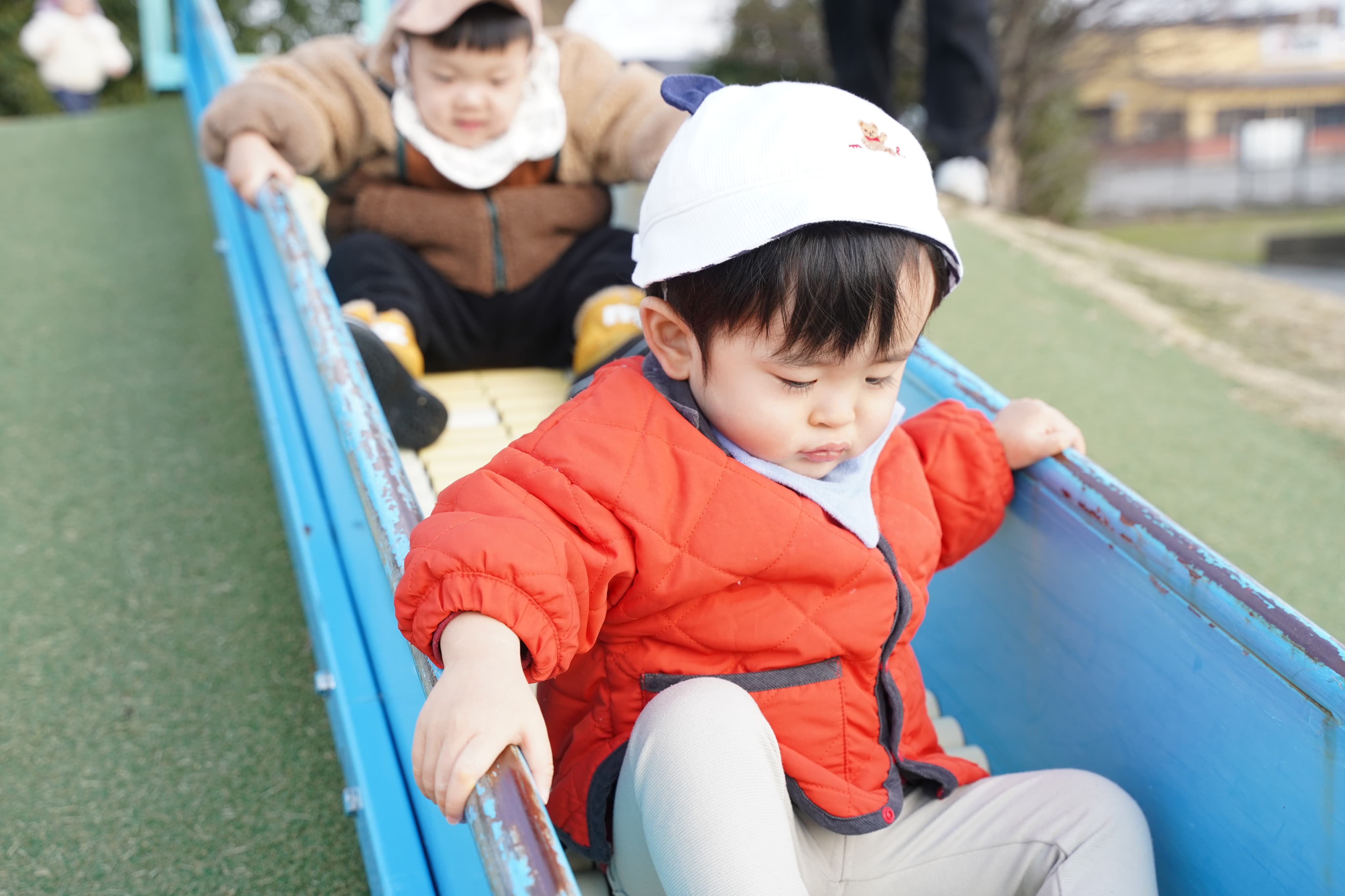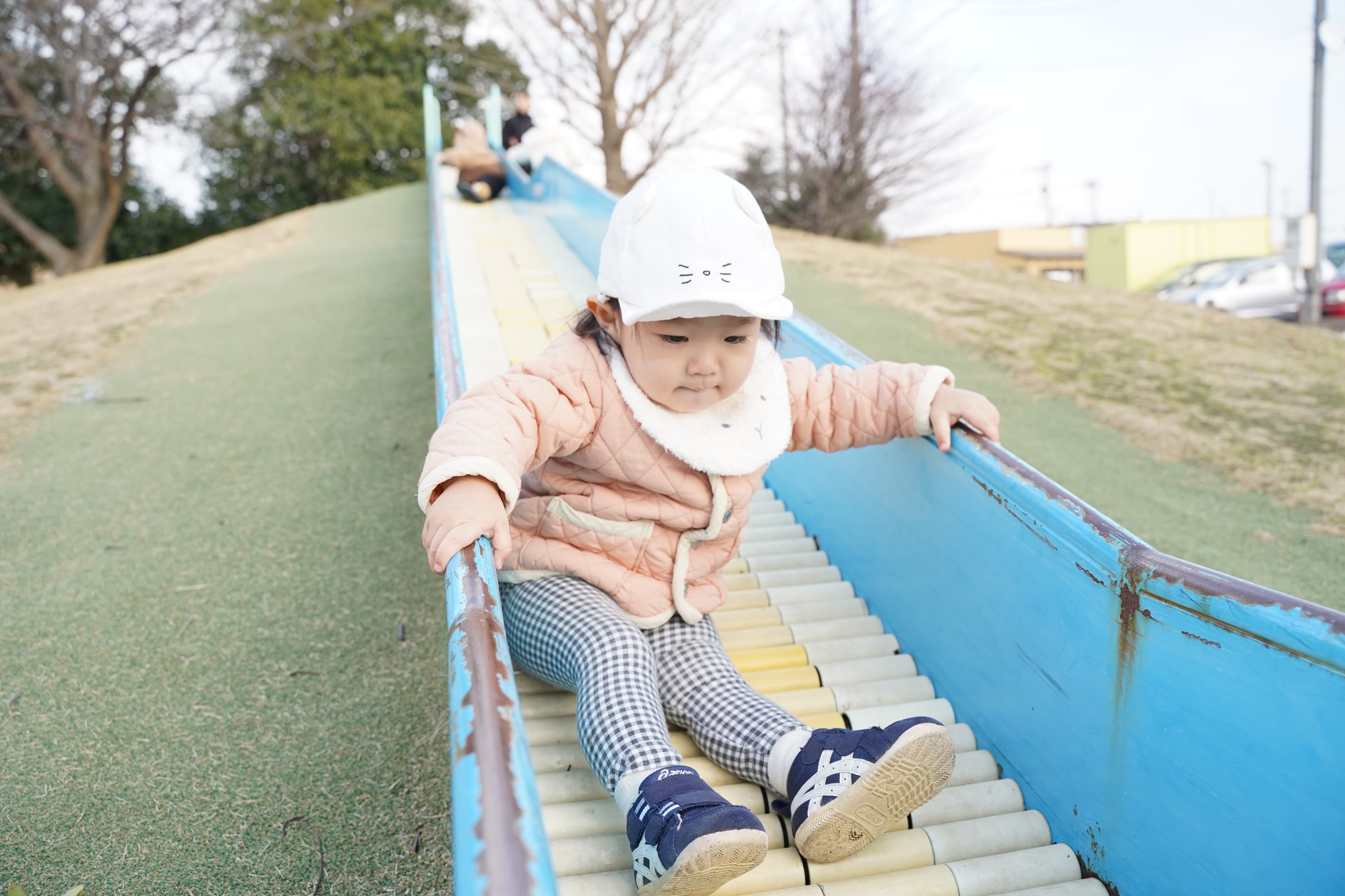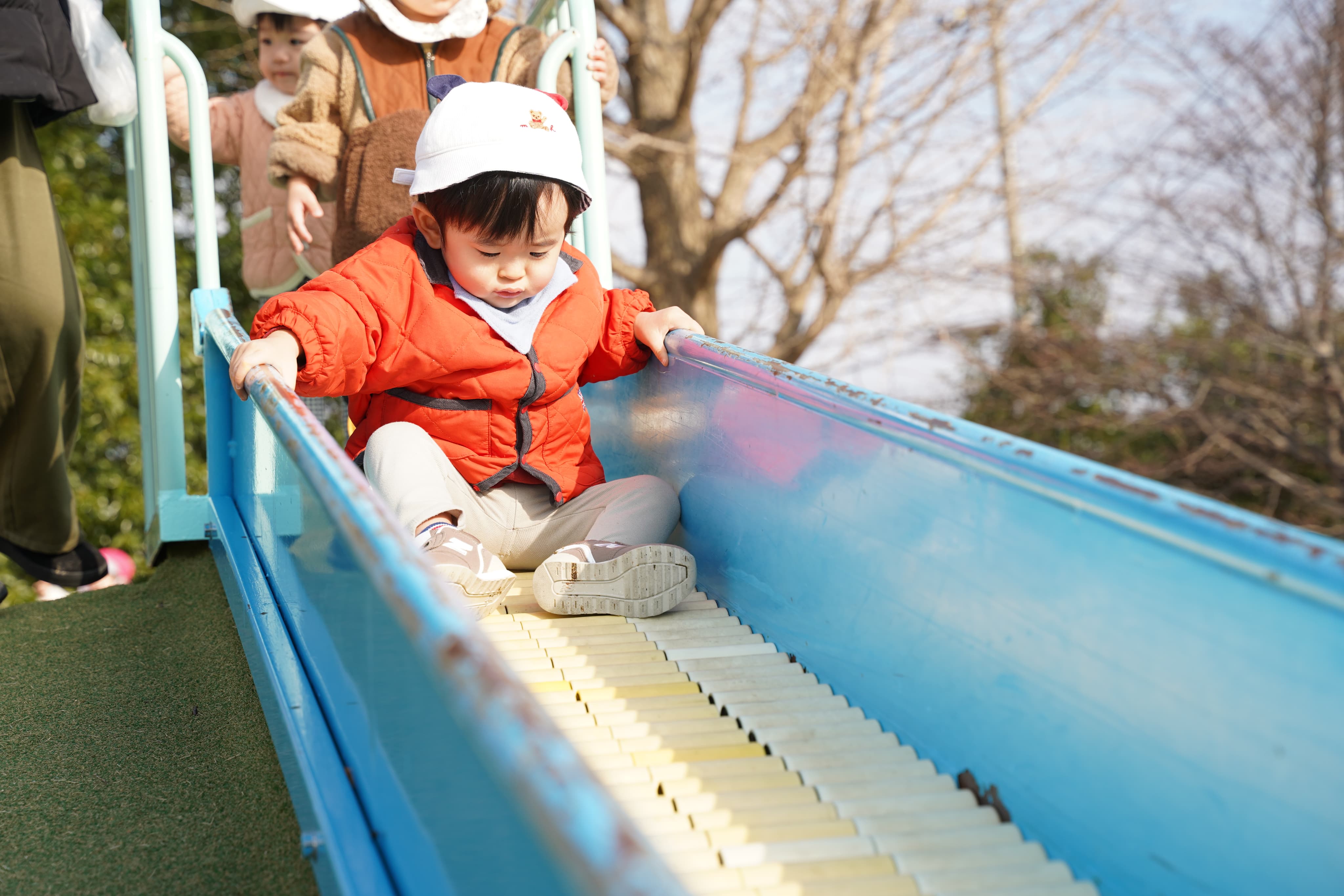 お友達の後ろに並んで、順番に滑っていきます!🛝