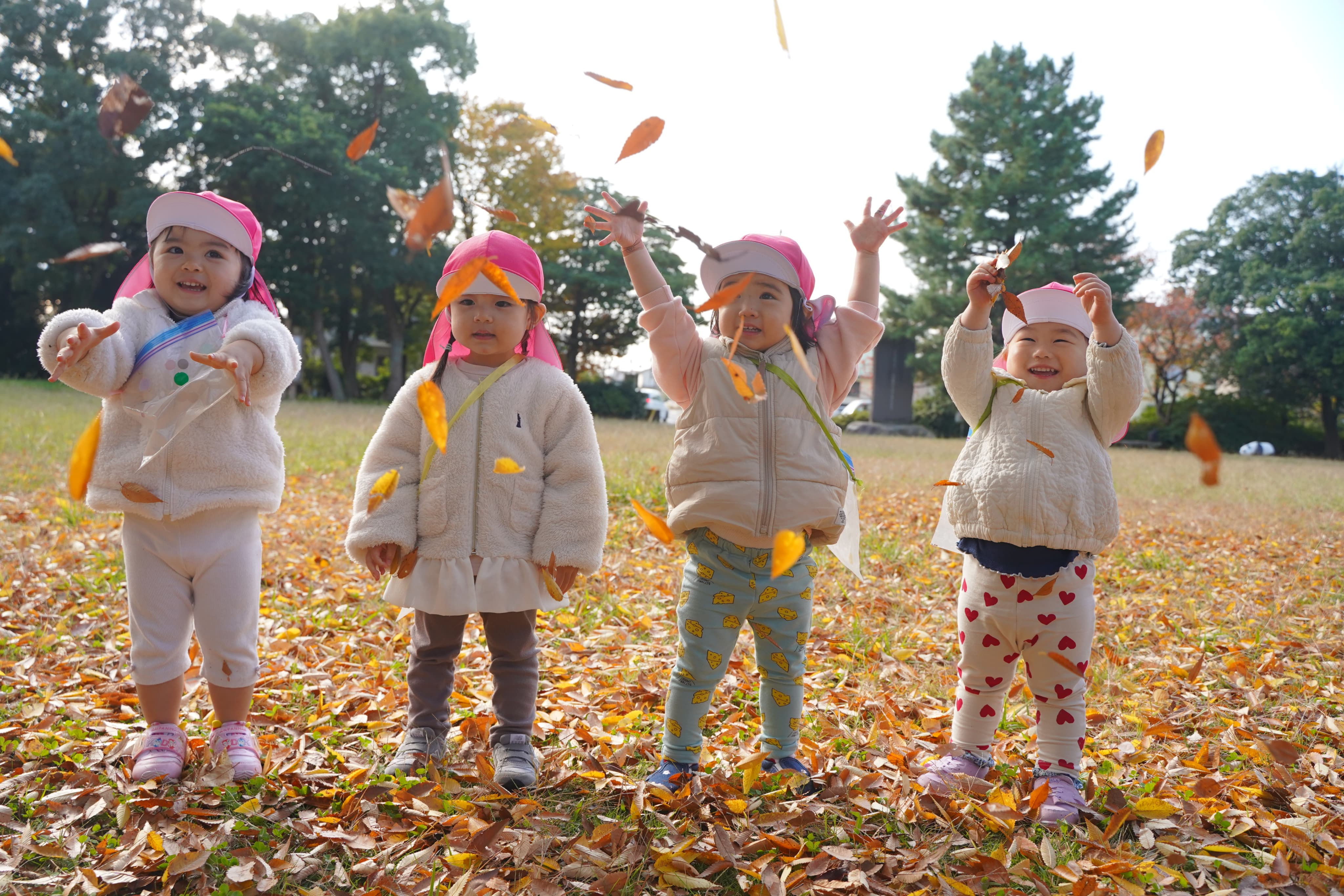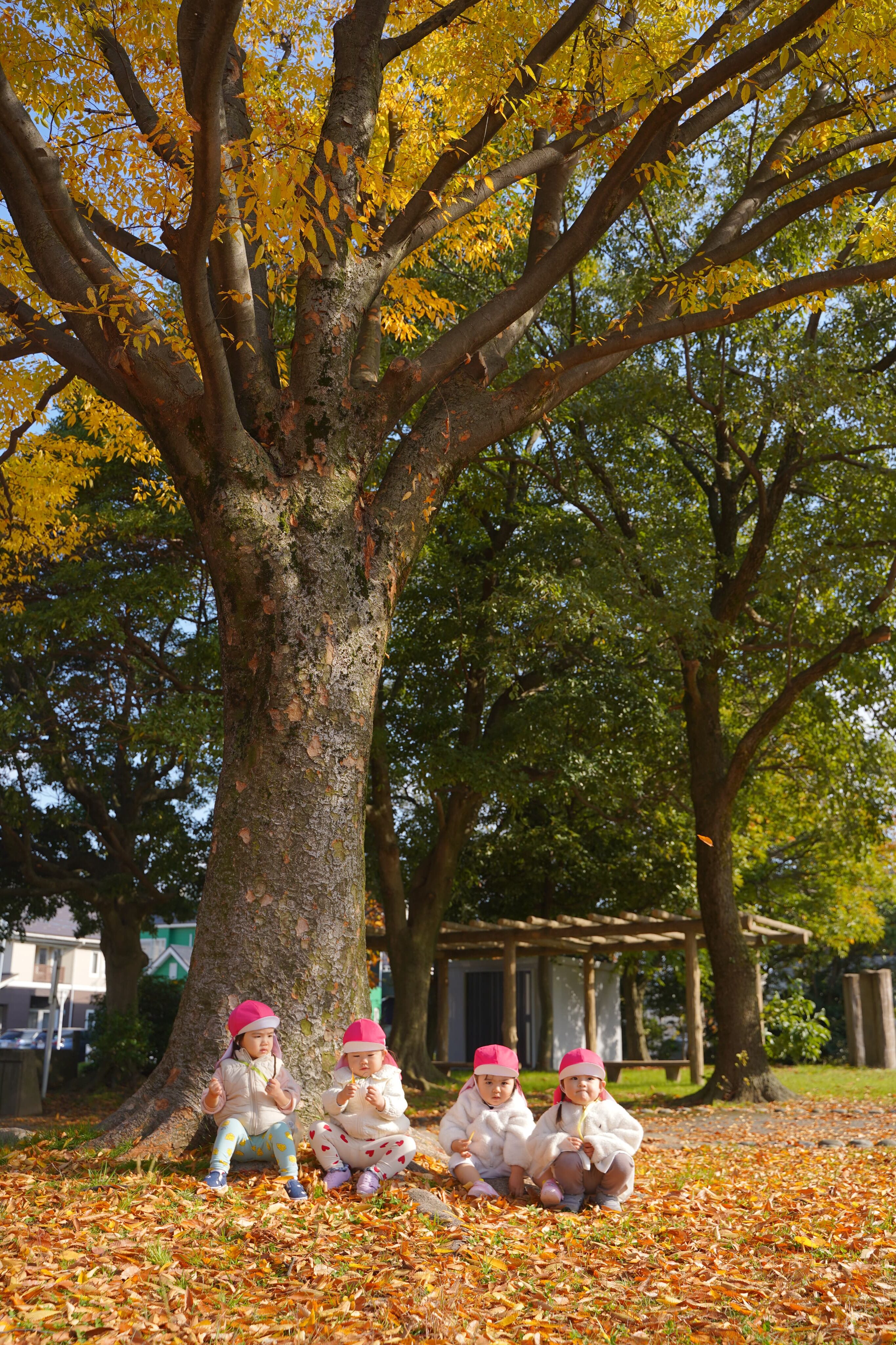 落ち葉が本当に綺麗でみんなで「せーのっ!」と言って落ち葉シャワー🍂
