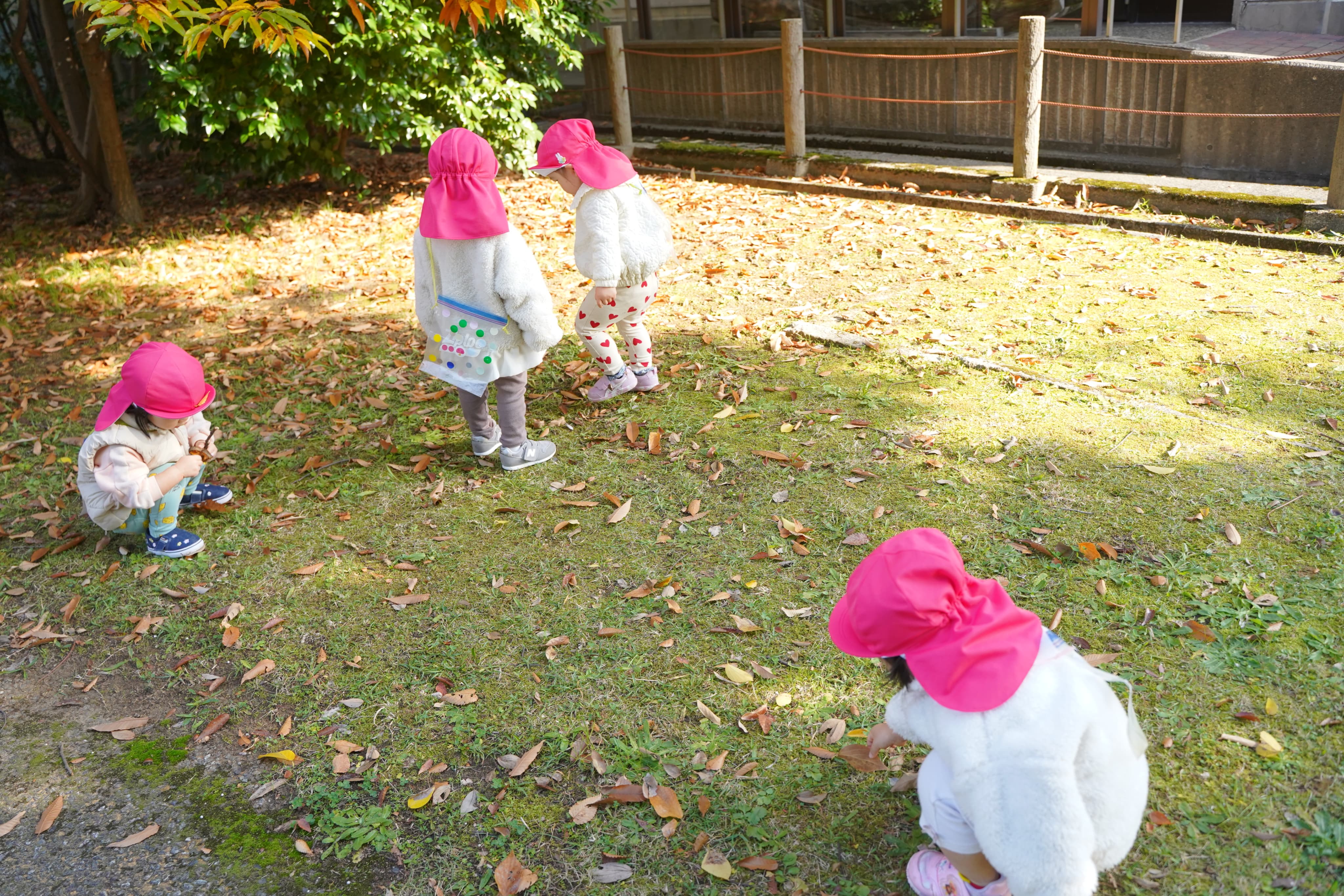 落ち葉の絨毯が綺麗でみんな手にとっています☺️
