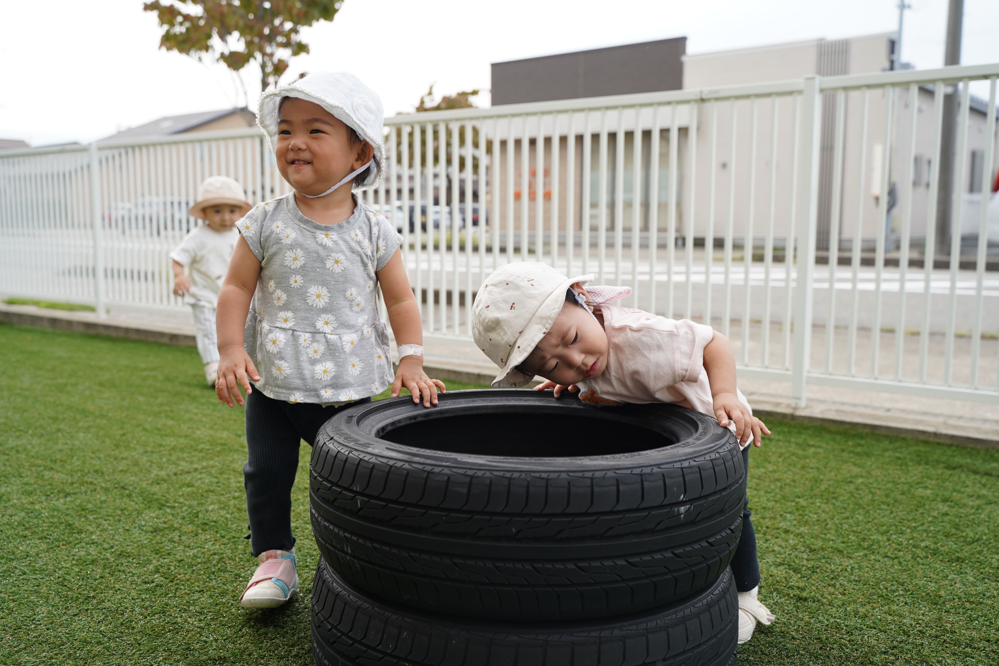 テラスで機嫌よく遊んで笑顔いっぱいのみんな😊まさか数分後、こんなことになろうとは・・・💦