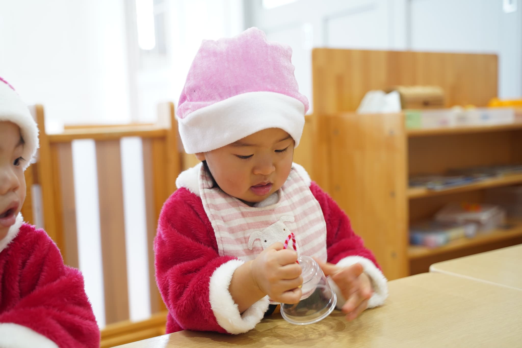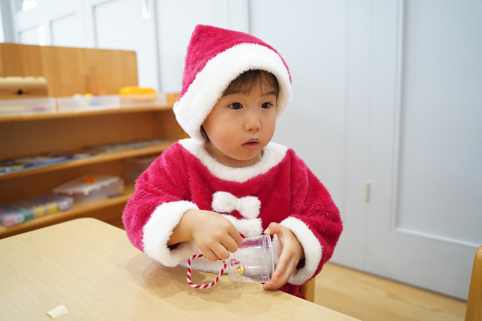今日は、カップで作った手作りの鈴にクリスマスのシールを貼って飾り付けしました🎅🛎️