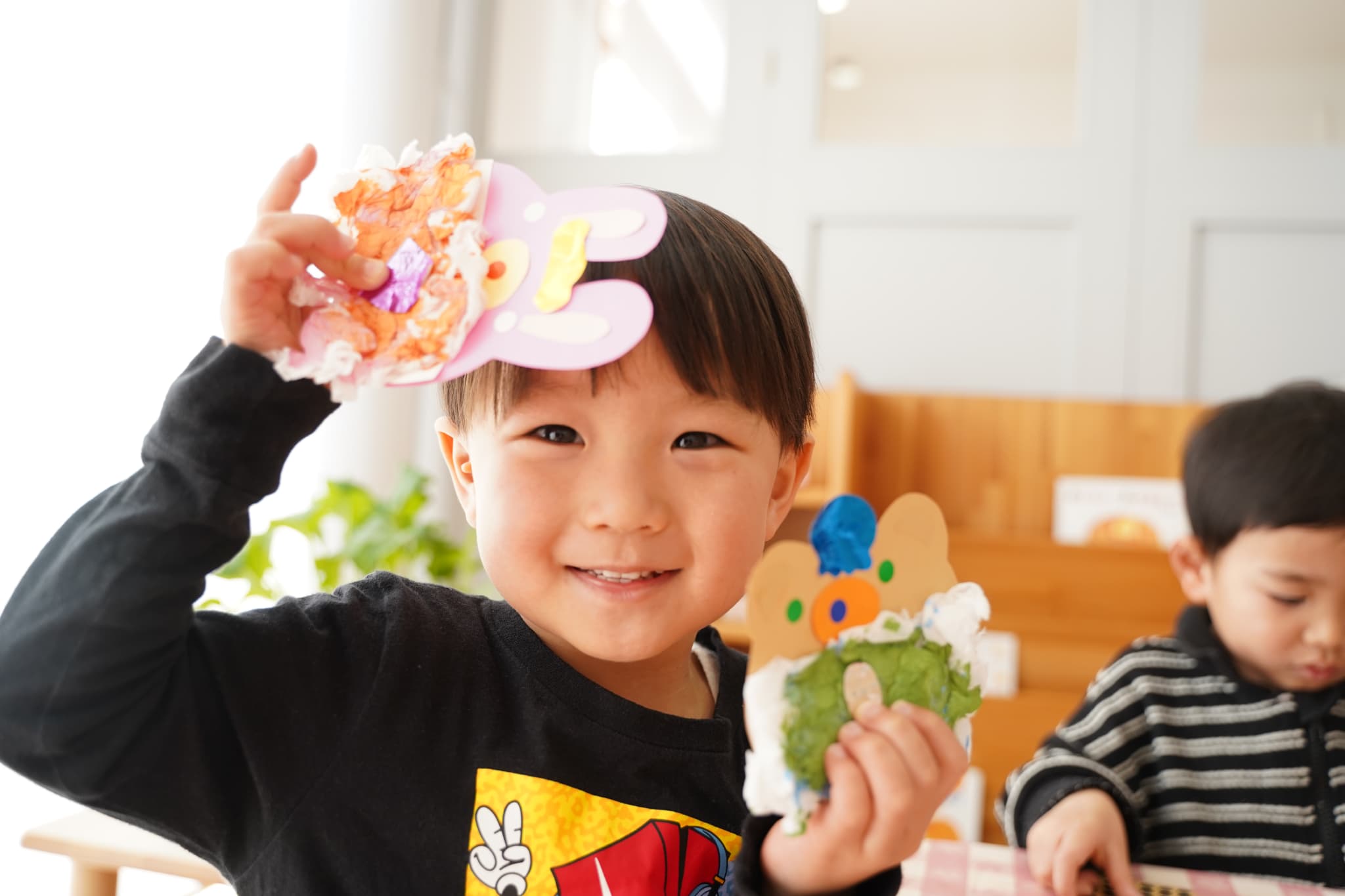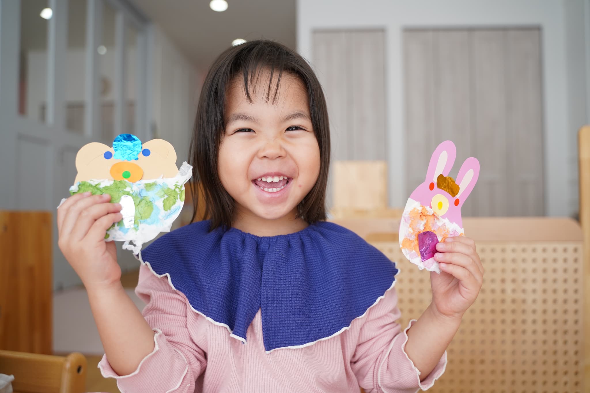 それぞれ、目、鼻の色を自分で選んで、世界に一つだけの雛人形が完成しましたよ♩