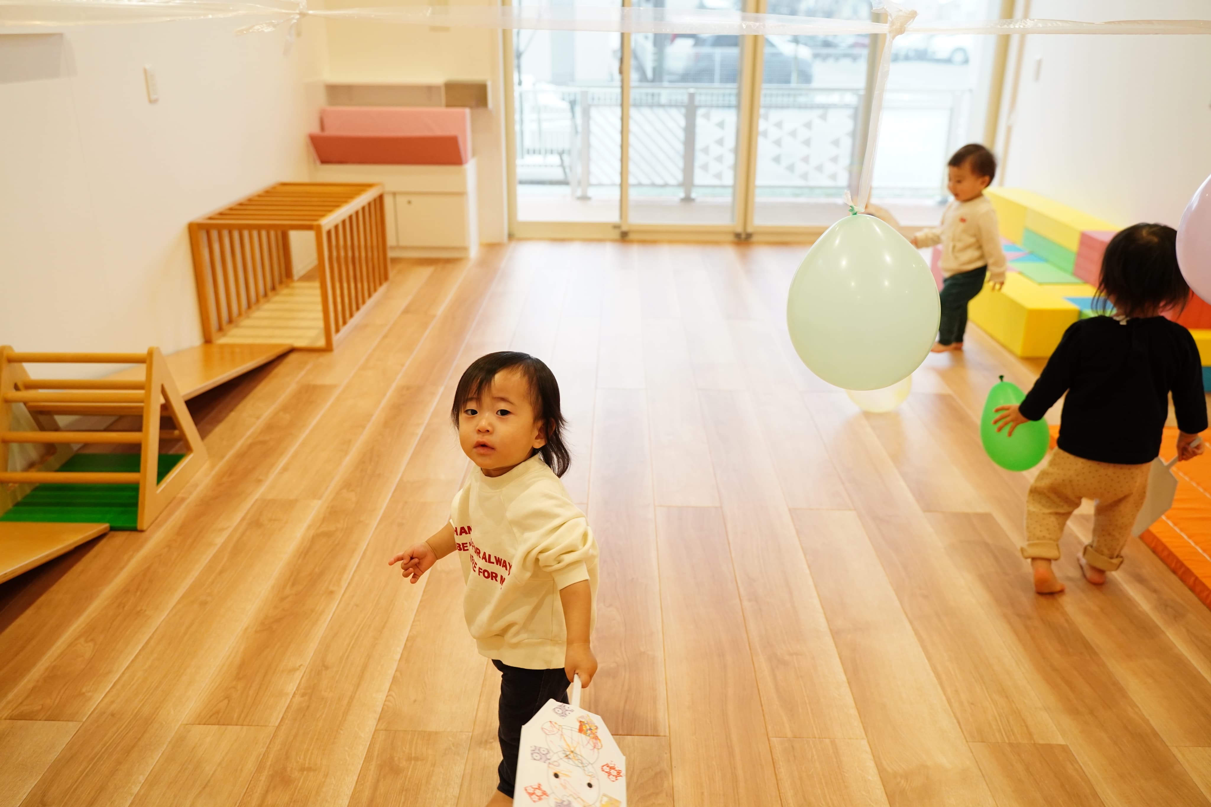 アンパンマンの絵も描いてもらい、たくさんのかわいい風船にテンションMAXのいちご組さん😆「アンパンマン!」「わんわん!」と次々指差していました!