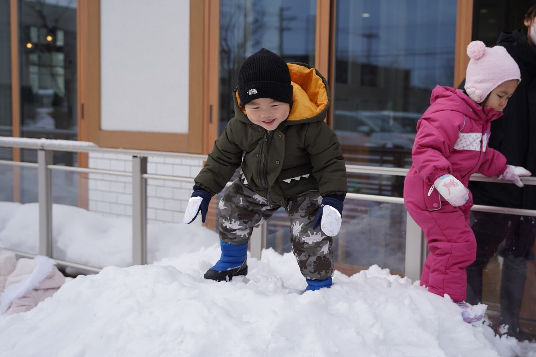 園庭のまだまだたくさんある雪に笑顔溢れる子どもたちでした⛄️