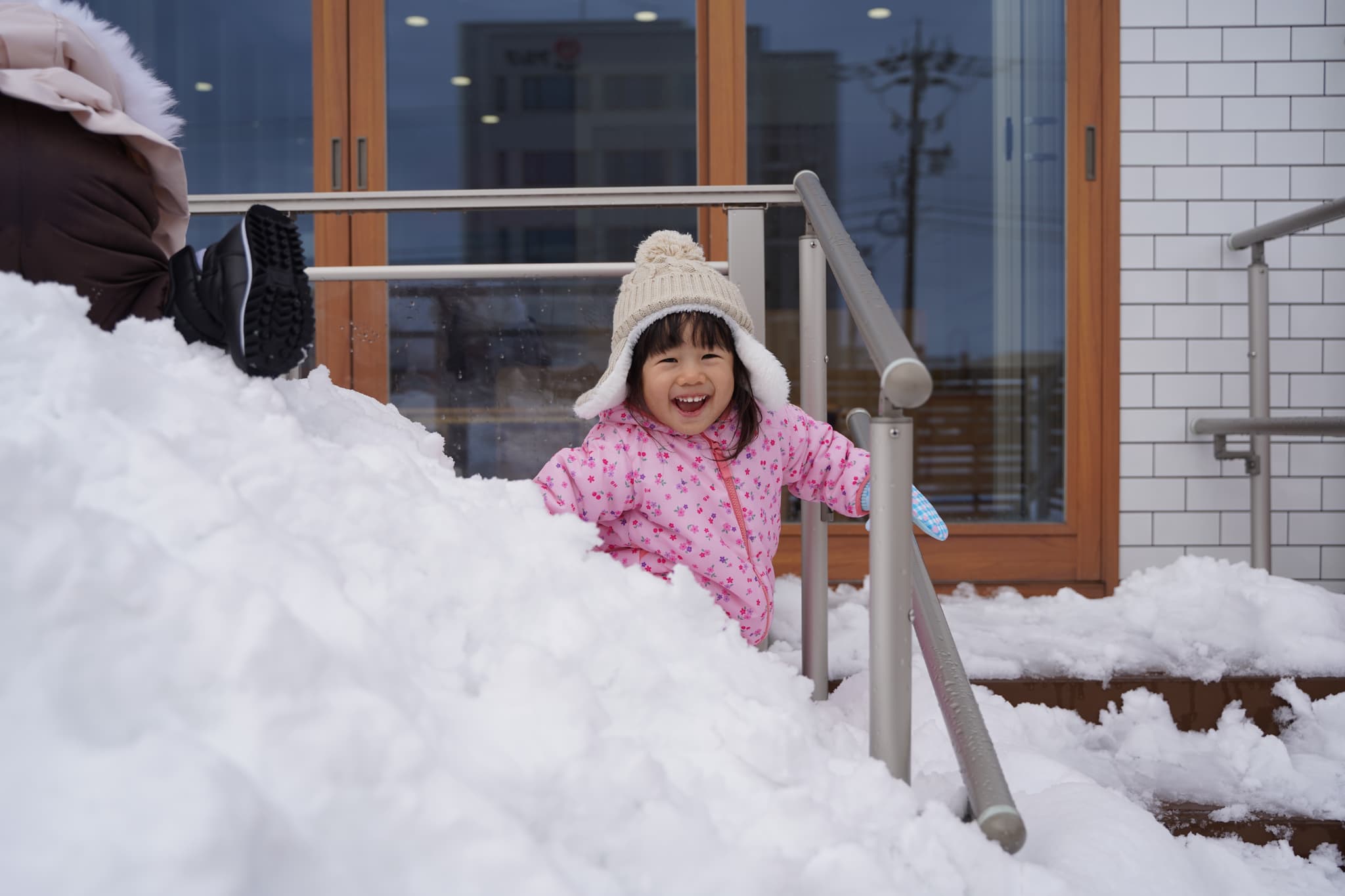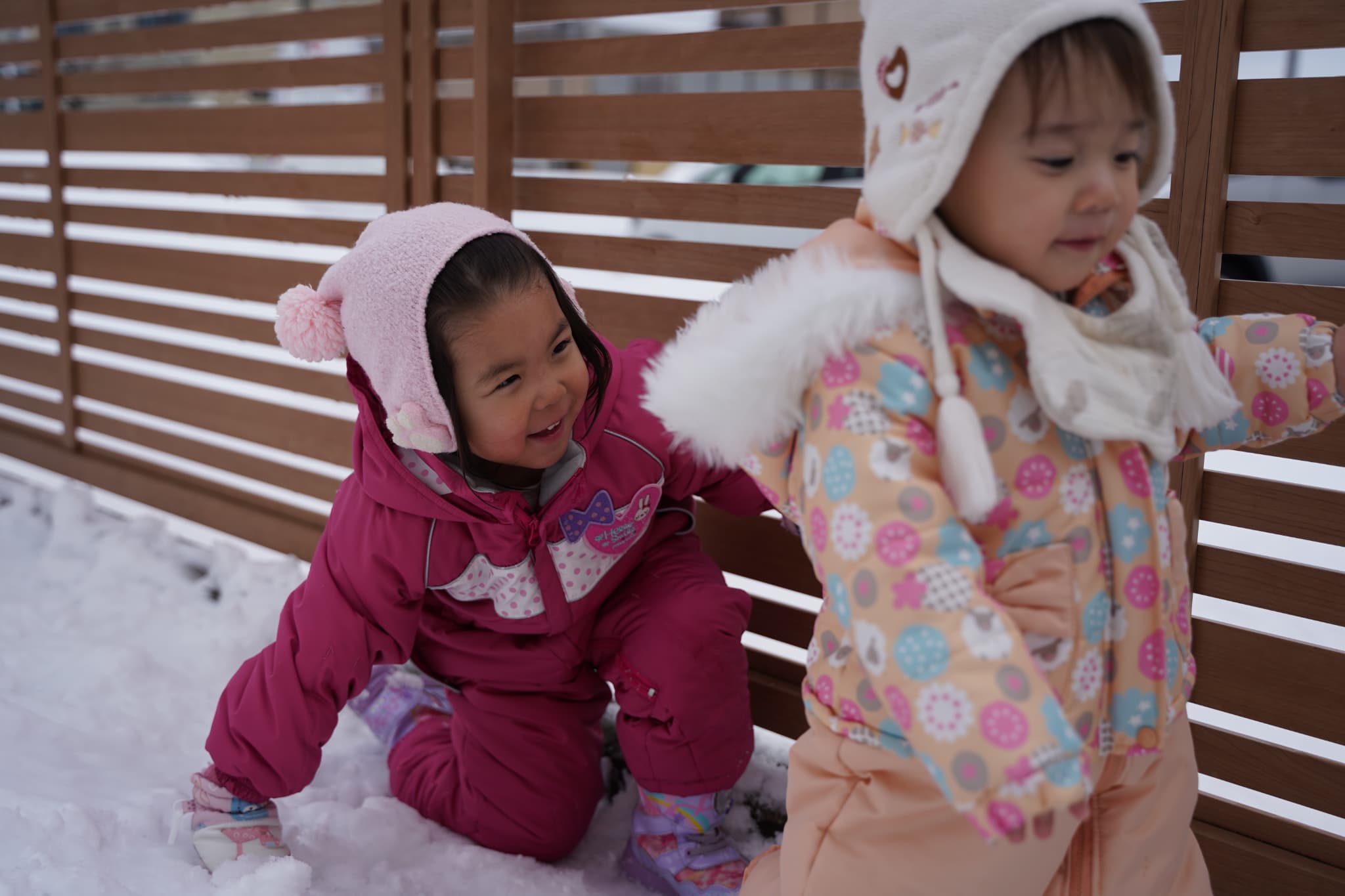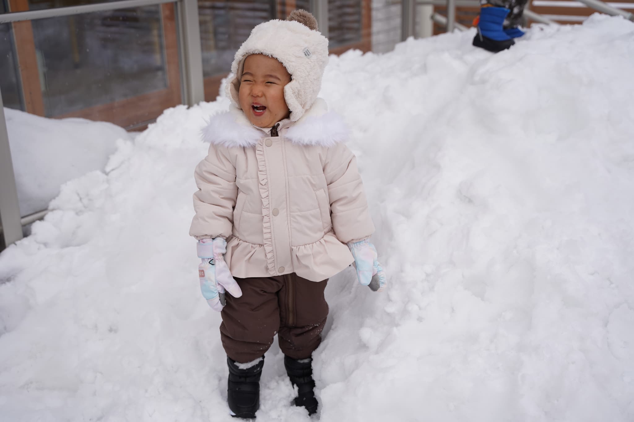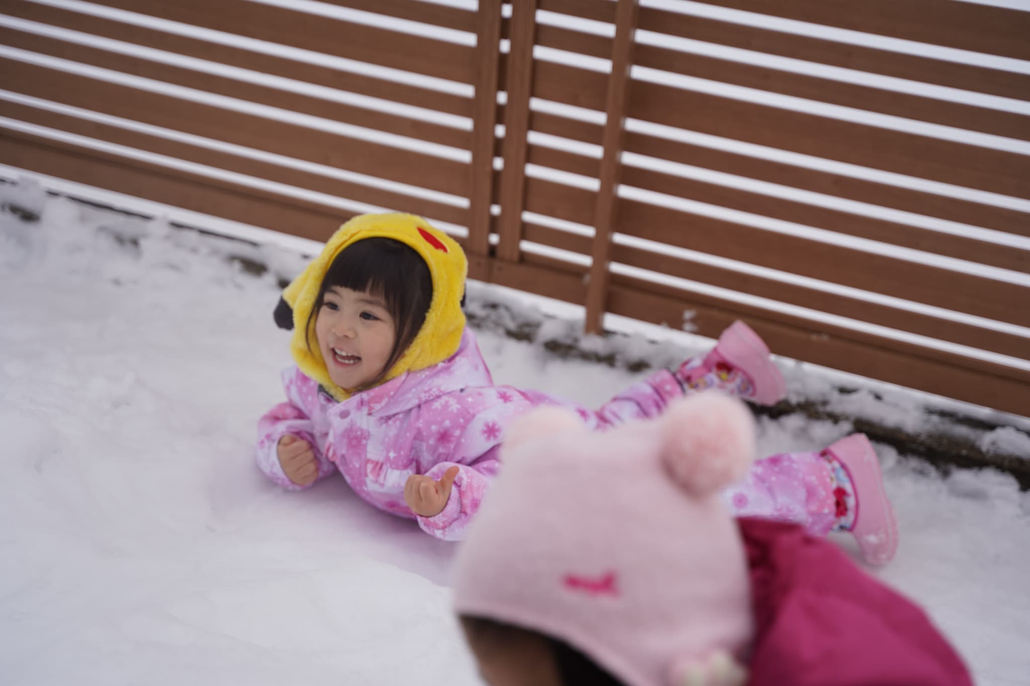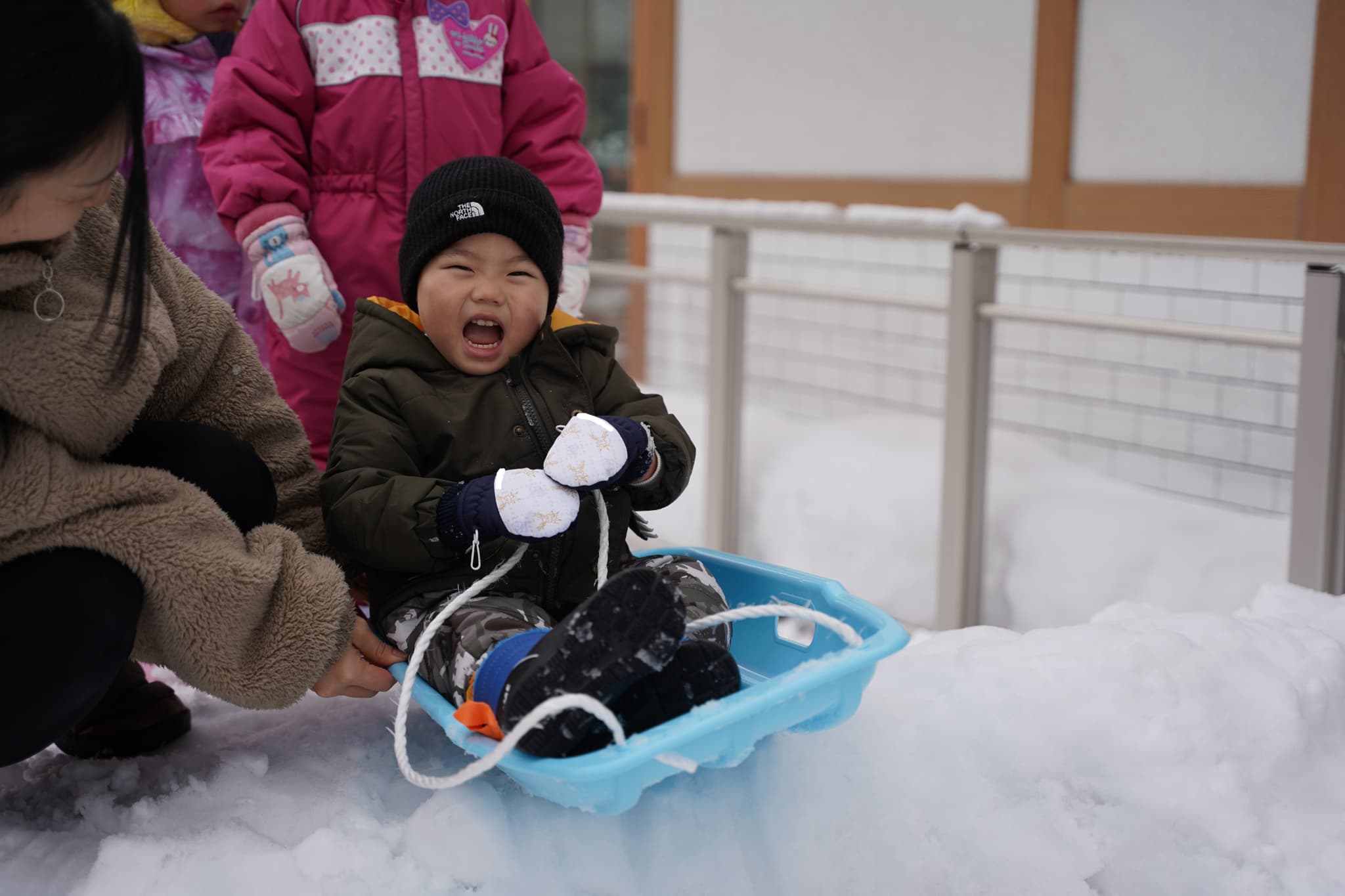 晴れ間があったので雪遊びもしました。