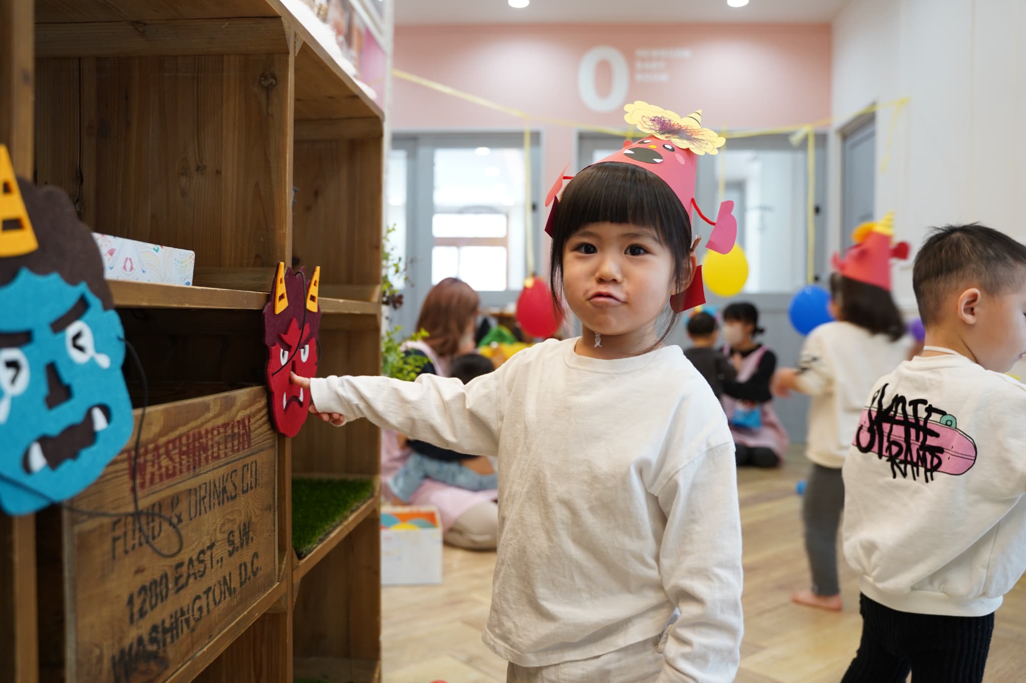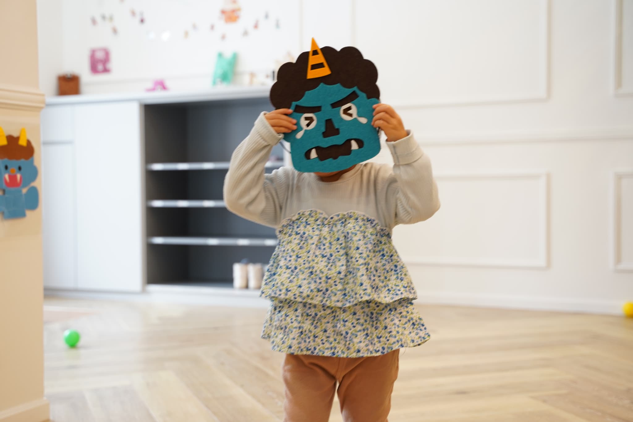廊下に可愛い鬼さんをたくさん用意して、豆まきをみんなで楽しみました!