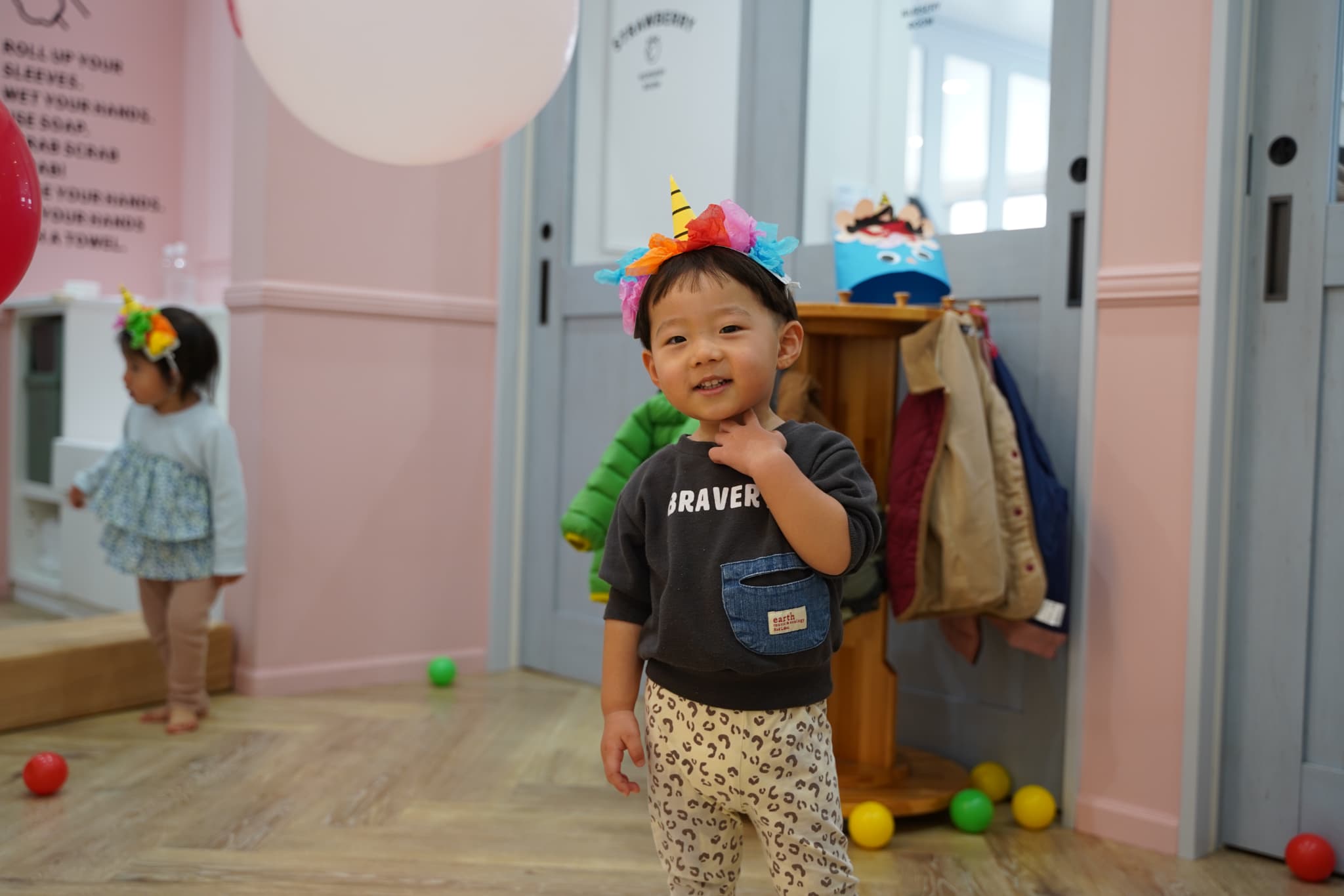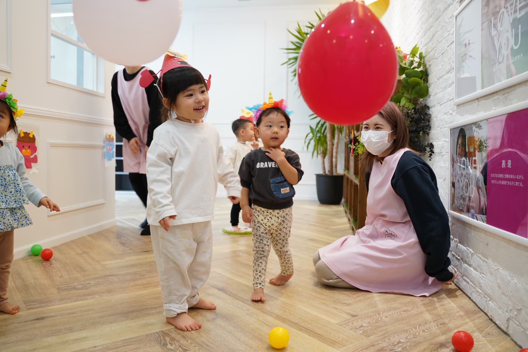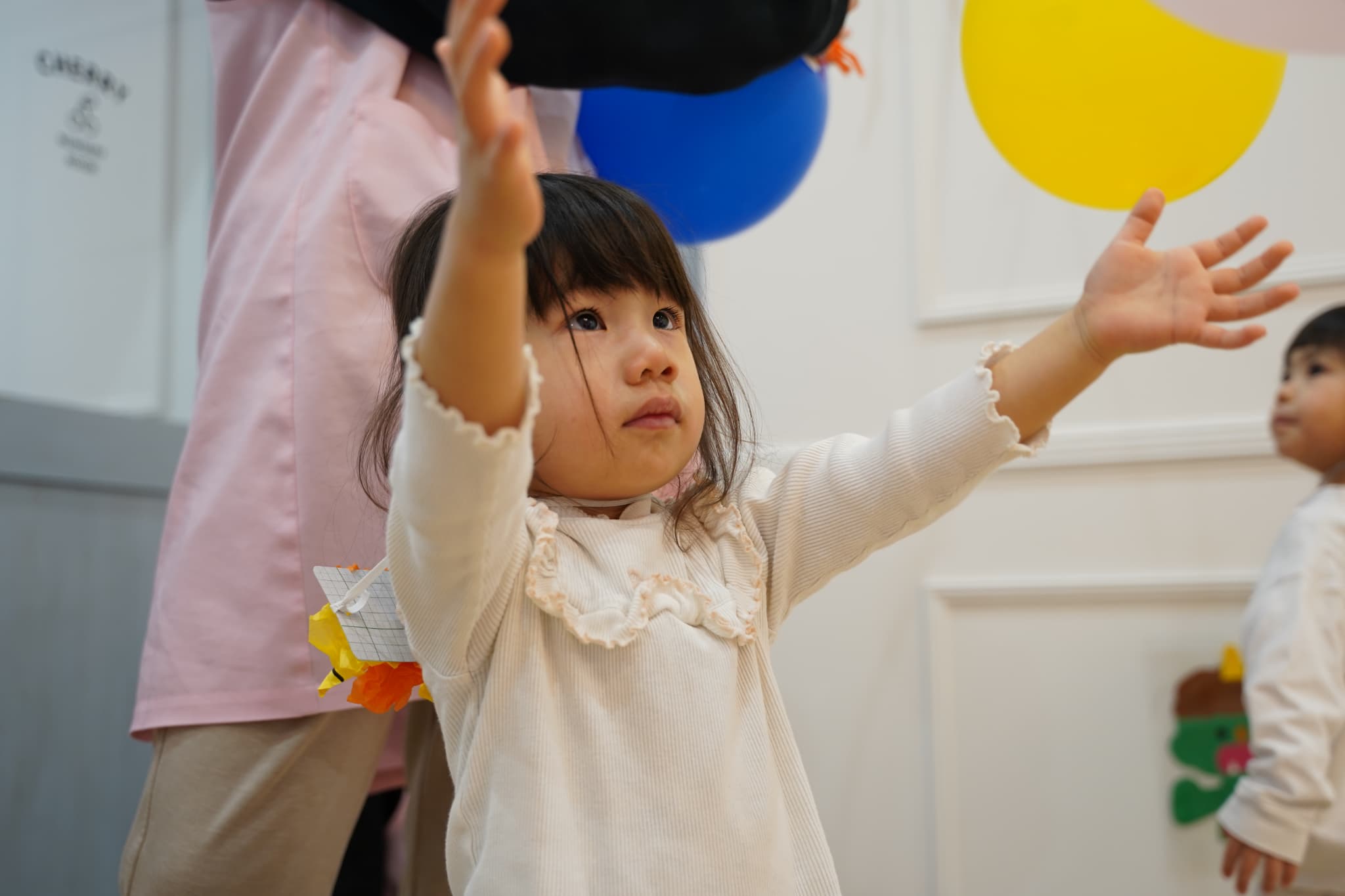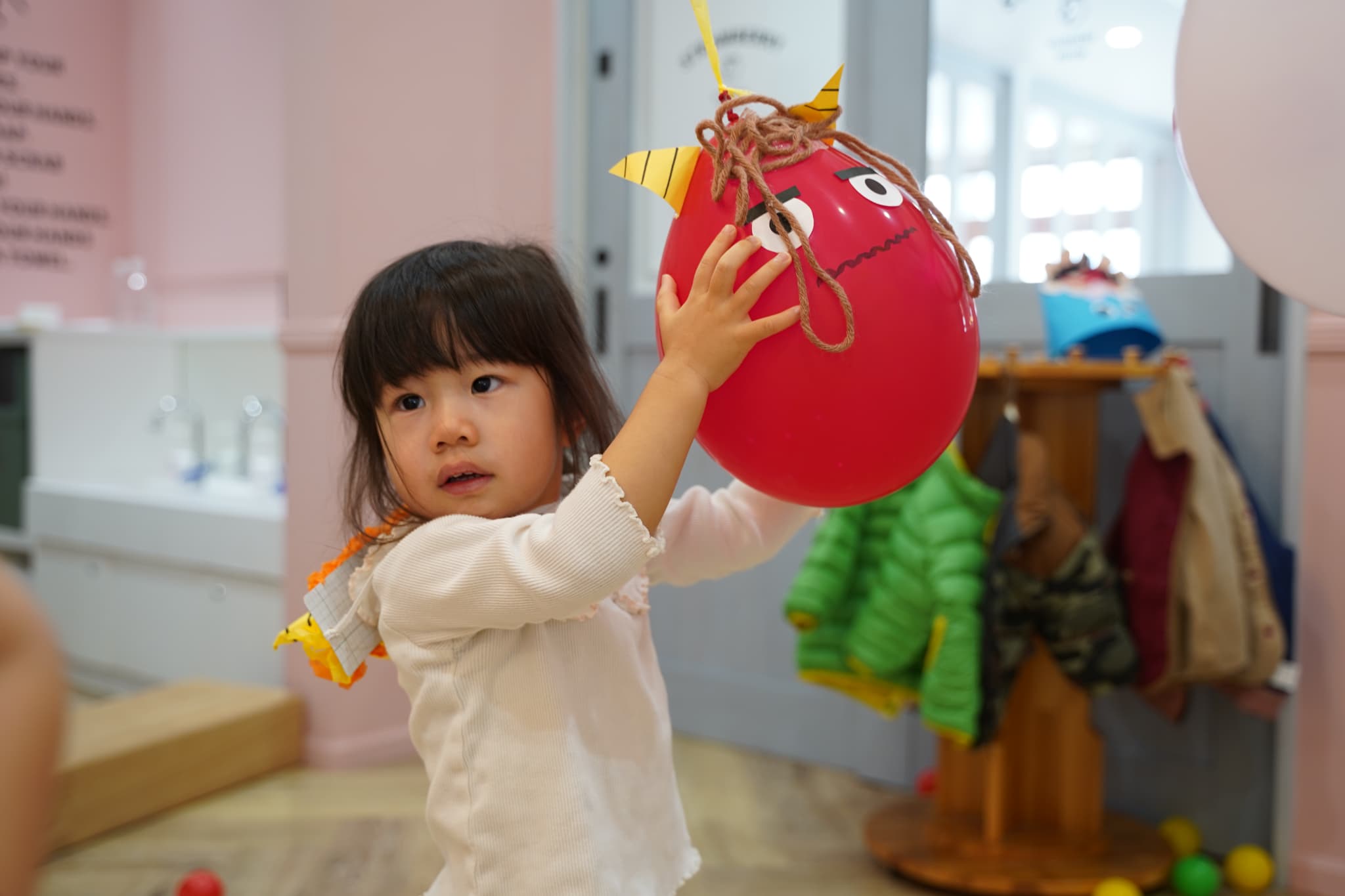 鬼さんの風船を掴んでみようと手を広げて・・・