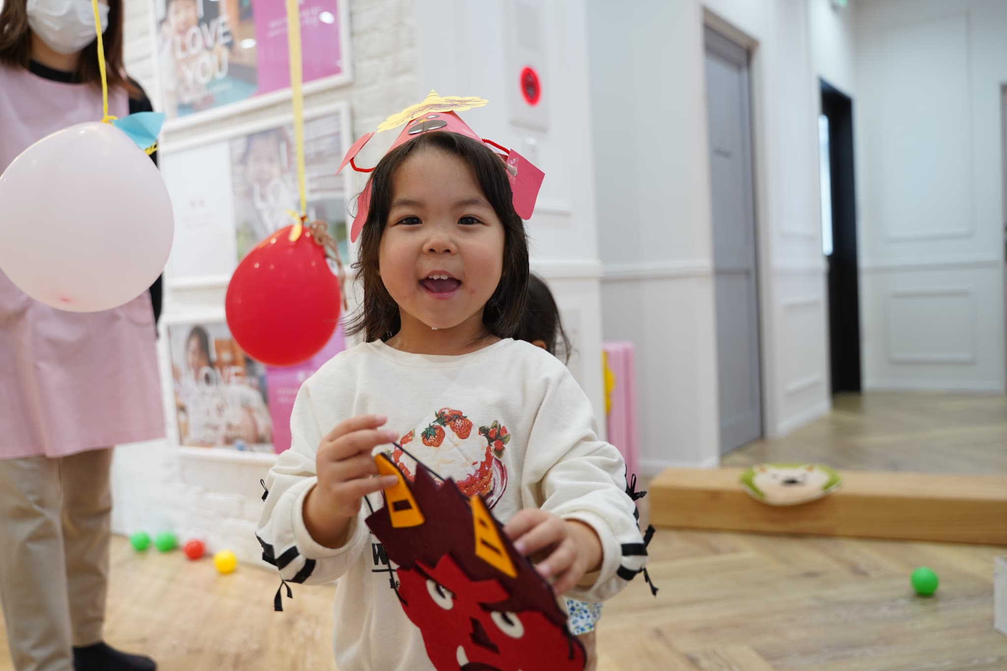 両手にボールを持って鬼退治への気合いを感じました!