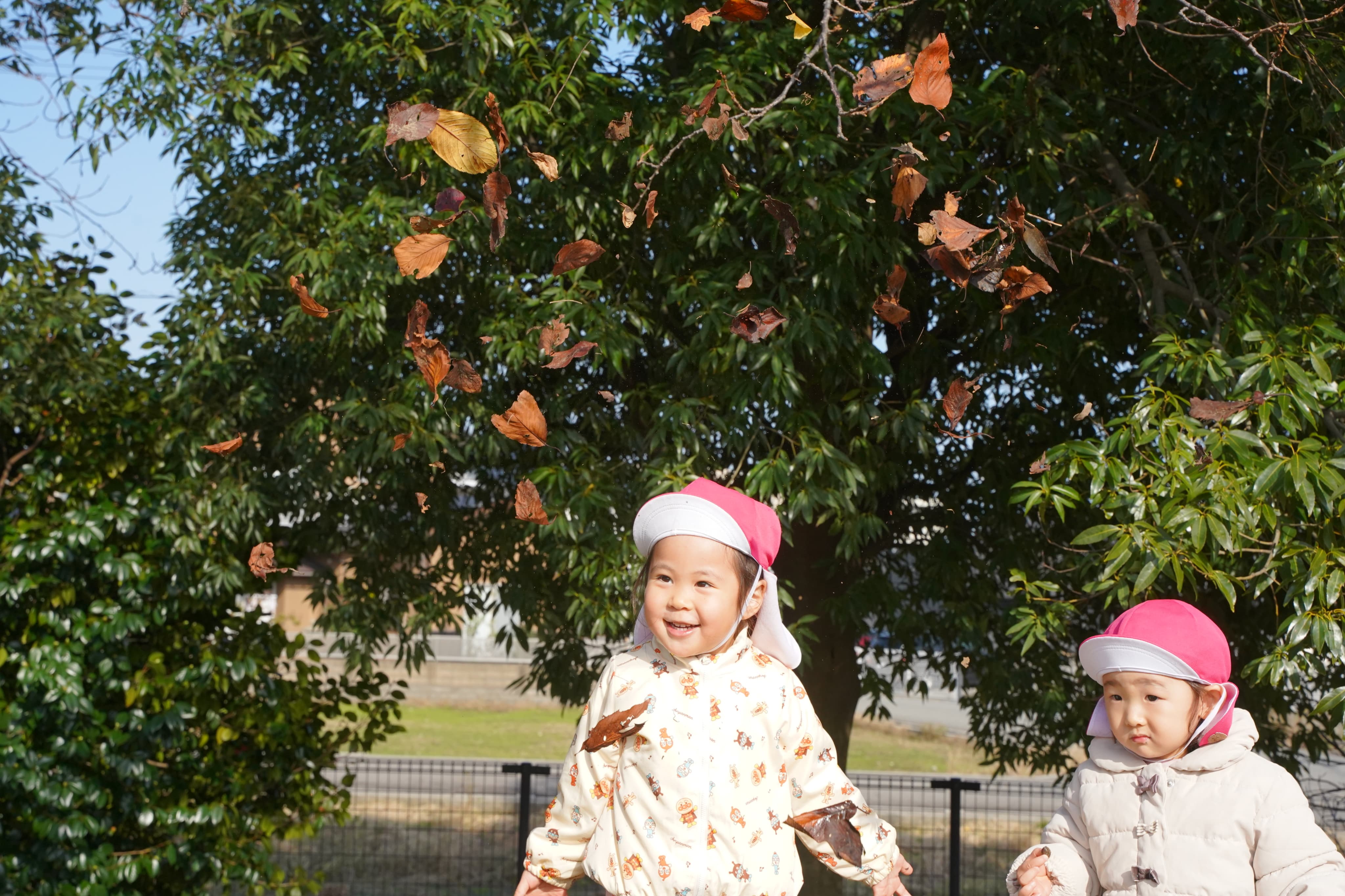 落ち葉も「それー🍁」とこんな風に巻き上げて楽しんでいますよ🍂