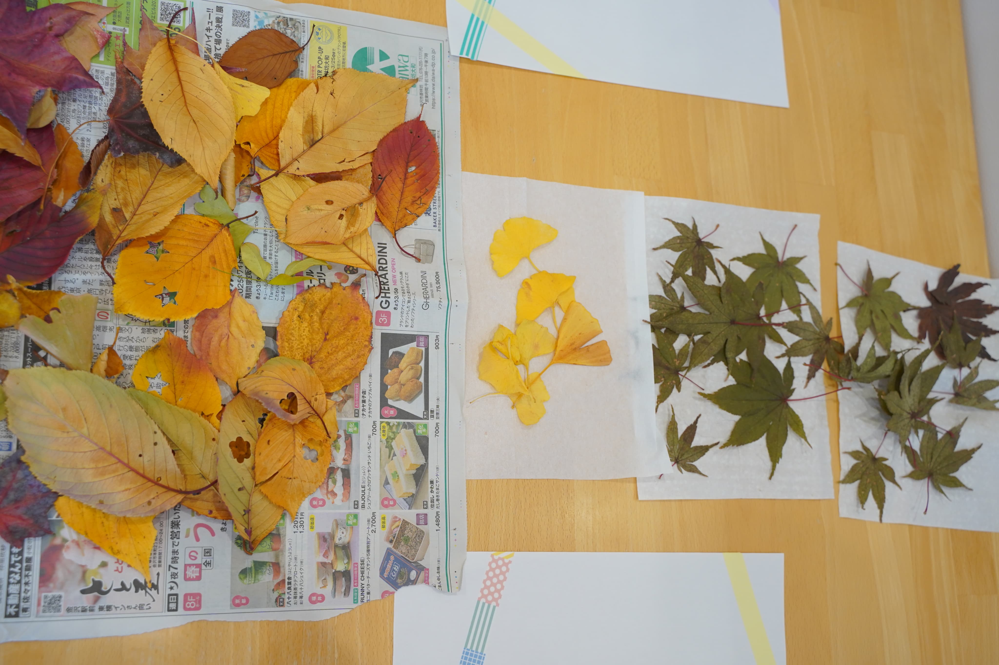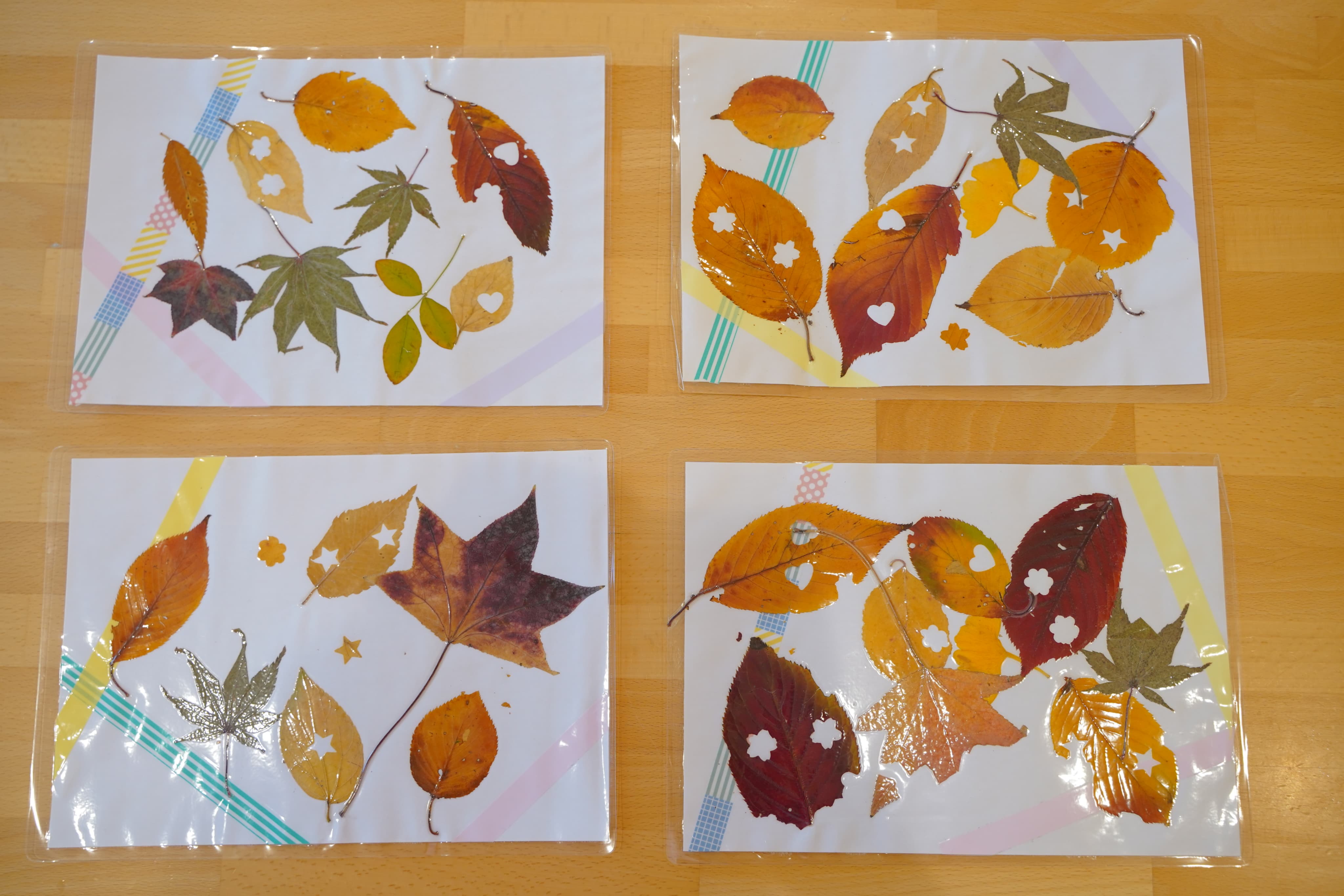 イチョウやもみじ🍁もあって色々な色や形の葉っぱが揃いました!!