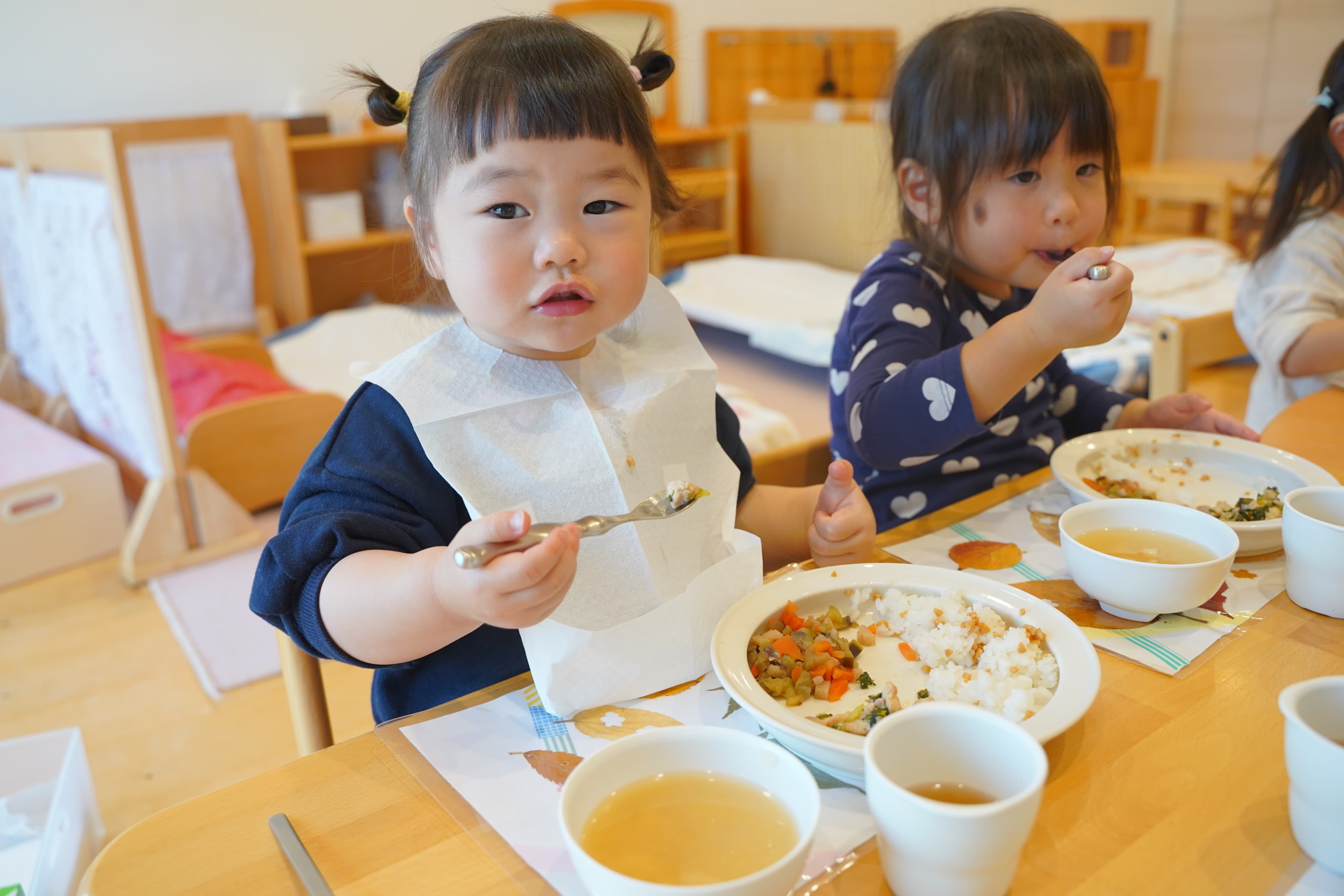今日はいつもより少し楽しい給食になったもも組さん🍑