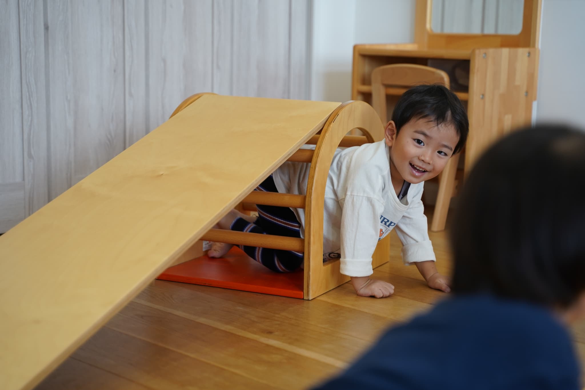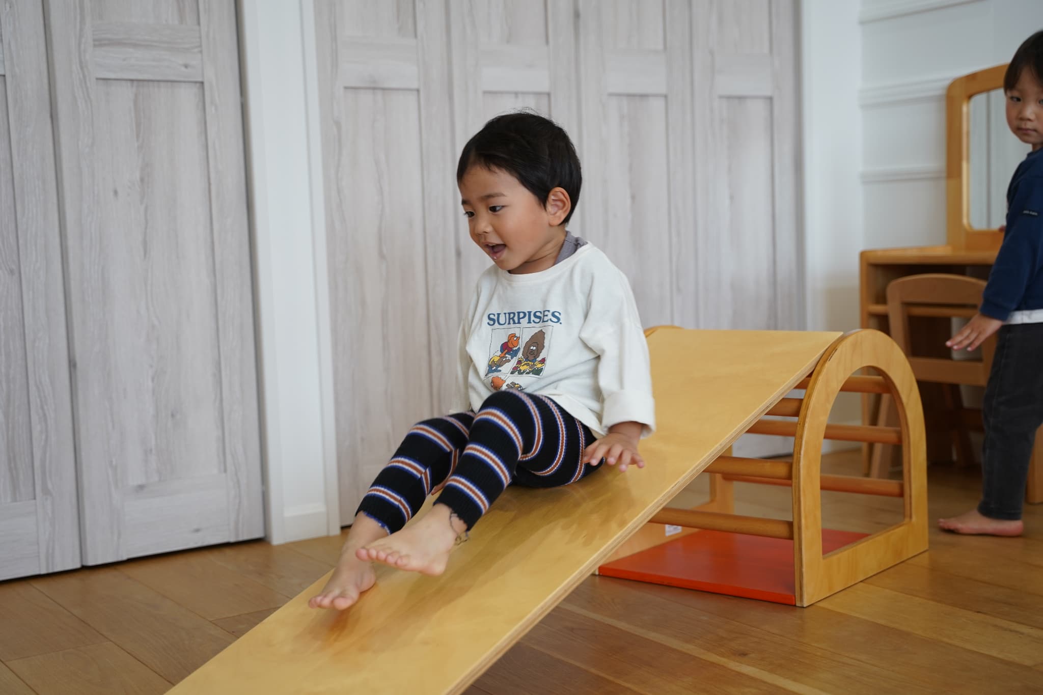 すぐに滑り台に登り、勢いよくシューっと滑っていきます💨