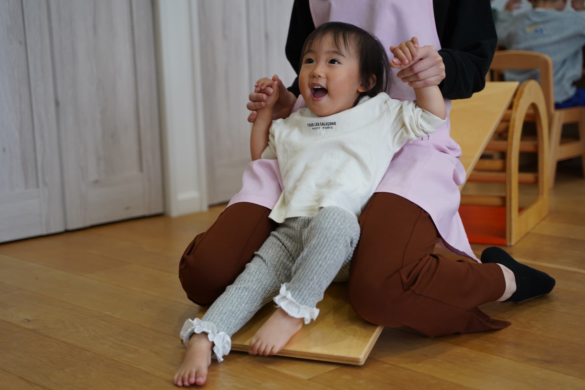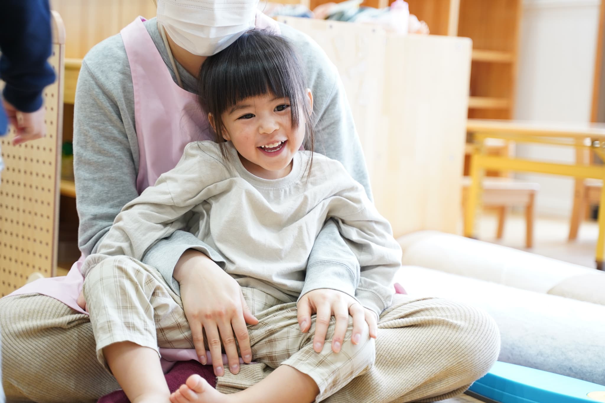 たくさん体を動かしたので先生のお膝に座って休憩タイム♡