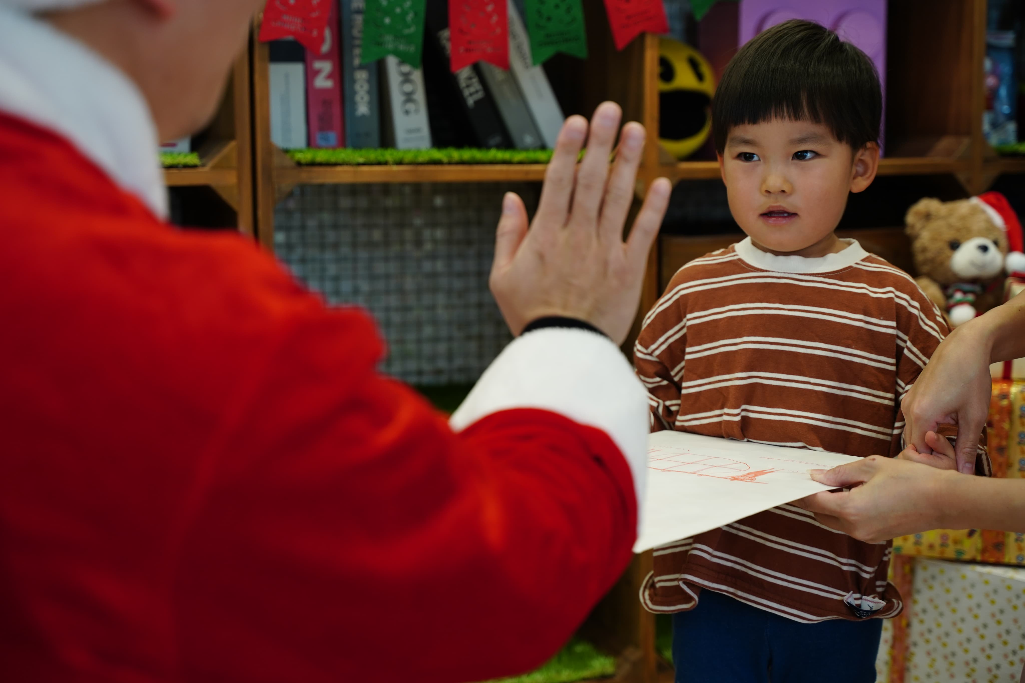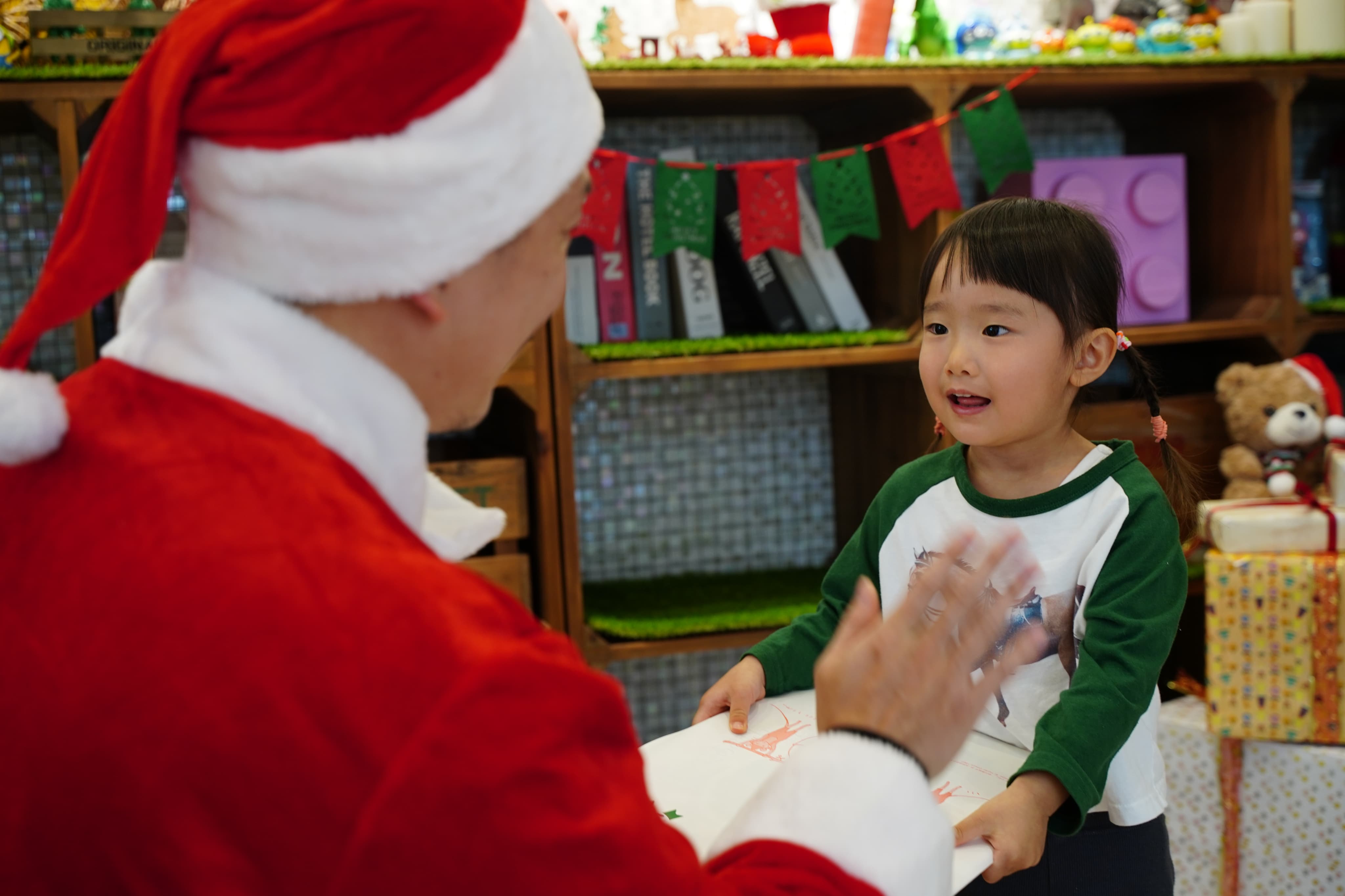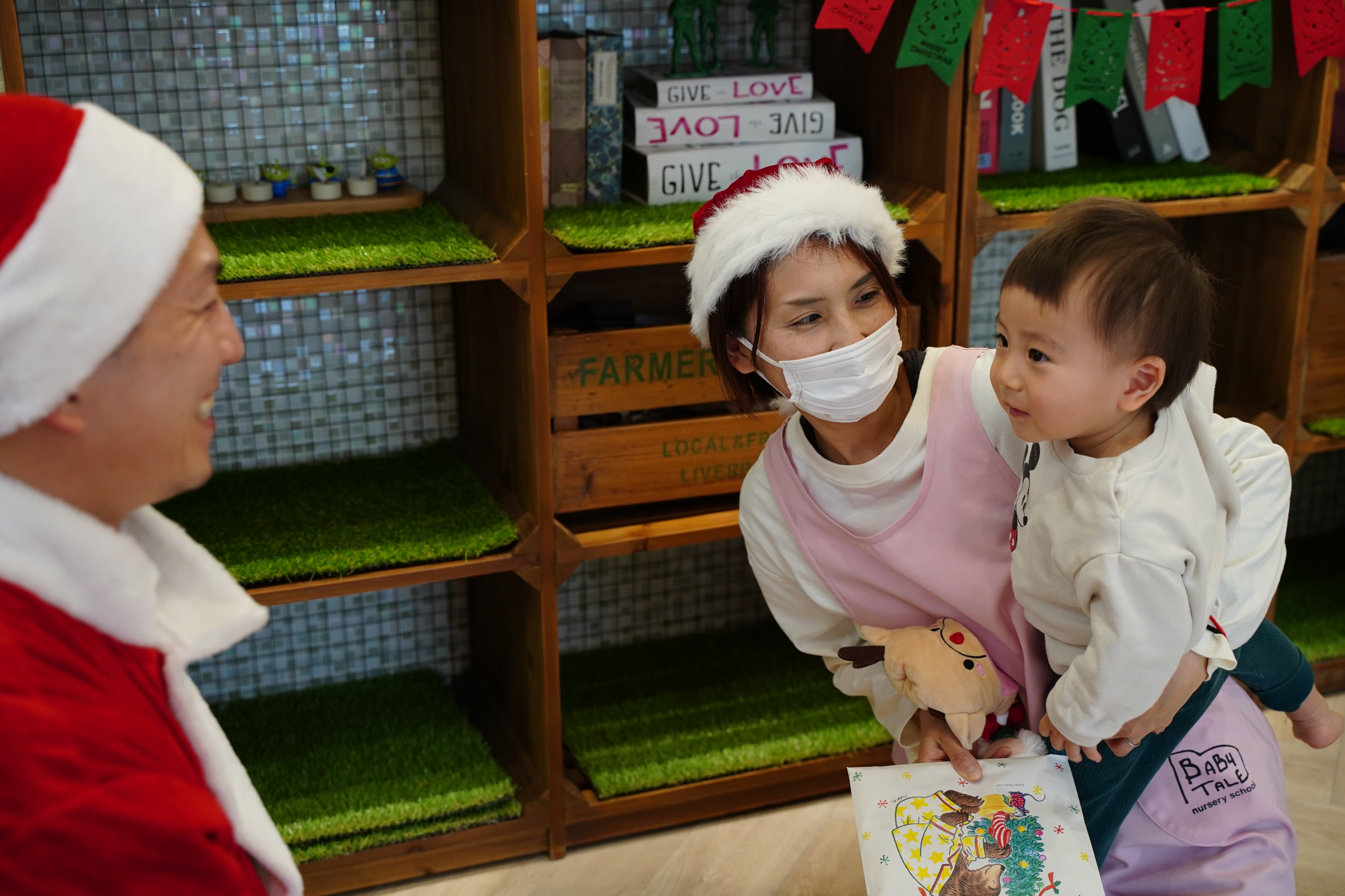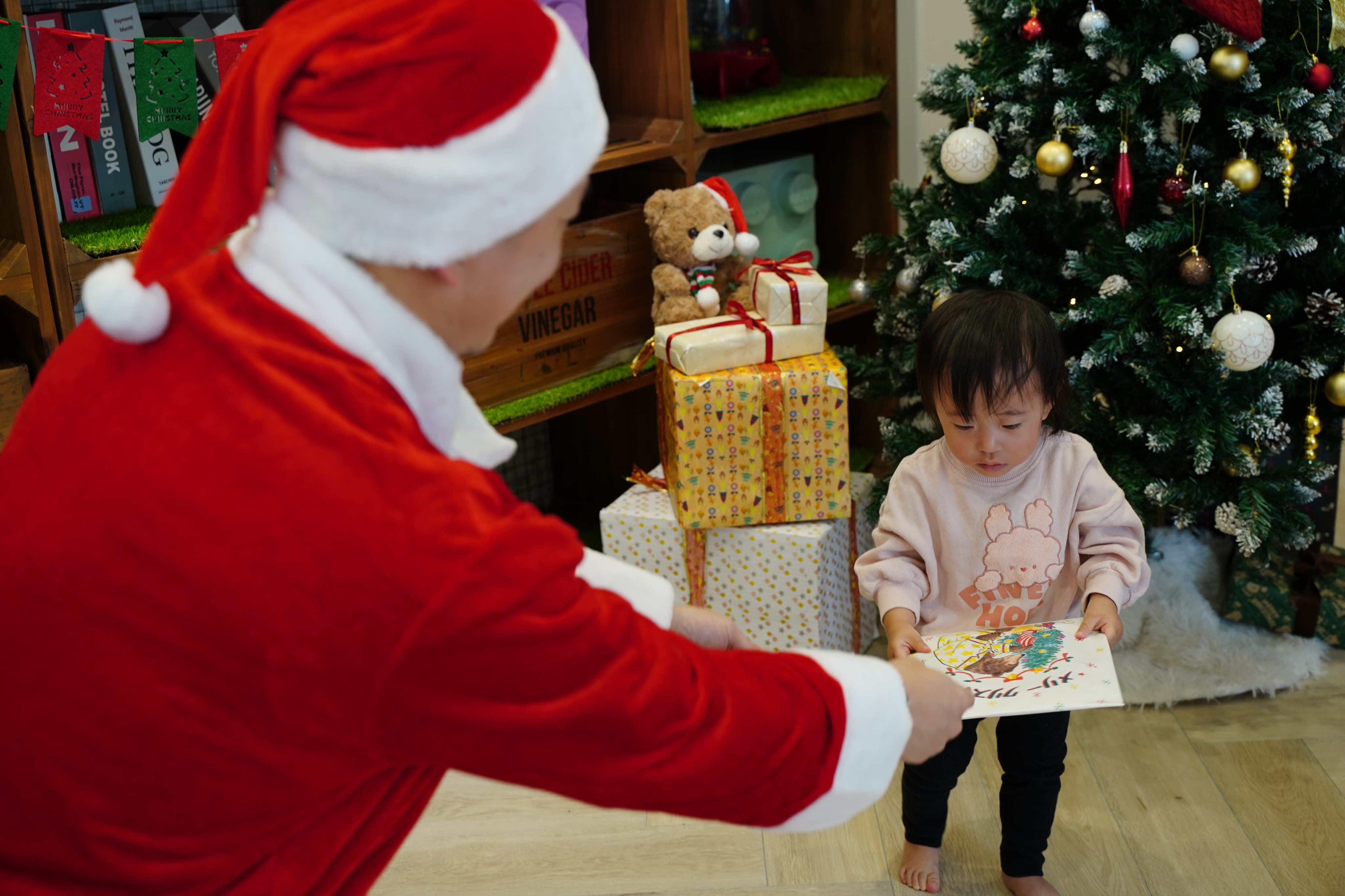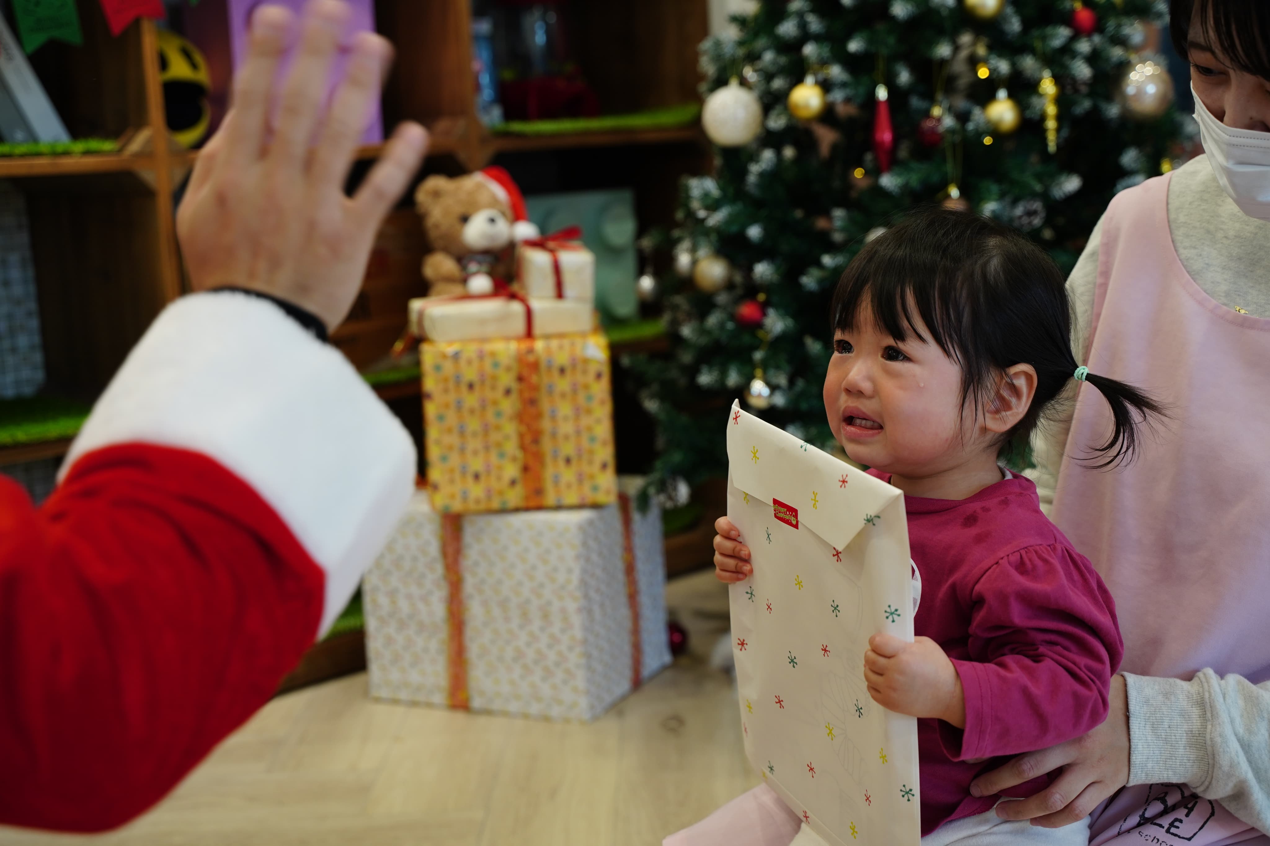 ちょっと緊張しながらも1人でもらいに行けた子、上手に「ありがと!」とお礼も言えた子、サンタさんとハイタッチできた子、警戒していたけどプレゼントはしっかりもらっていた子、と反応は様々でした☺️