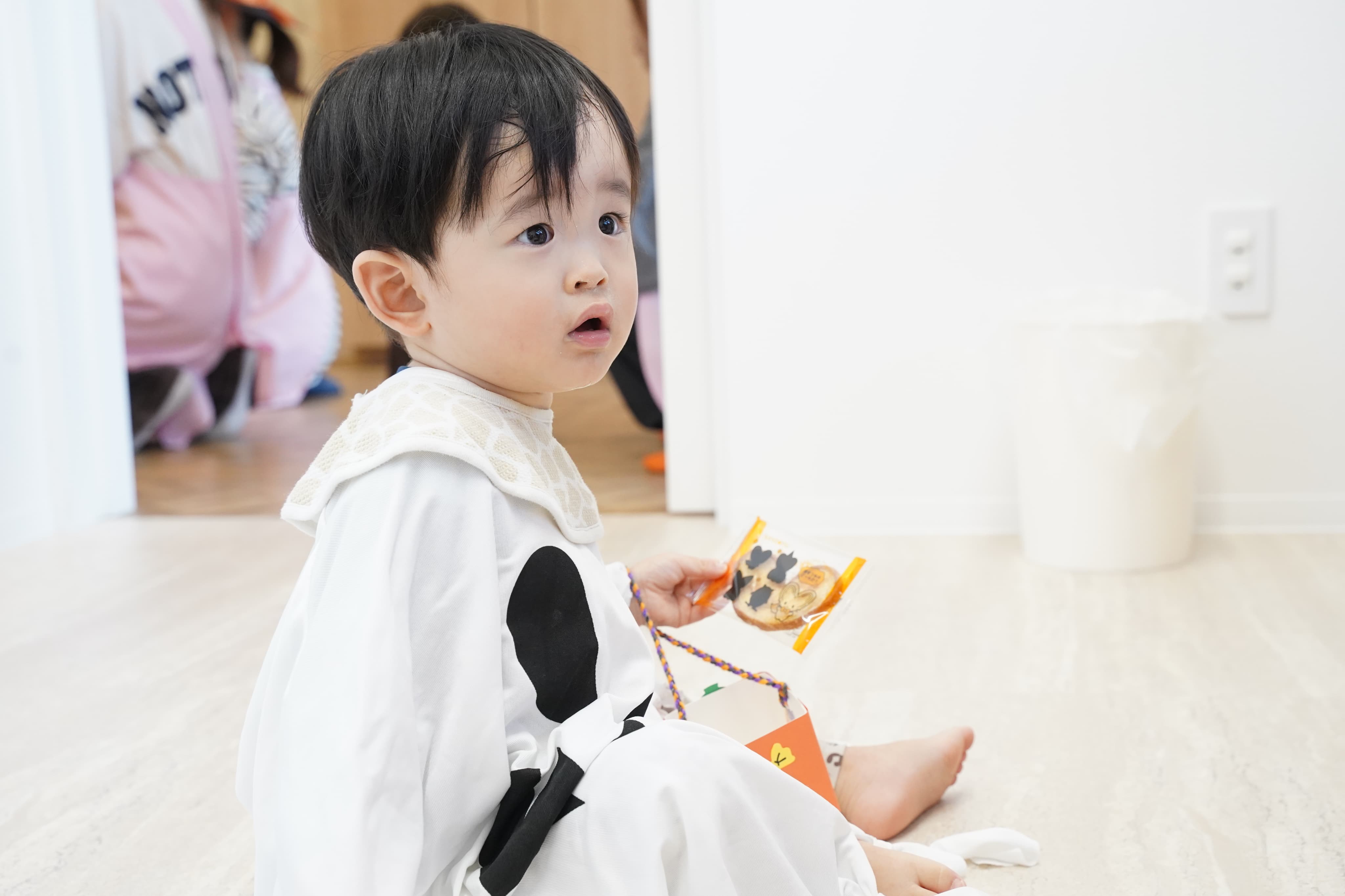 おかしをもらってじっくり見たり、早く食べたくて開けて欲しそうにしたり色々な反応がありましたよ🍬