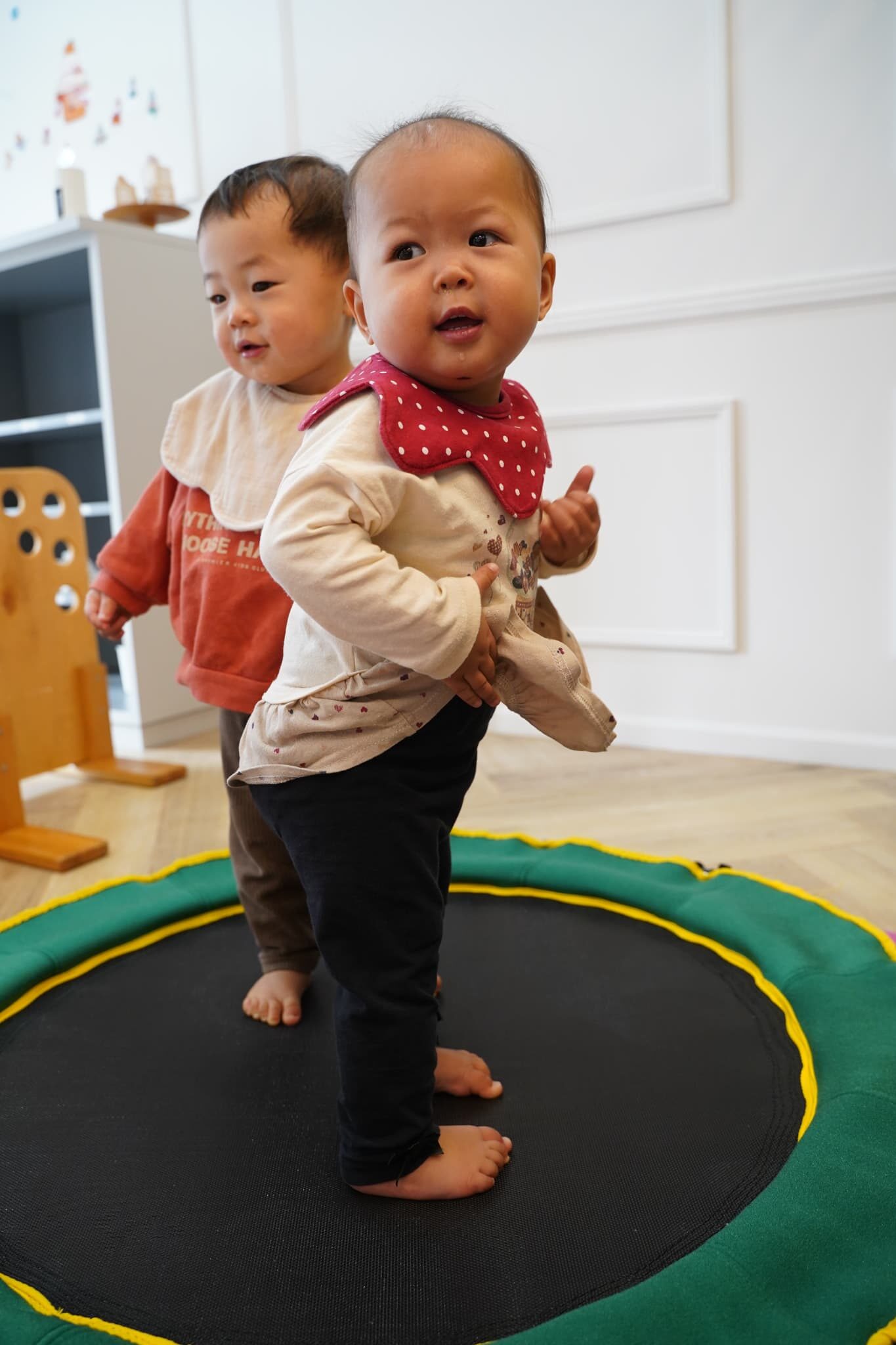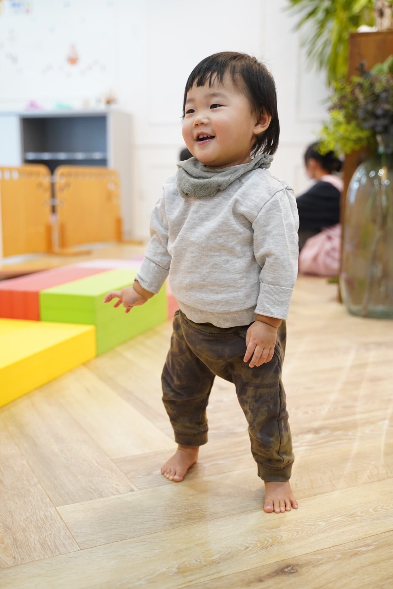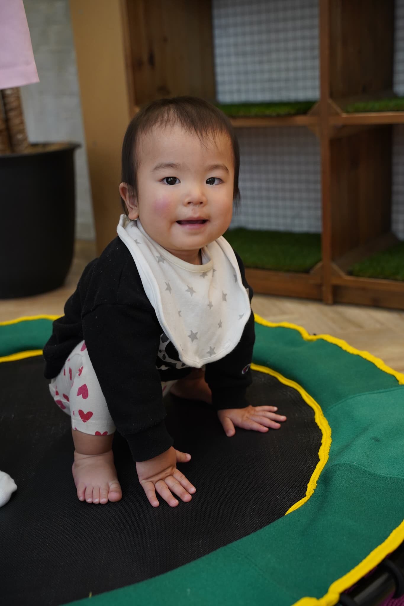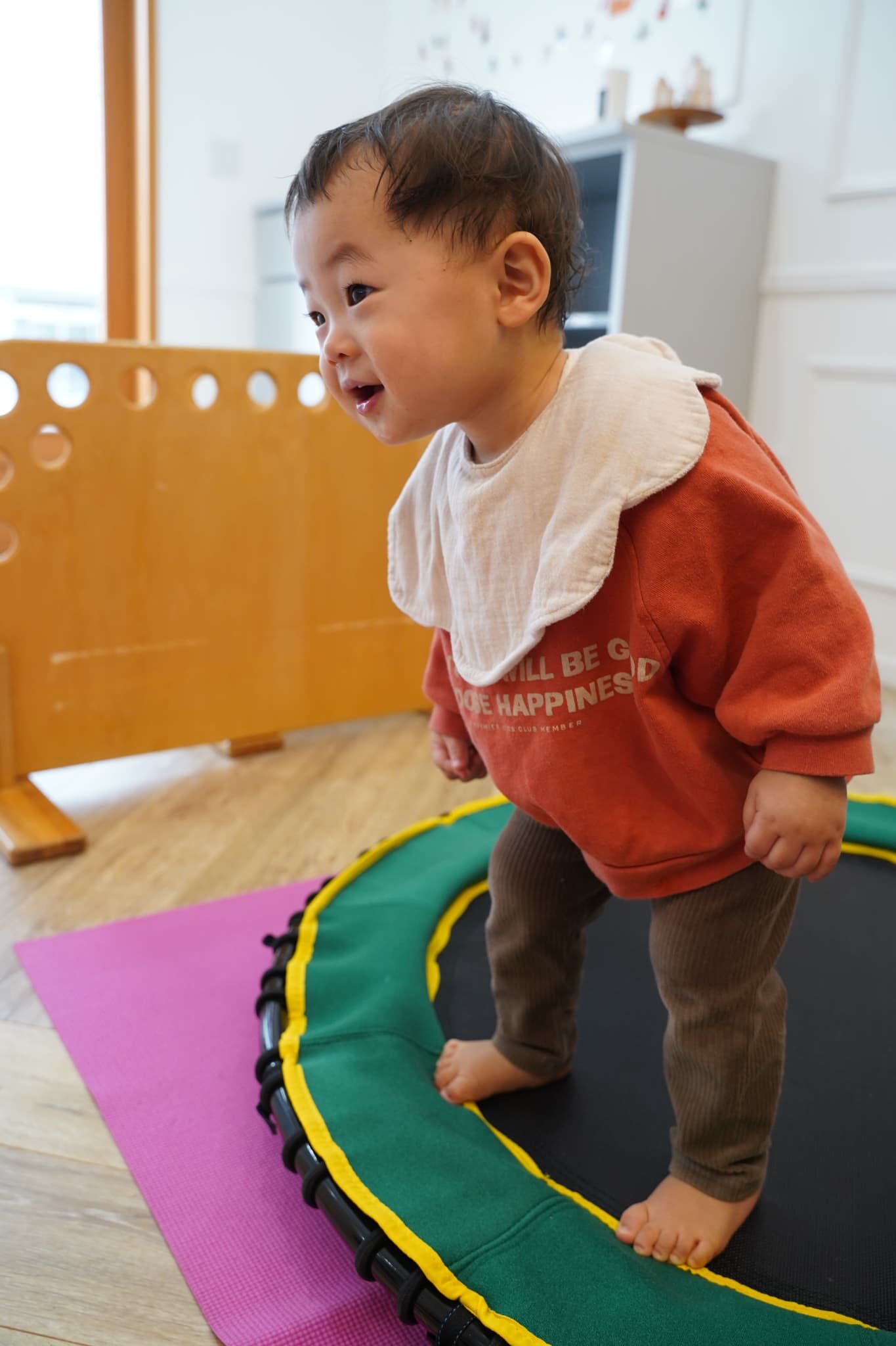 保育士が一緒に立つと、ポヨ〜ンと揺れるのが面白くて笑うみんなでした🤣