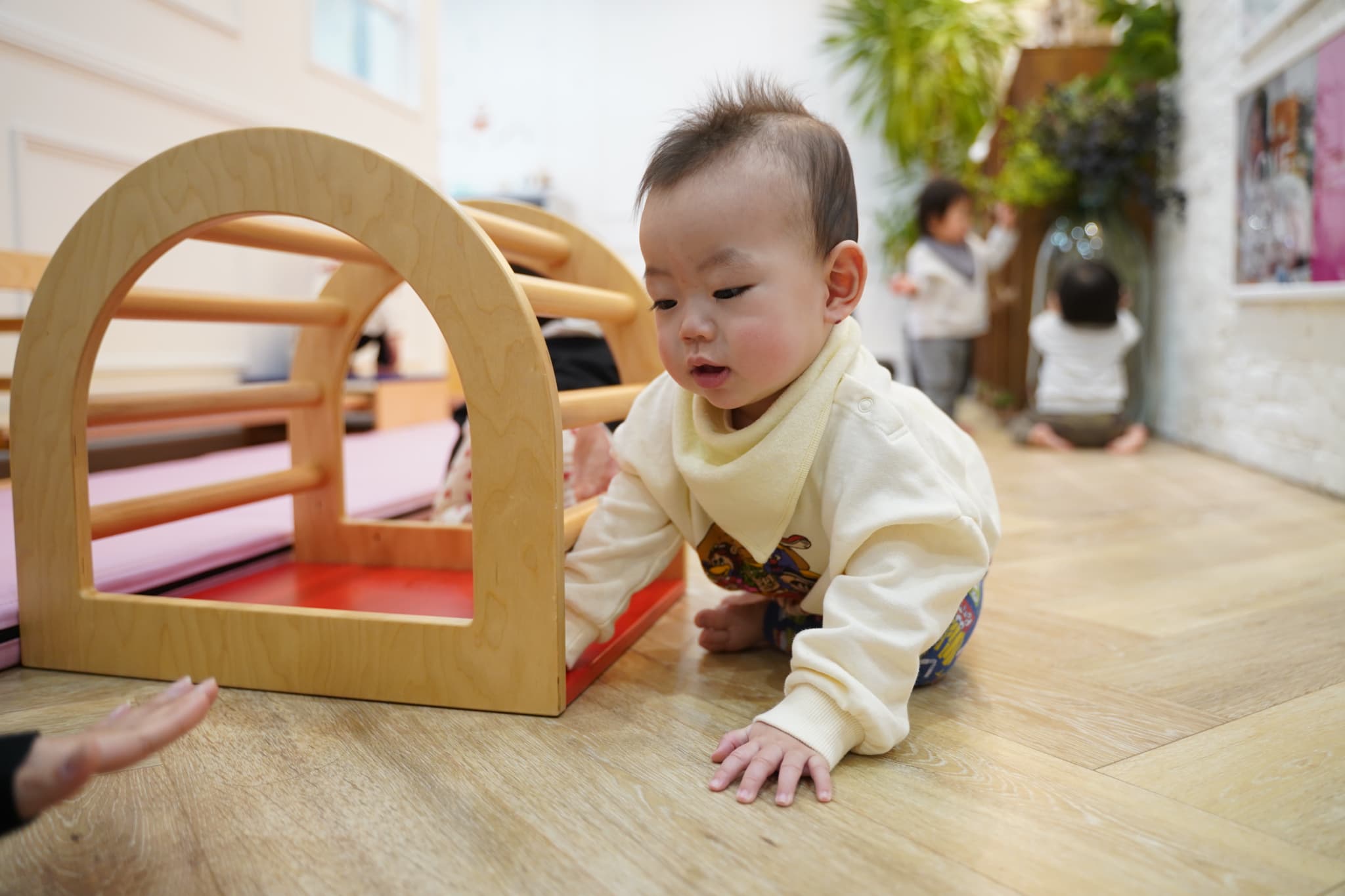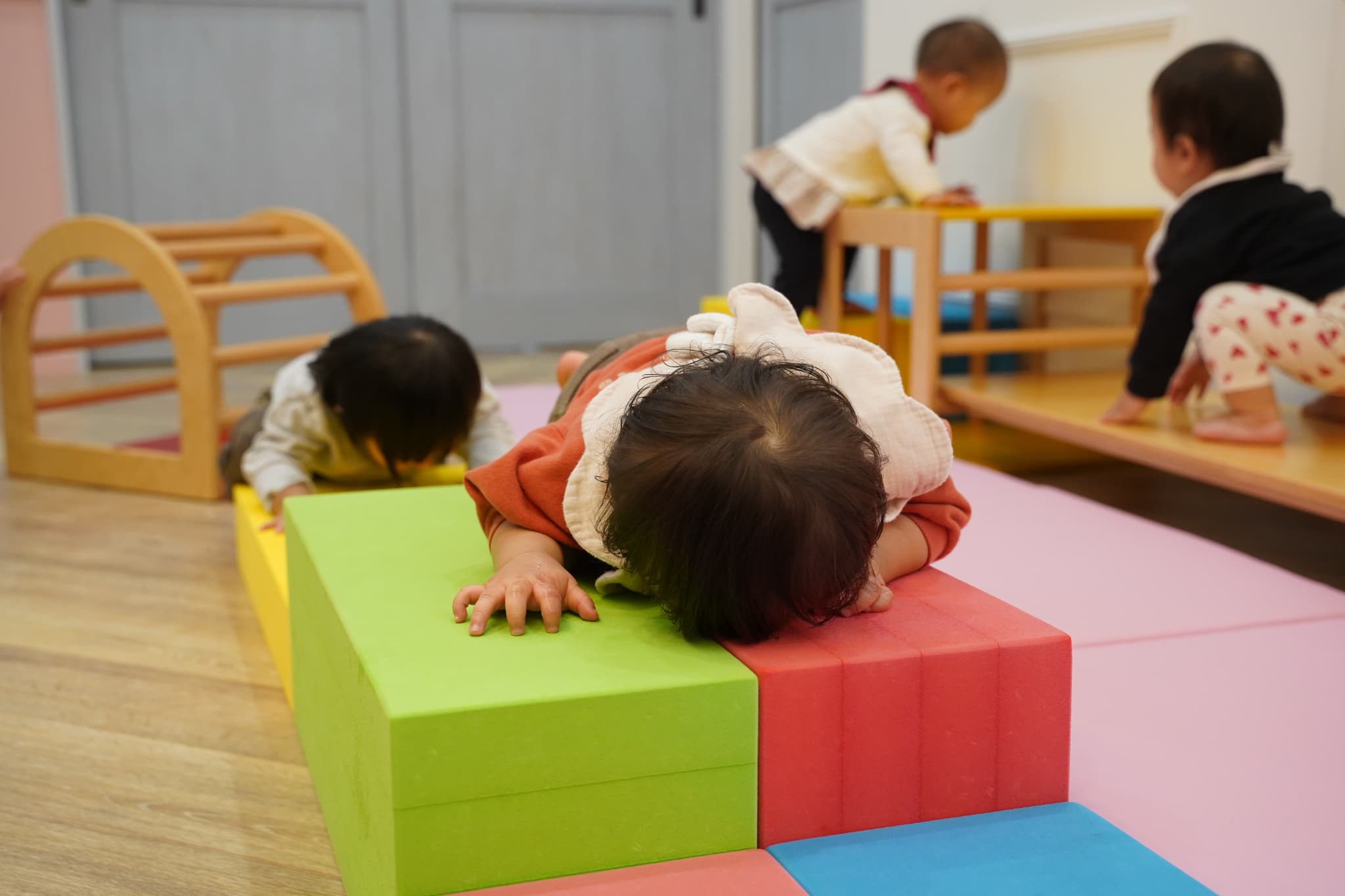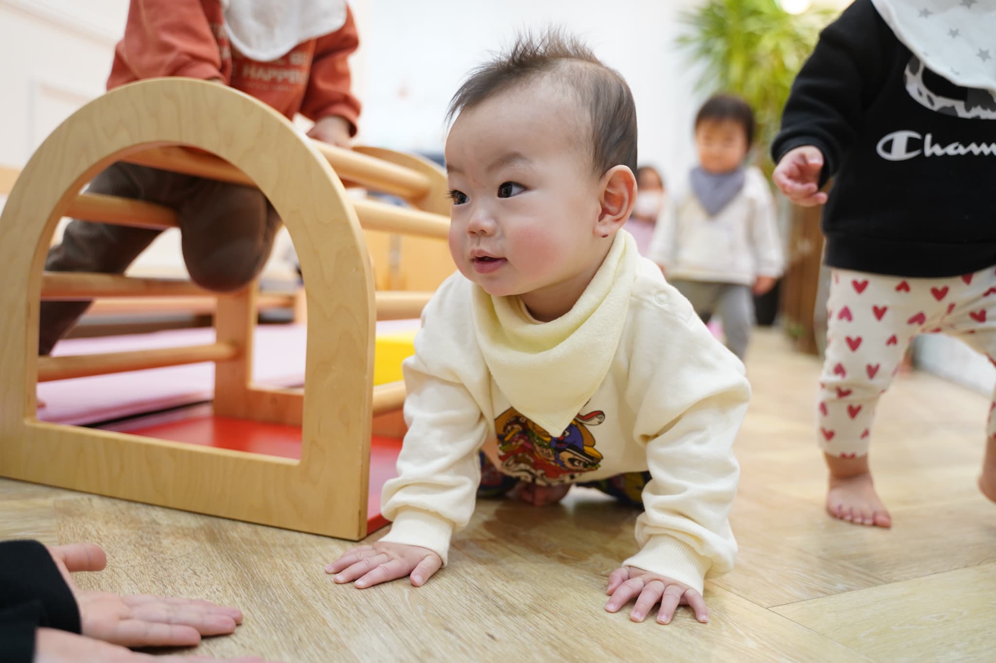 「おいで〜!」の声で、手を前に伸ばして進もうと身体を動かしていましたよ🚼