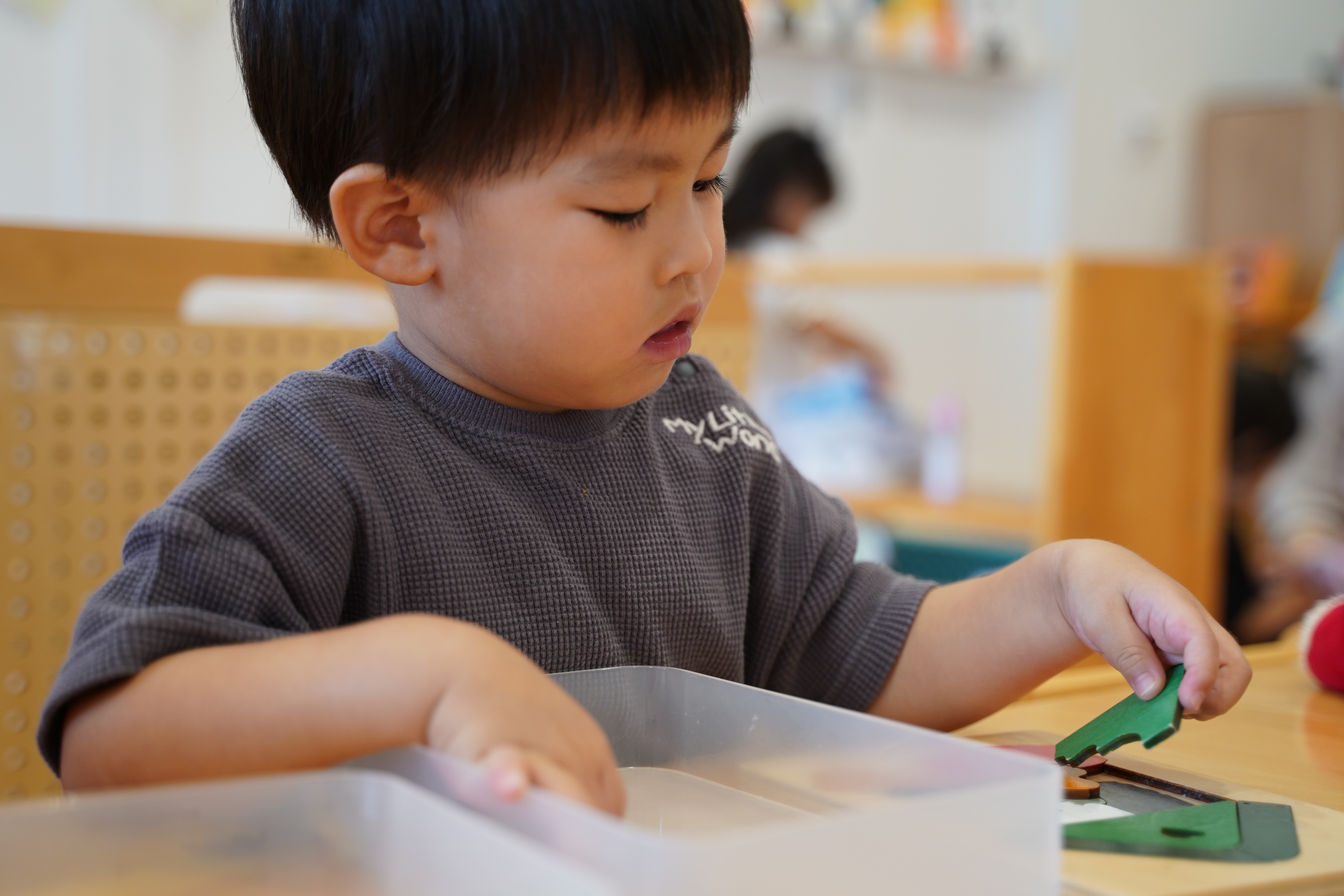 今日はパズルが人気で先生の補助なしで進めることができるんです🩵