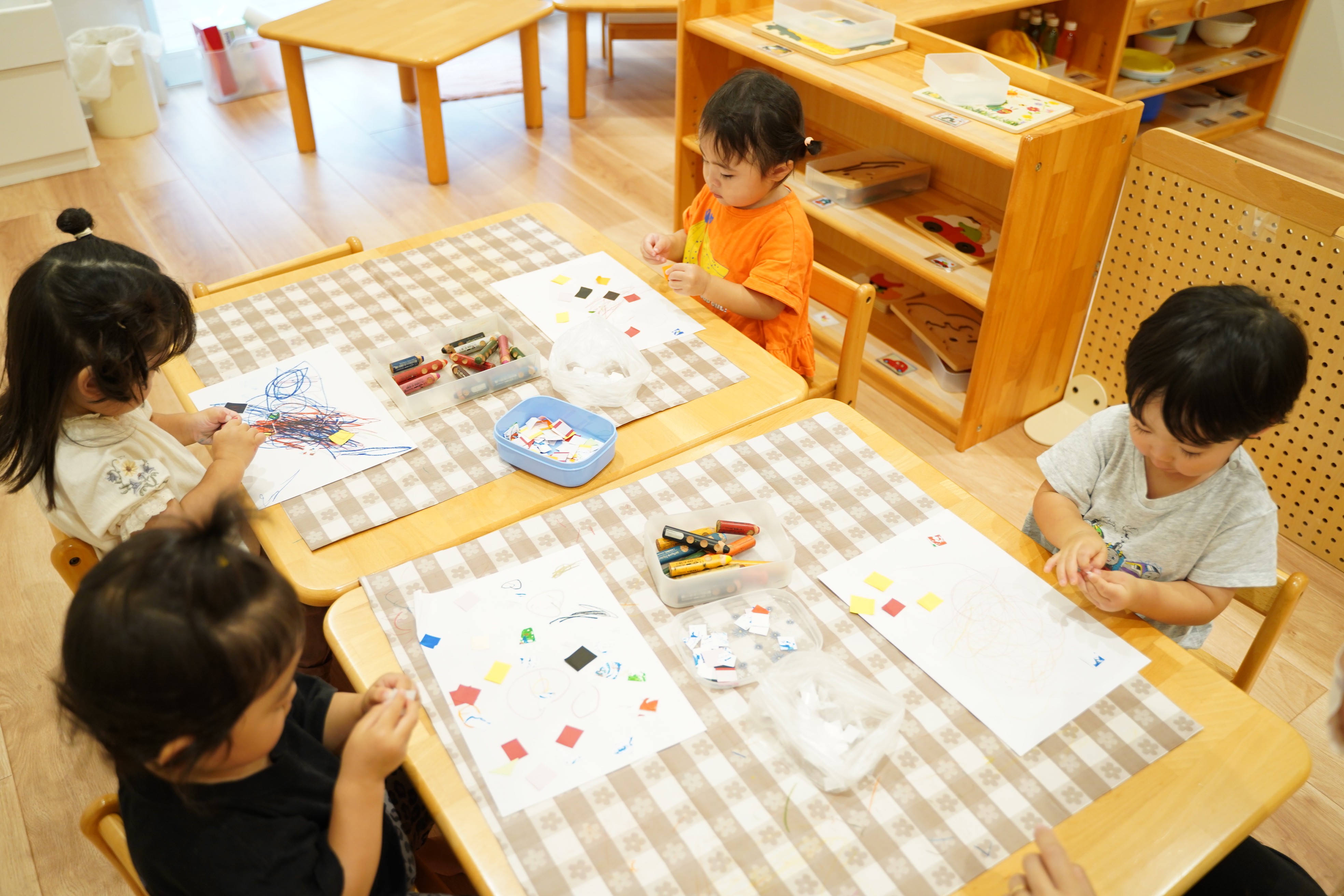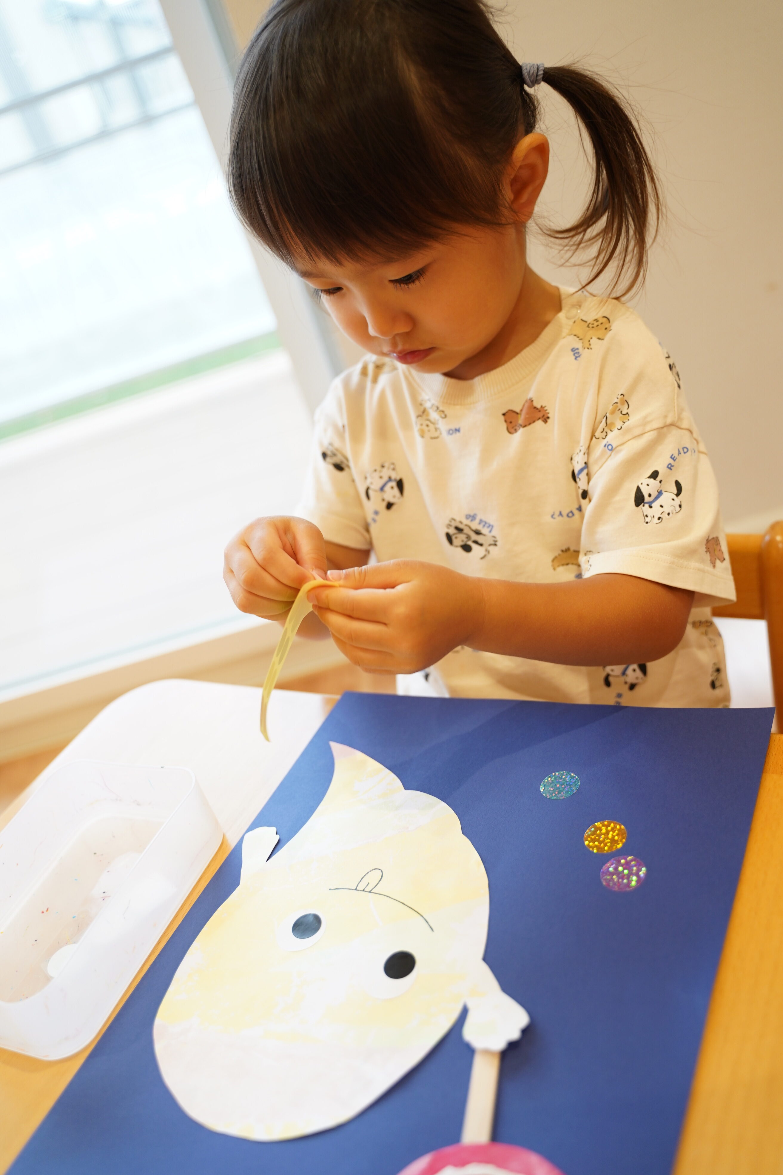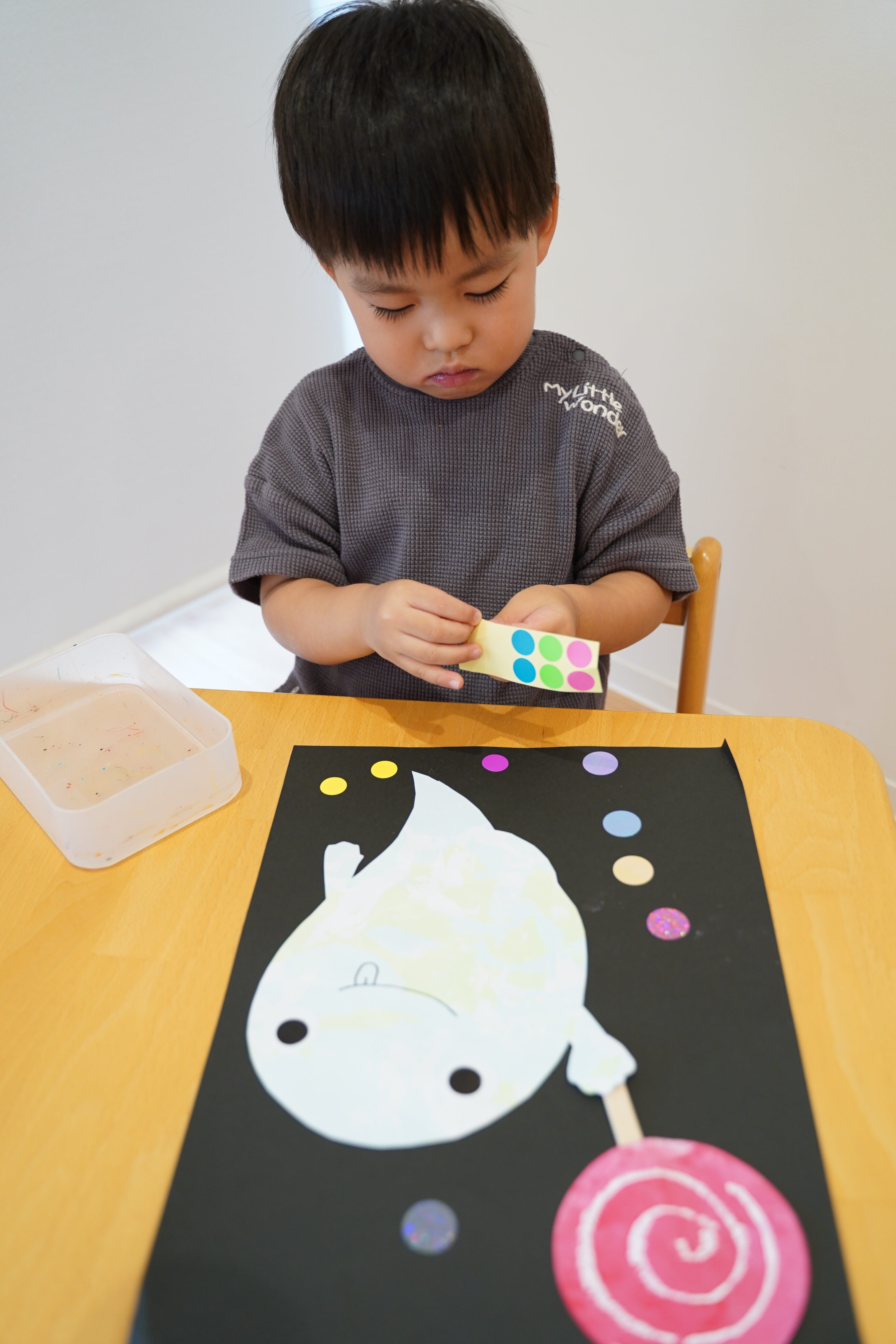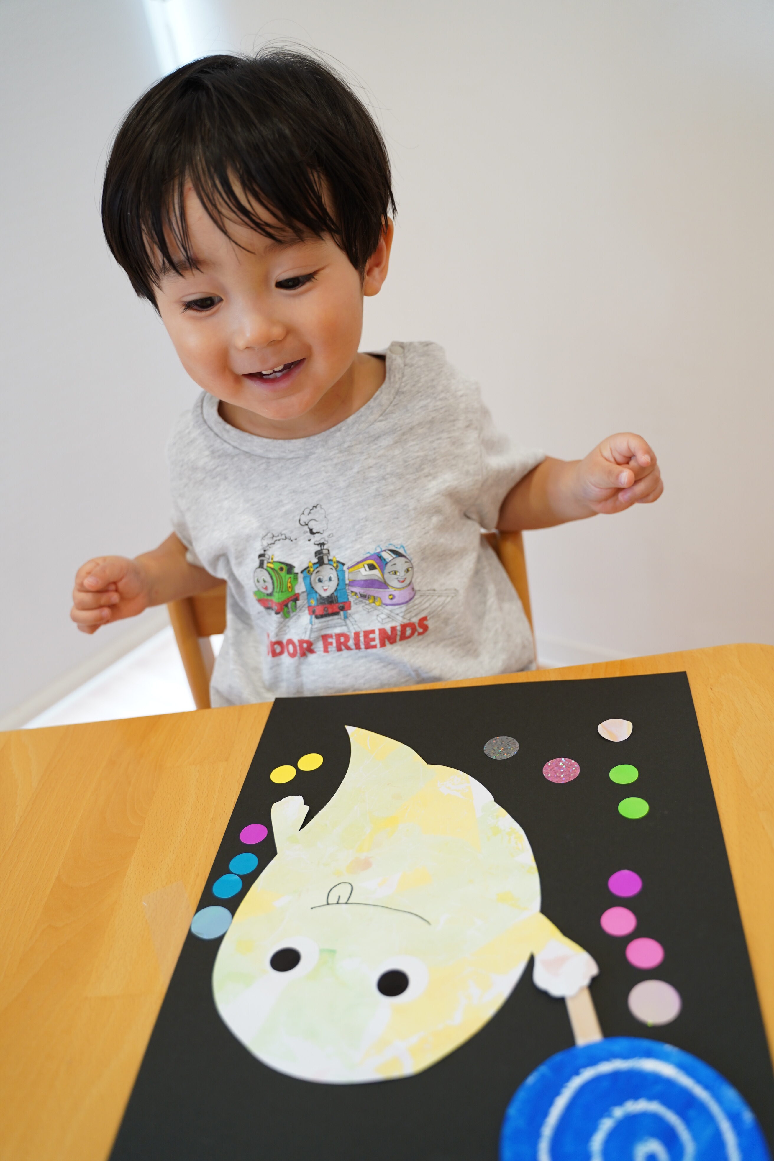 製作の延長からシール貼り、お絵描きもしました👏