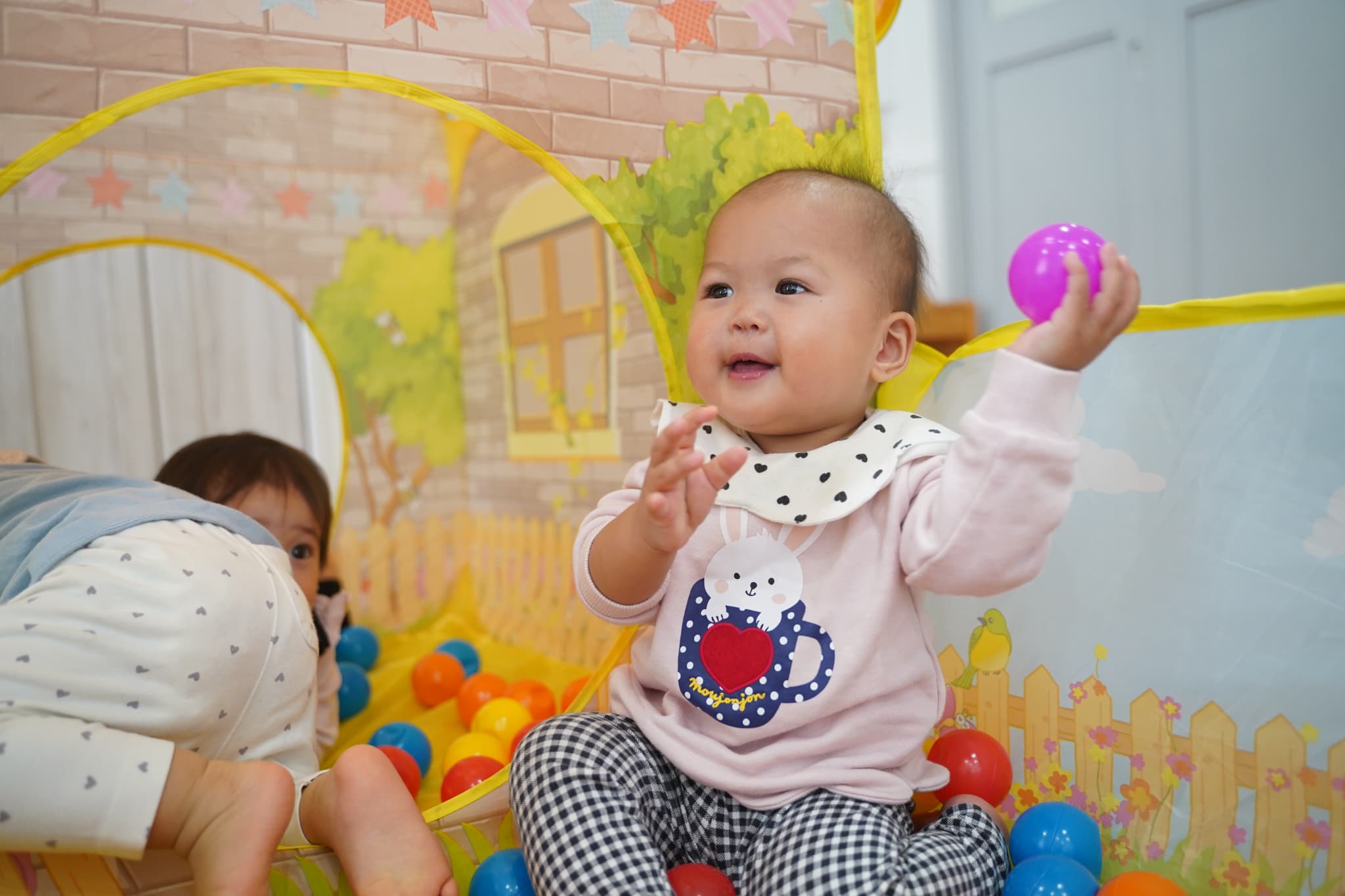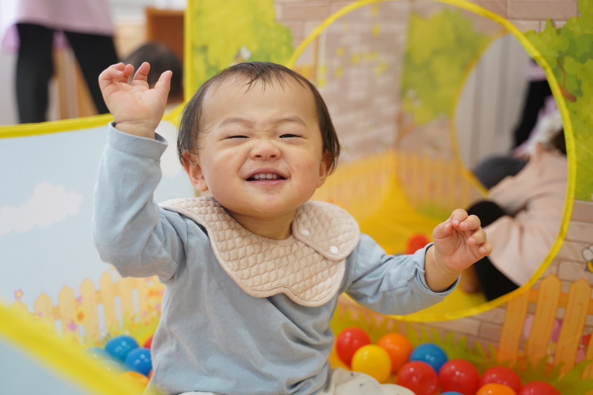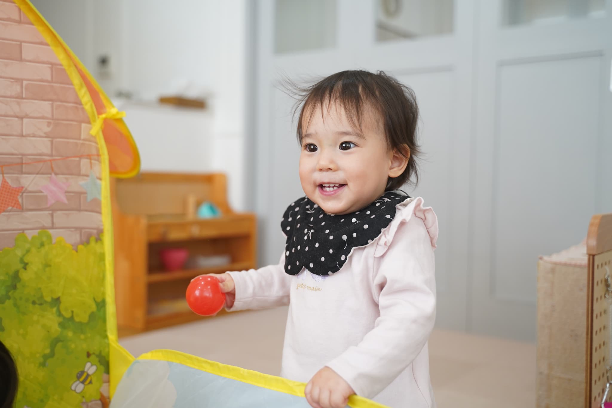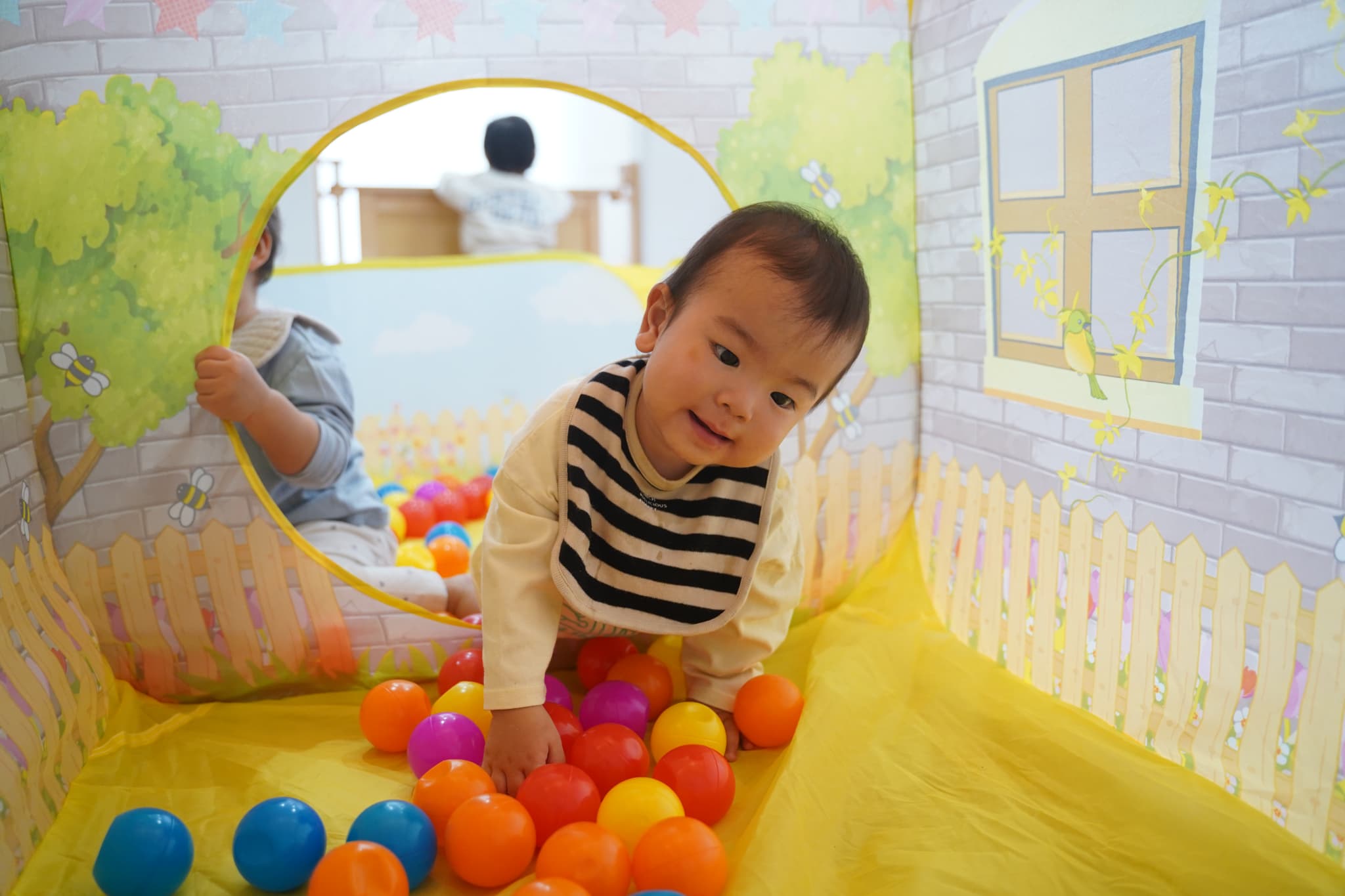 お部屋に新しいハウス型のボールプールが仲間入りしました♩