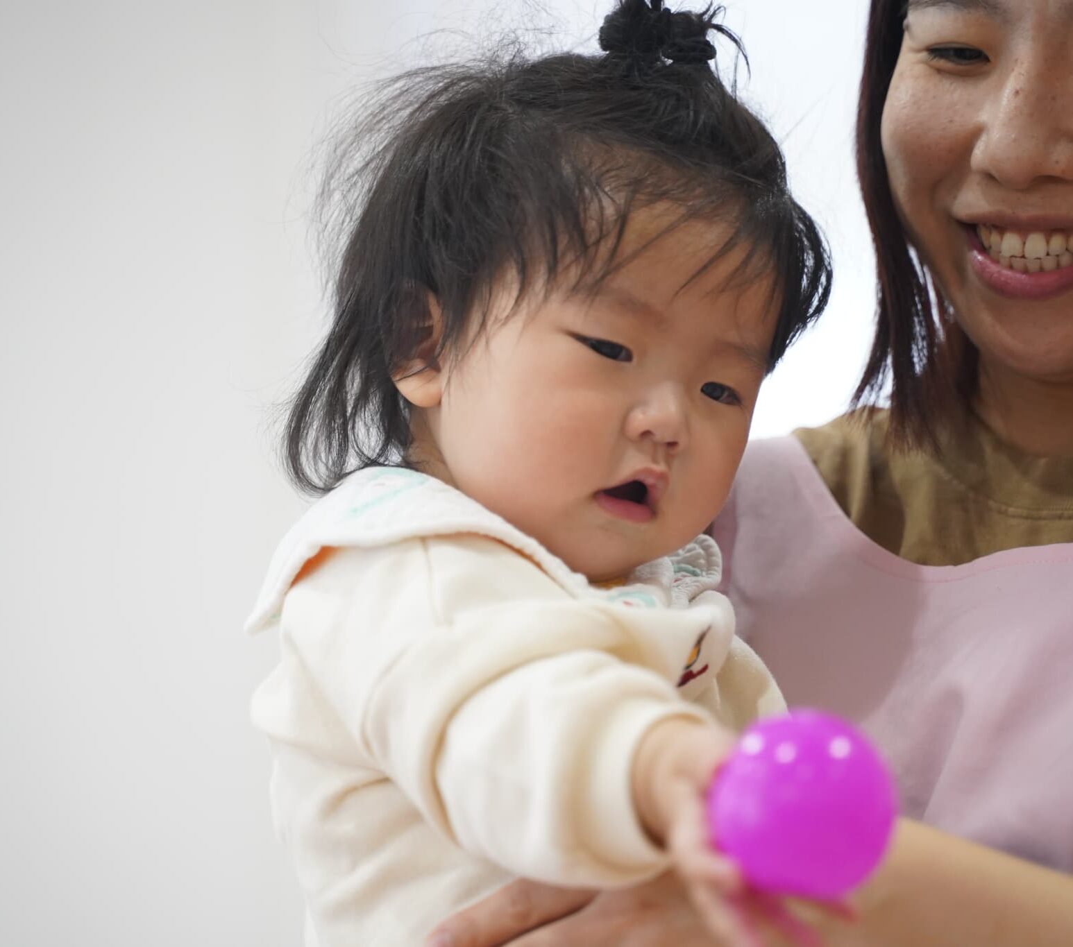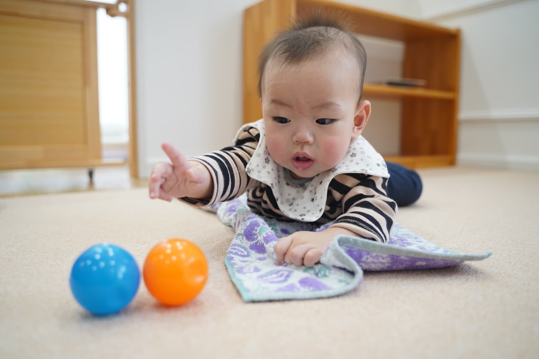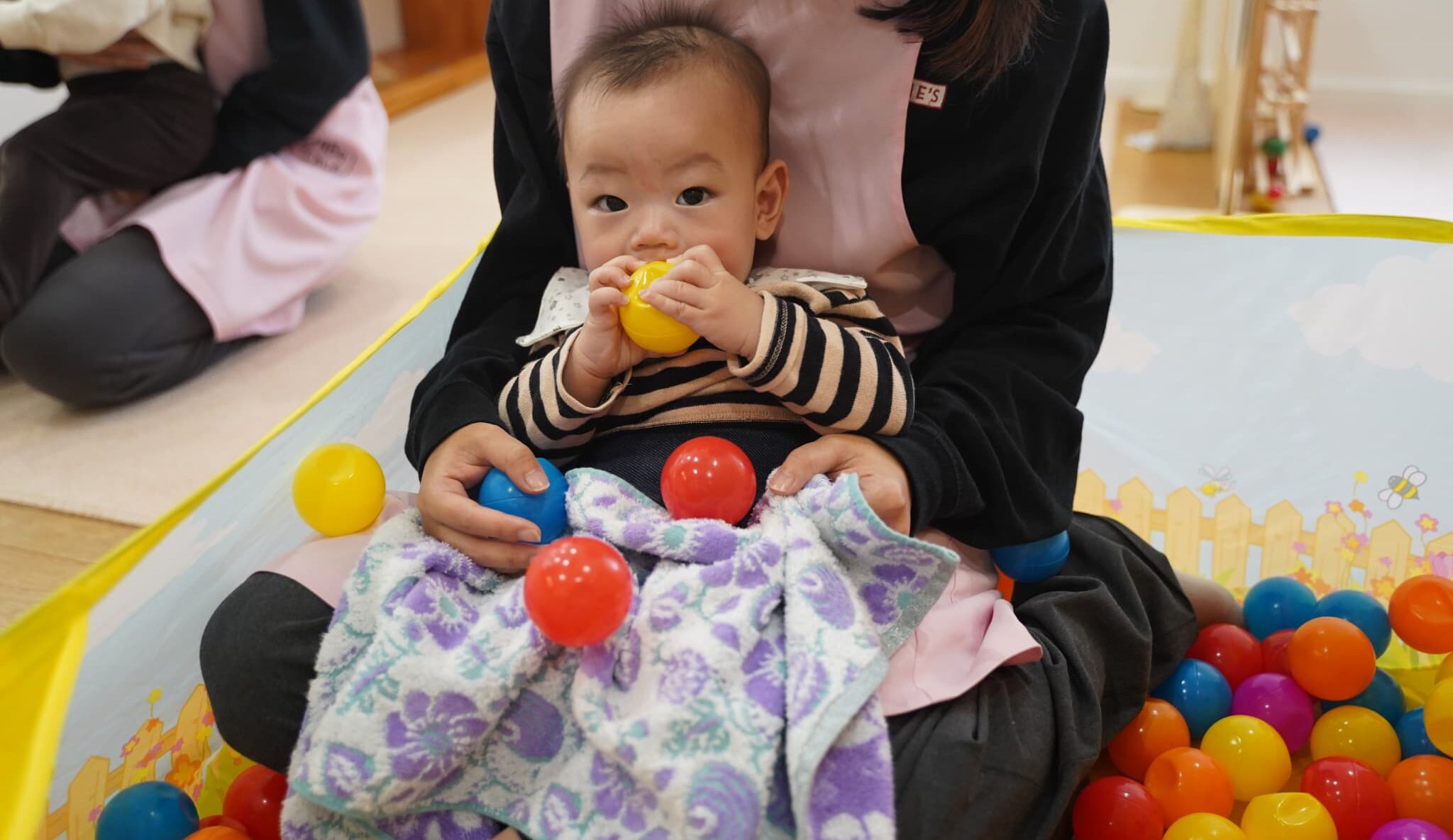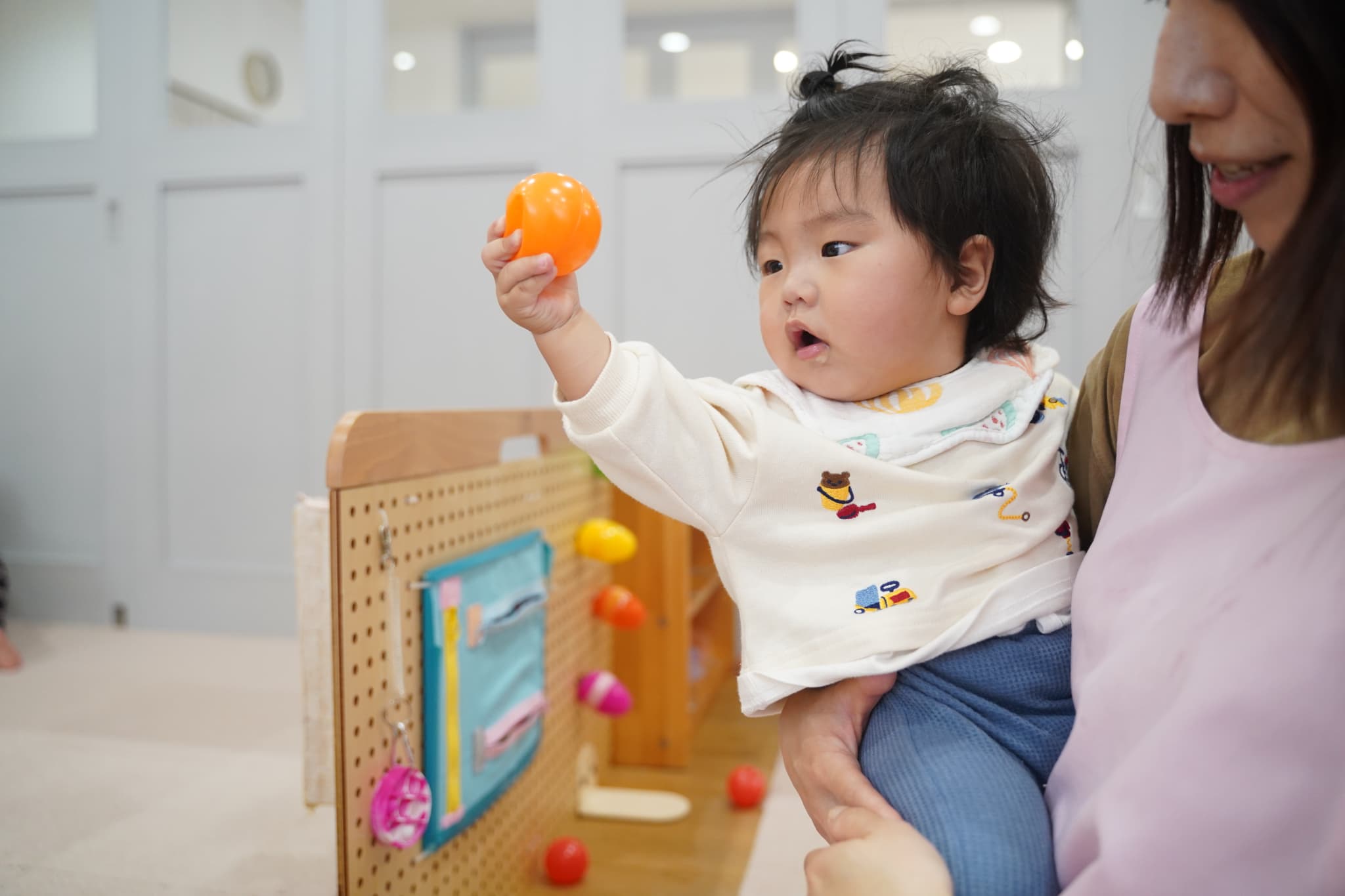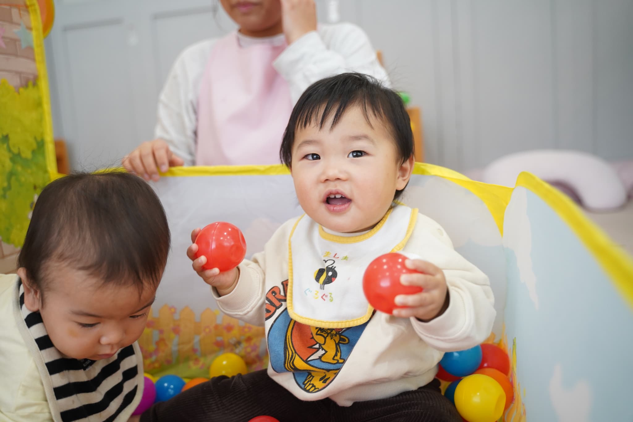 握りやすい大きさのカラーボールなので、手でしっかり握って感触を確かめています🖐️